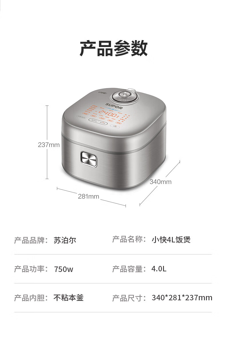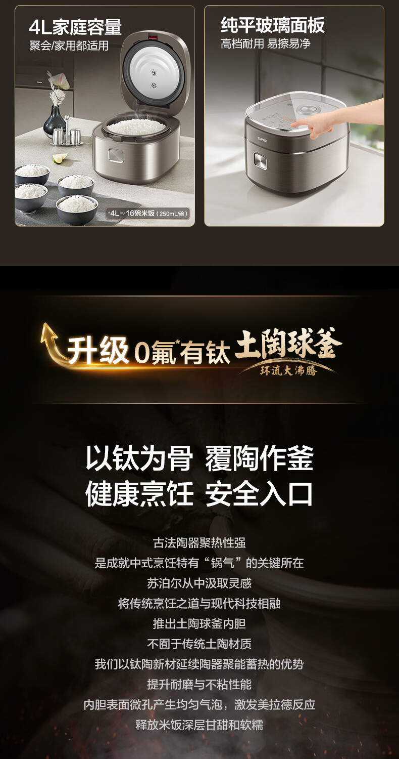 苏泊尔 柴火饭电饭煲4升大容量