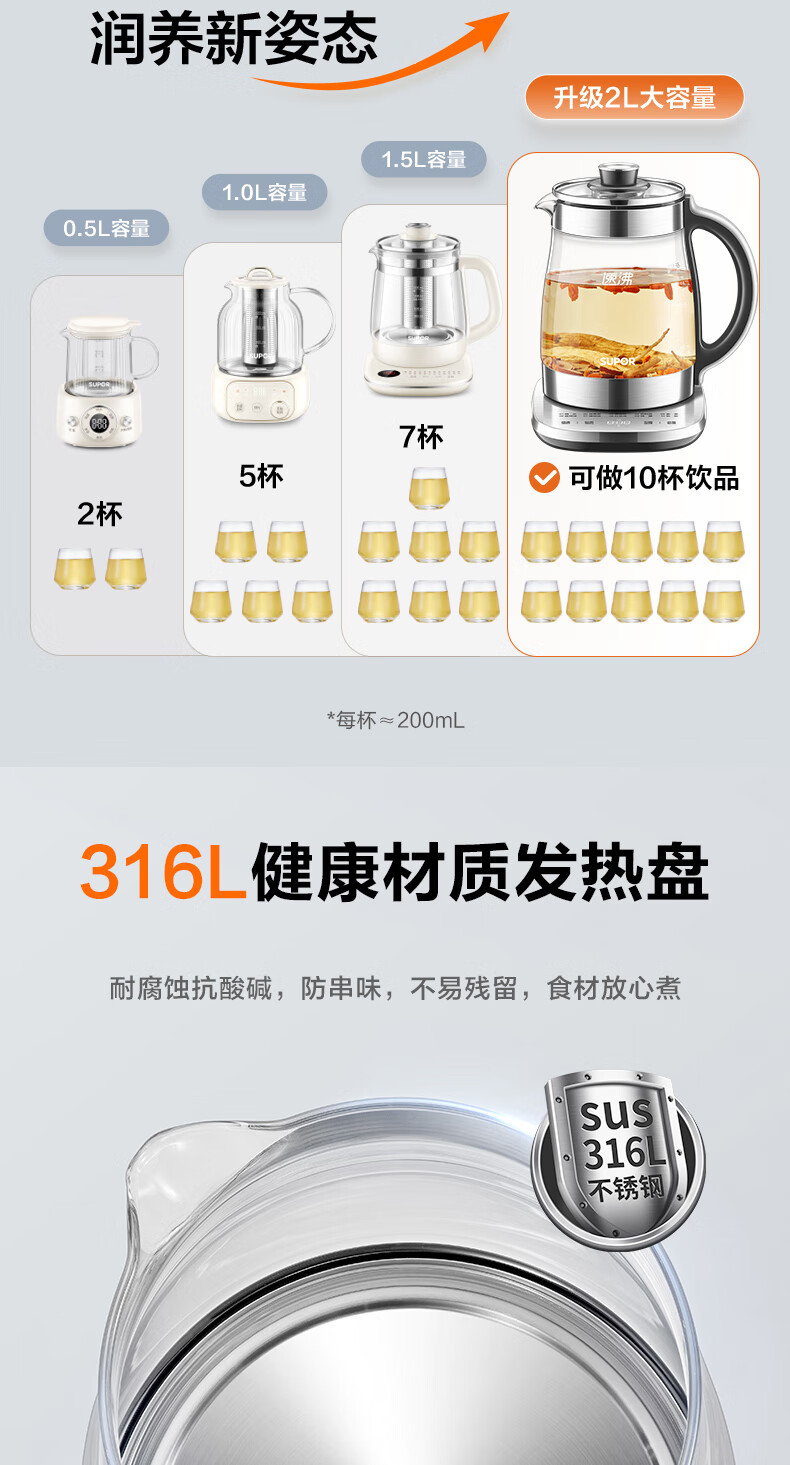 苏泊尔 养生壶2升容量
