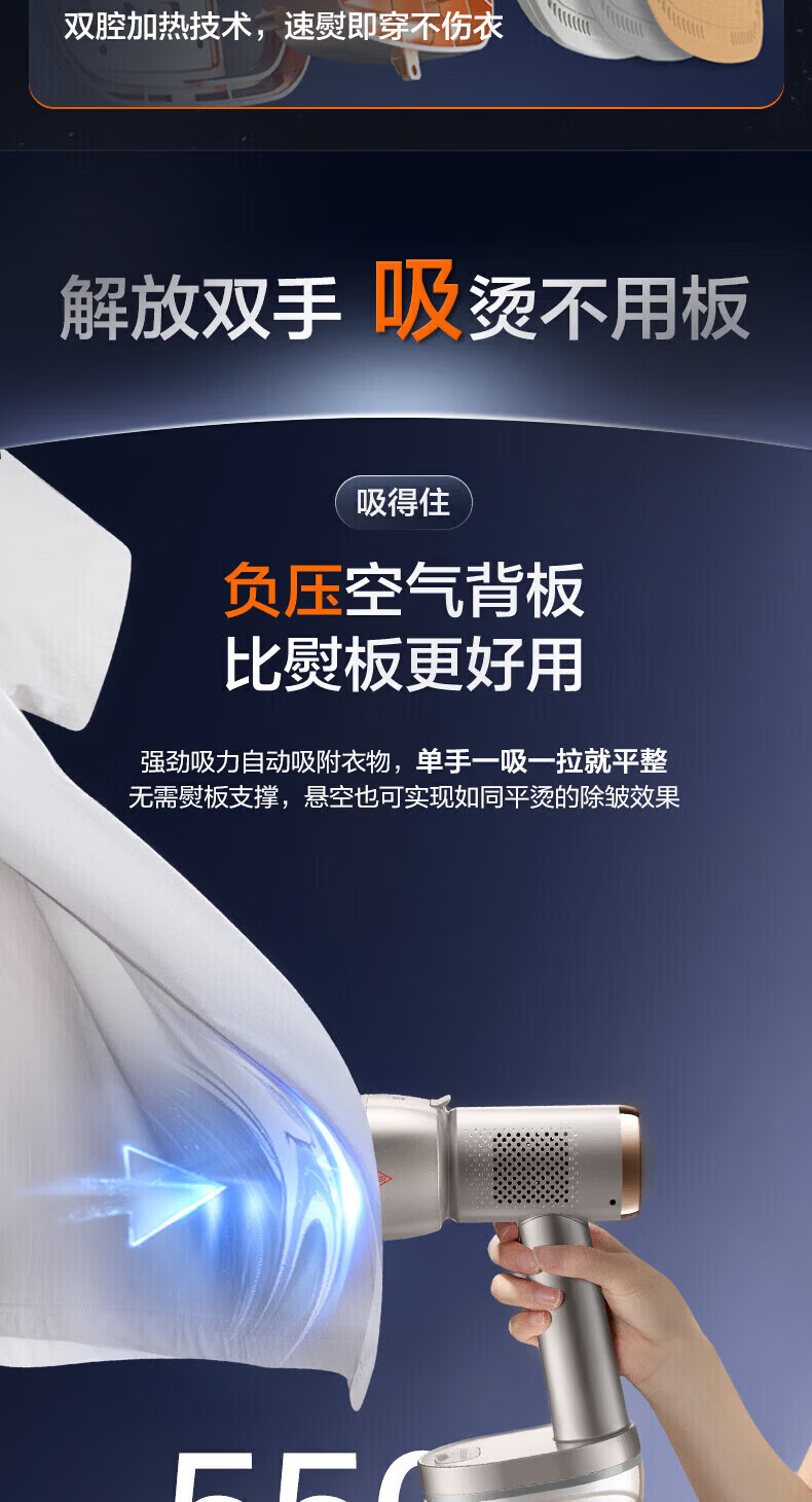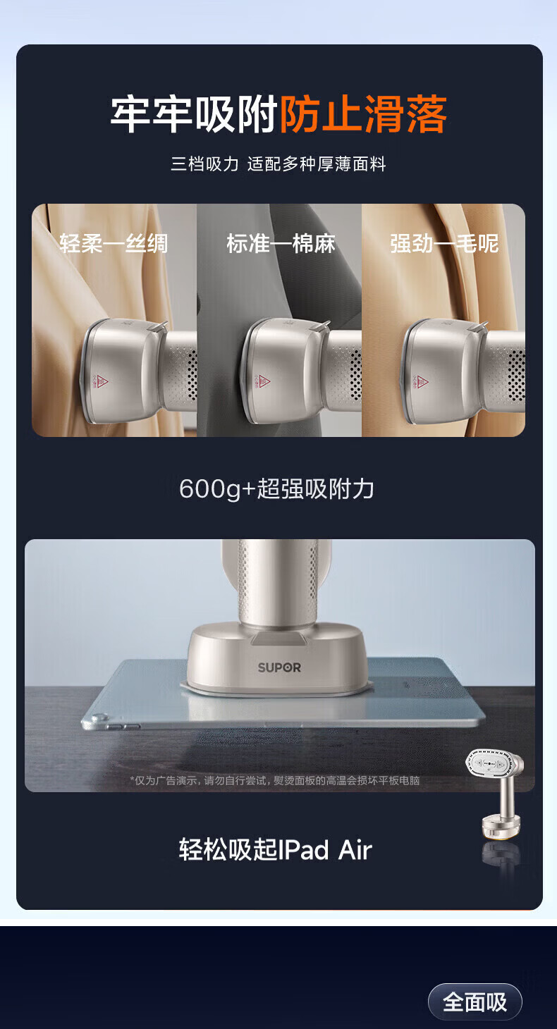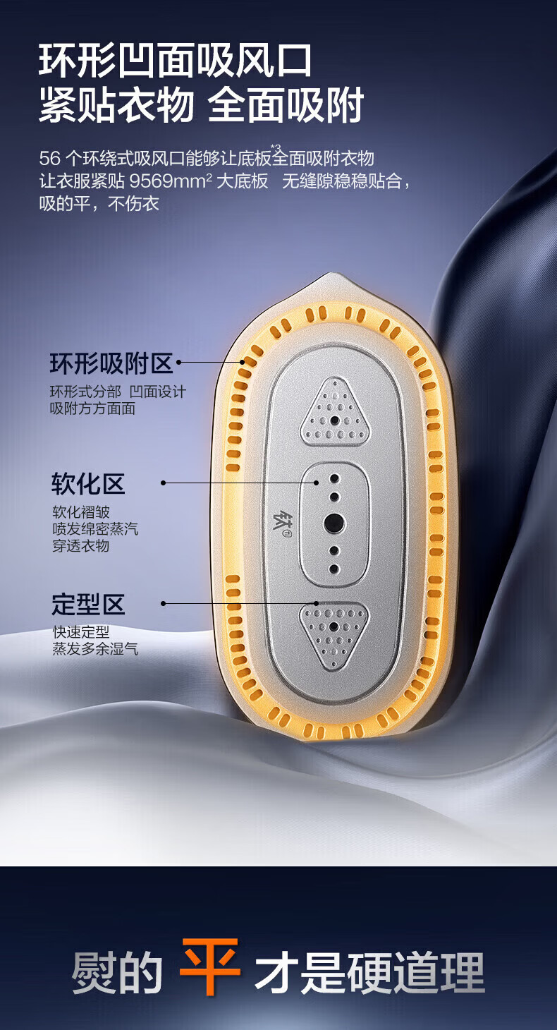 负压空气背板;5500Pa飓风吸力;有钛陶瓷底板