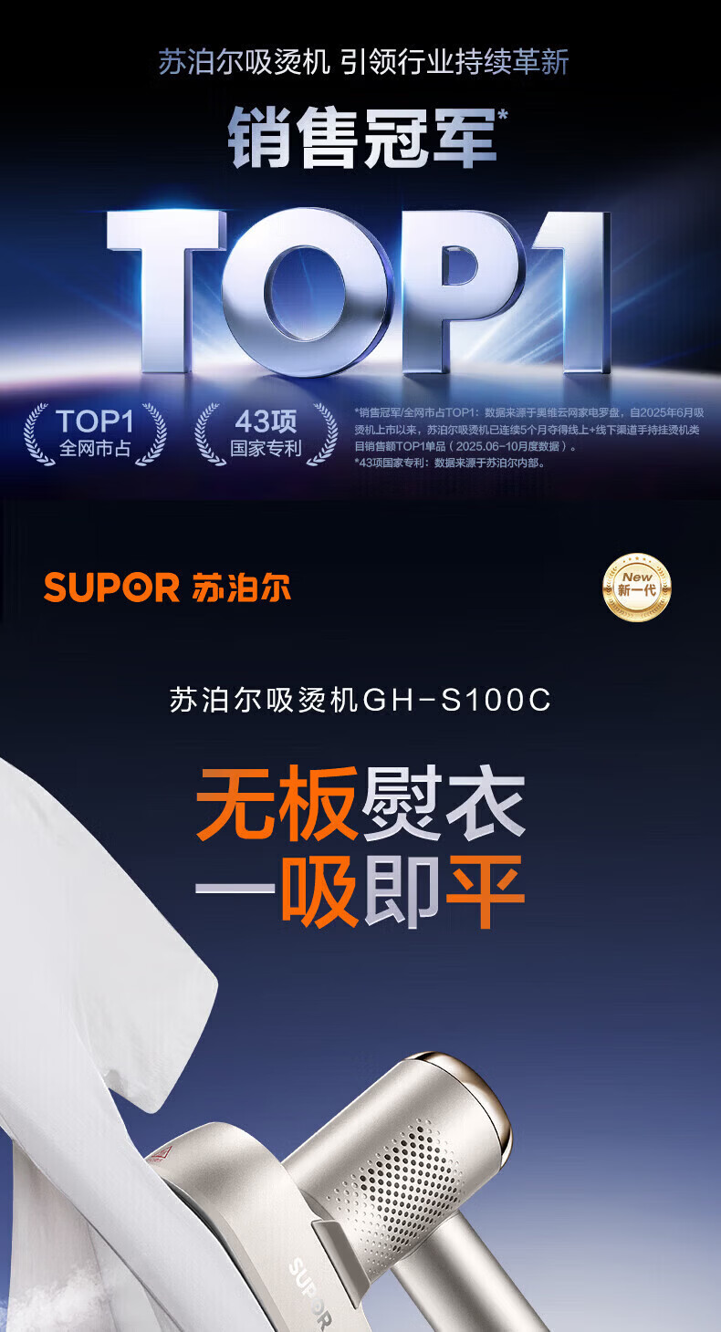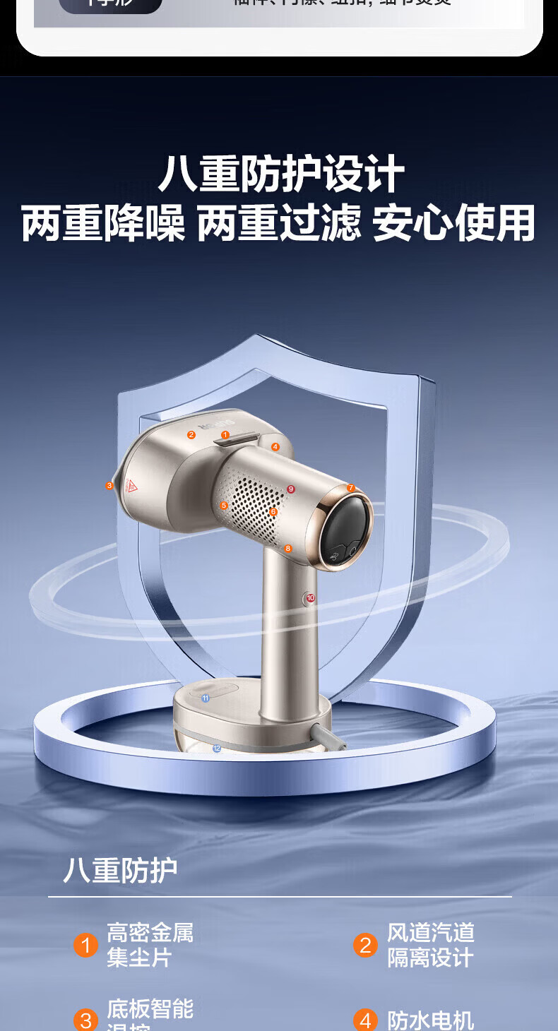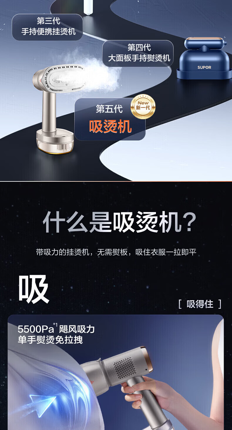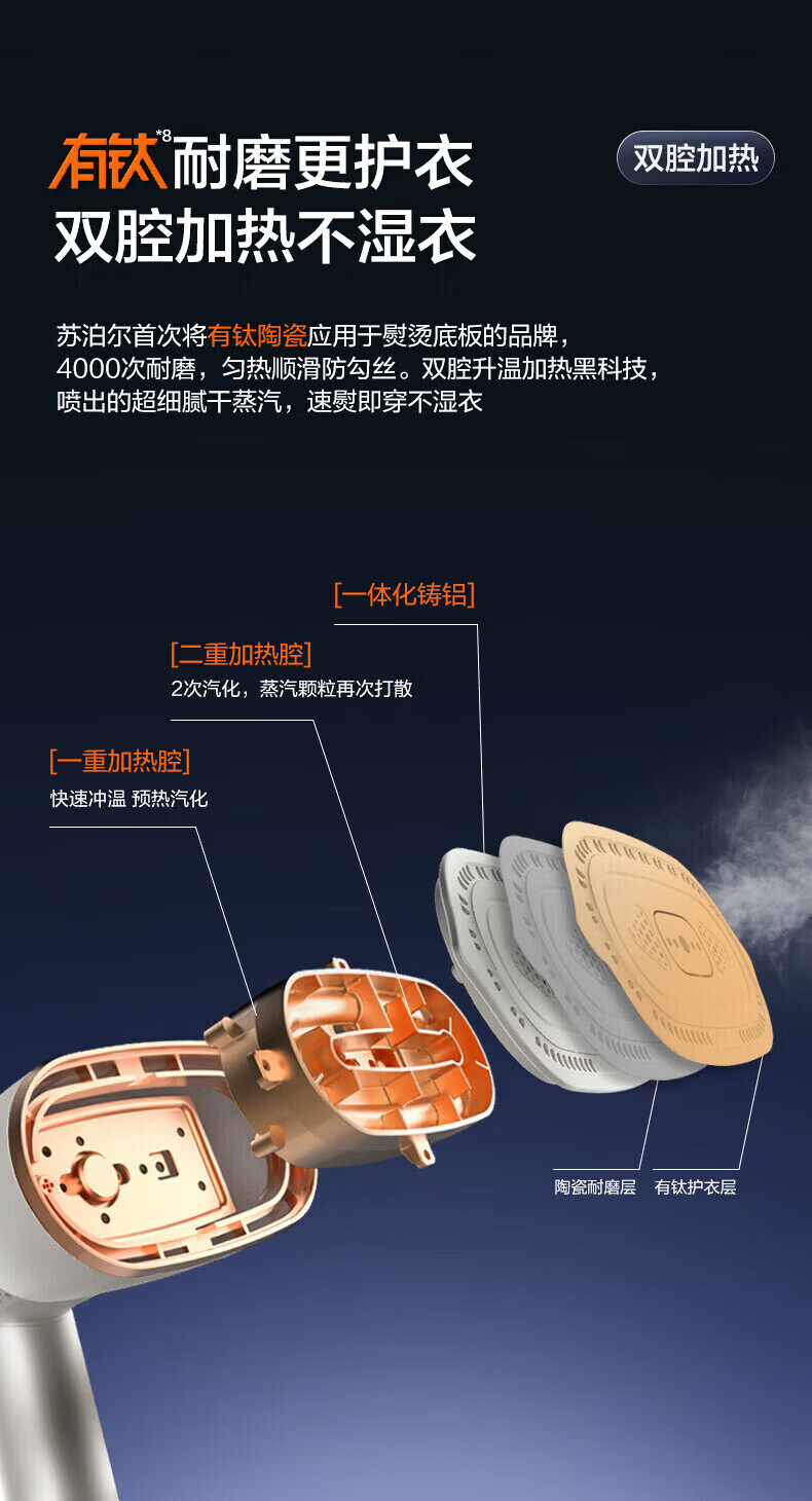 负压空气背板;5500Pa飓风吸力;有钛陶瓷底板