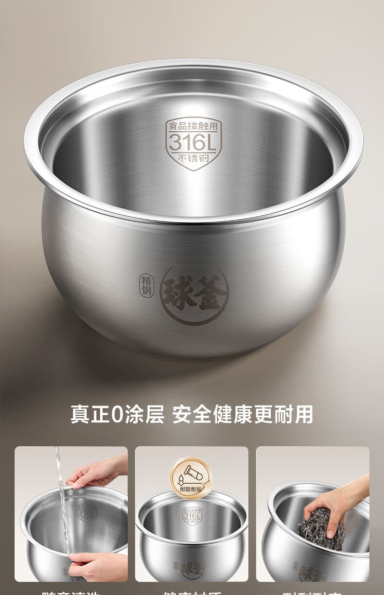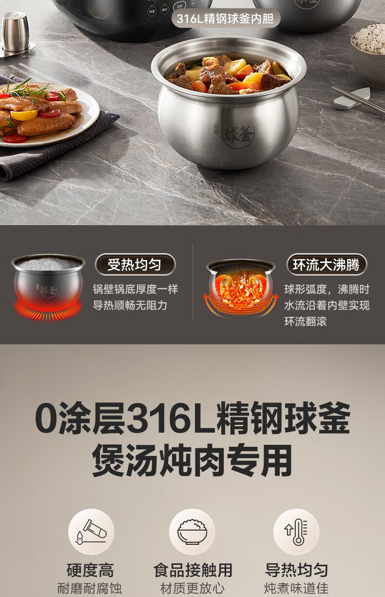0涂层316L钢球釜;猛火鲜呼吸快炖;双球釜内胆