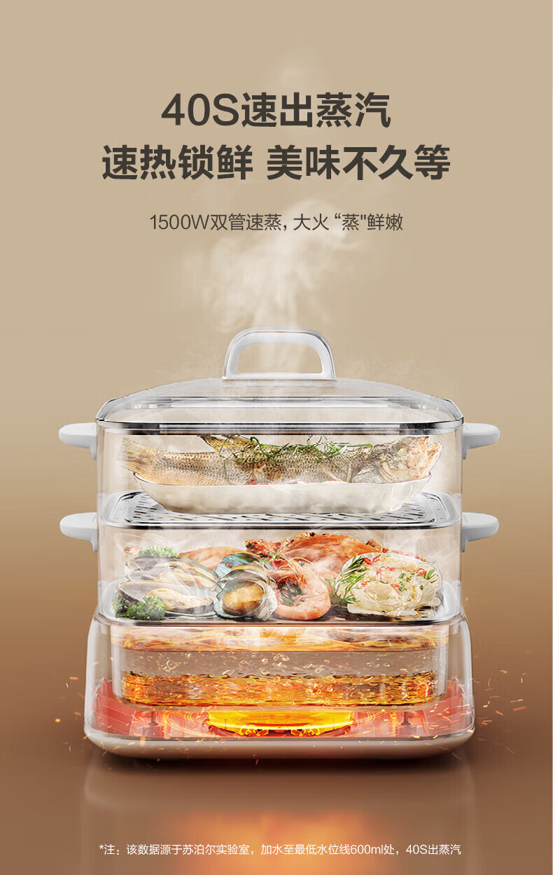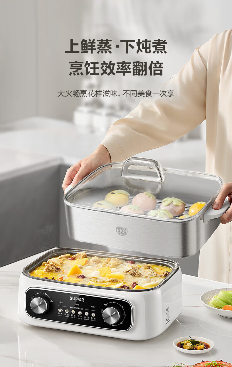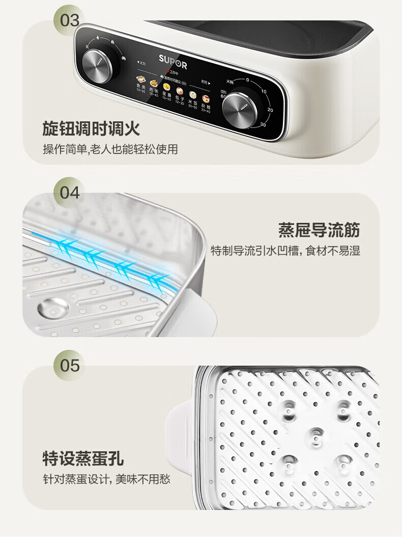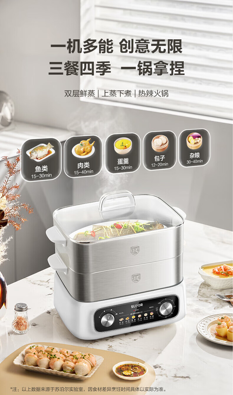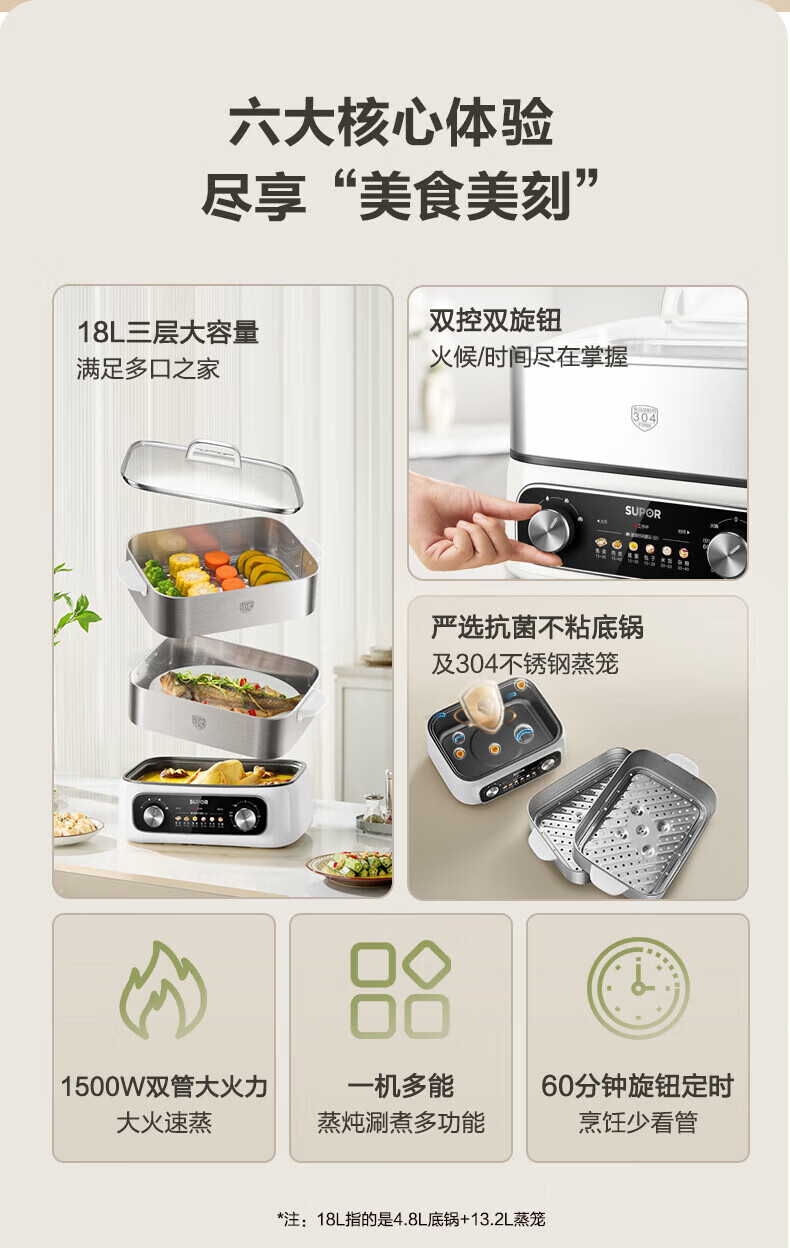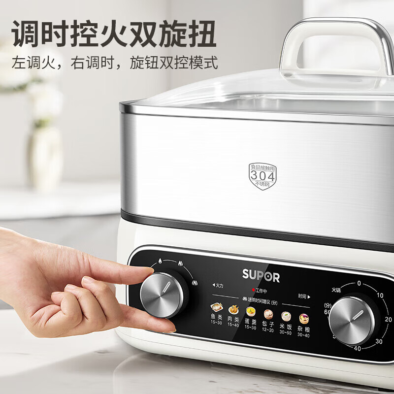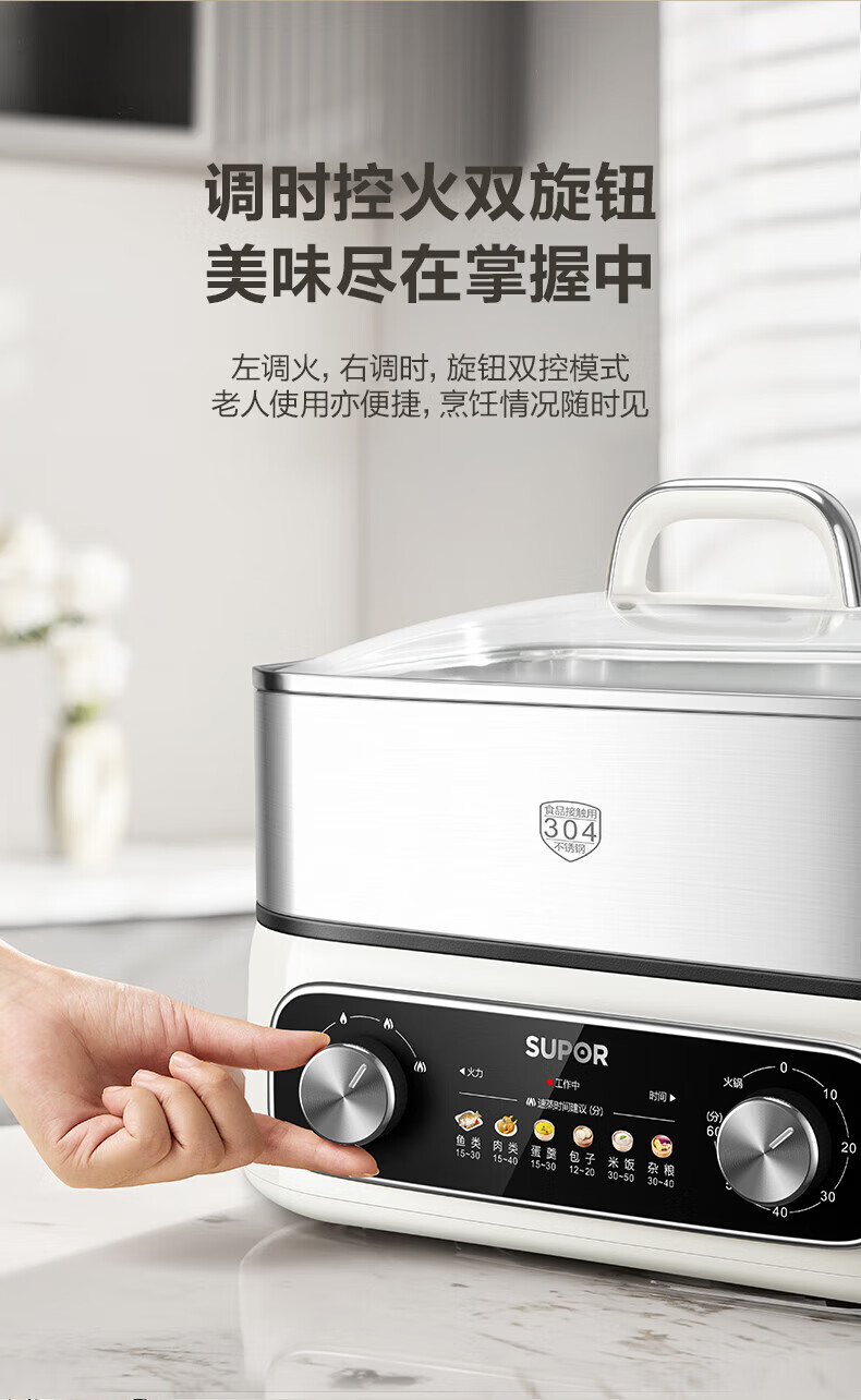 速出蒸汽;双控双旋钮;蒸炖涮煮多功能