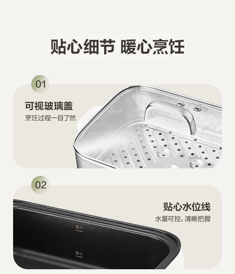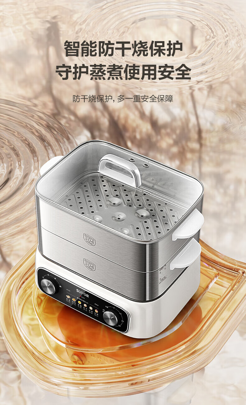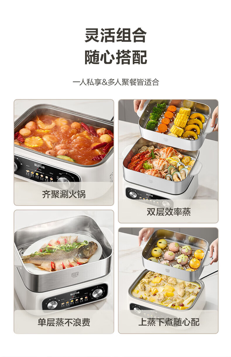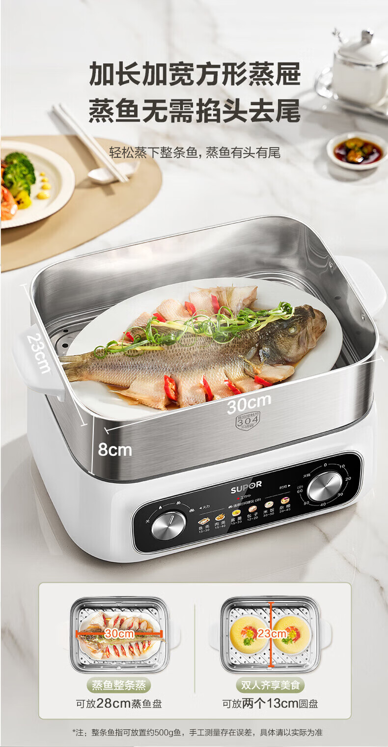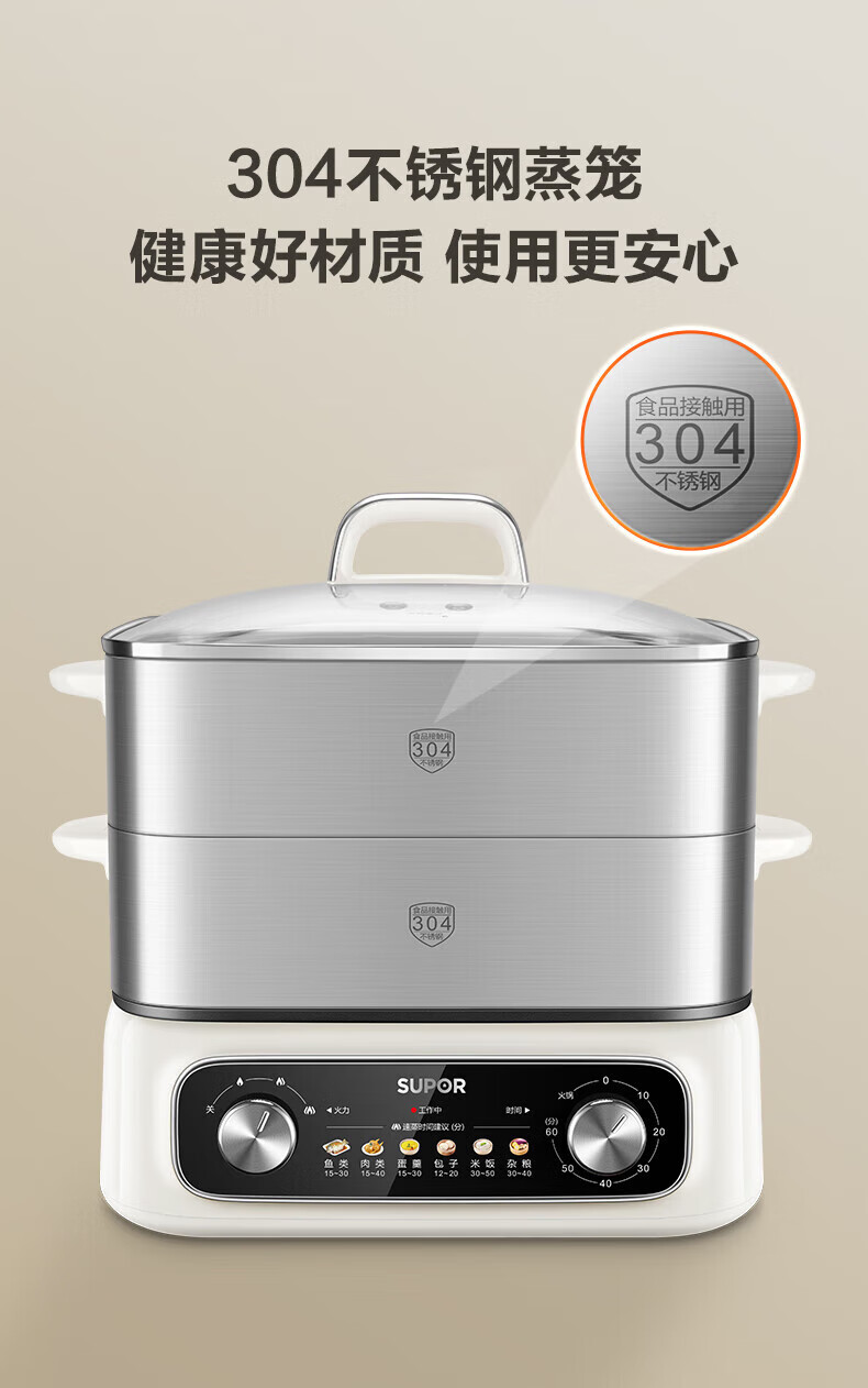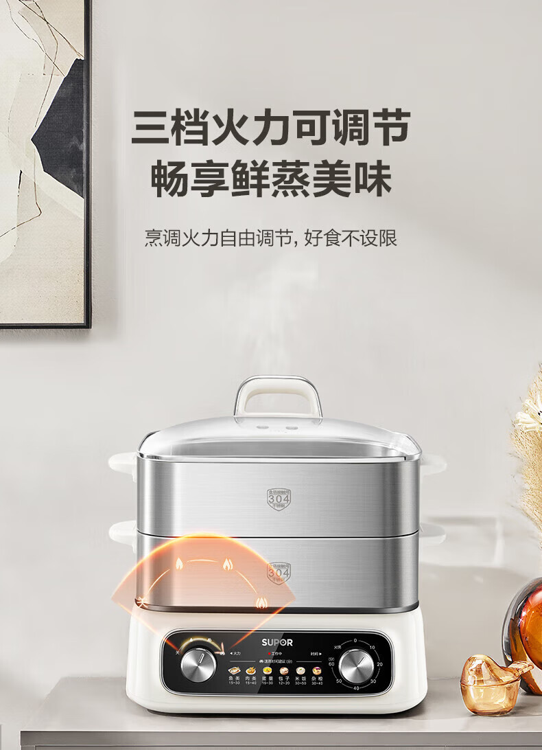速出蒸汽;双控双旋钮;蒸炖涮煮多功能