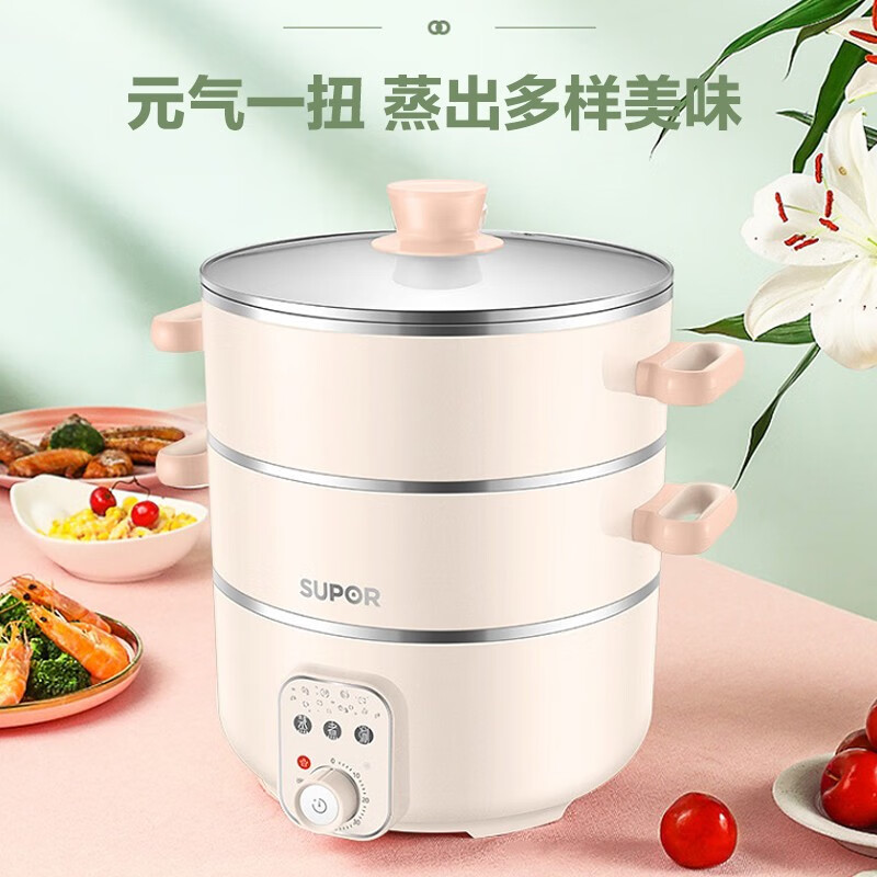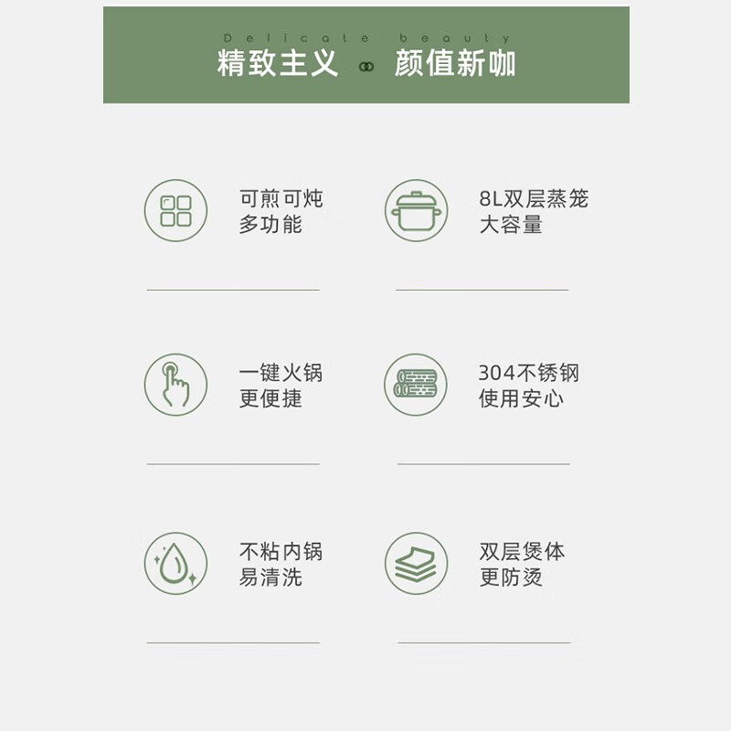 可煎可炖多功能;8L双层蒸屉容量;304不锈钢锅体