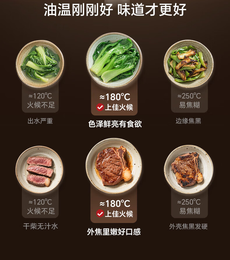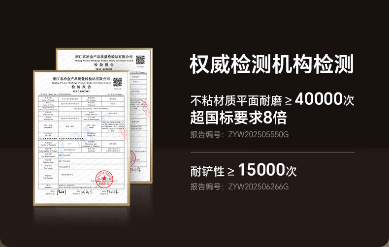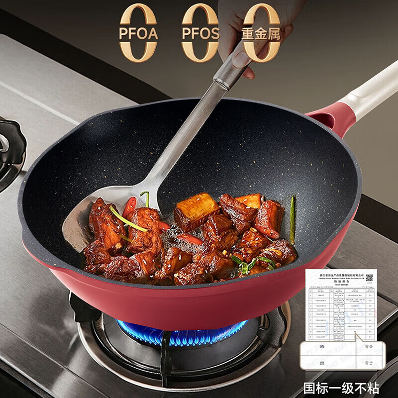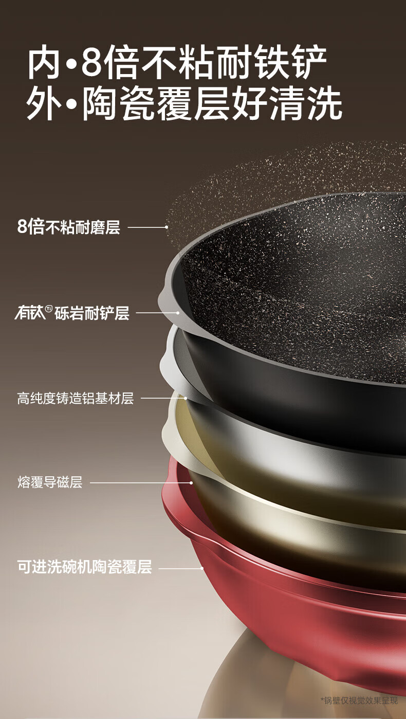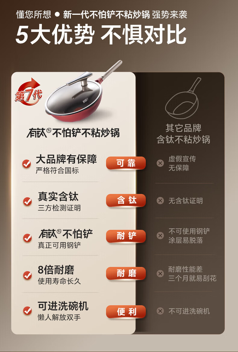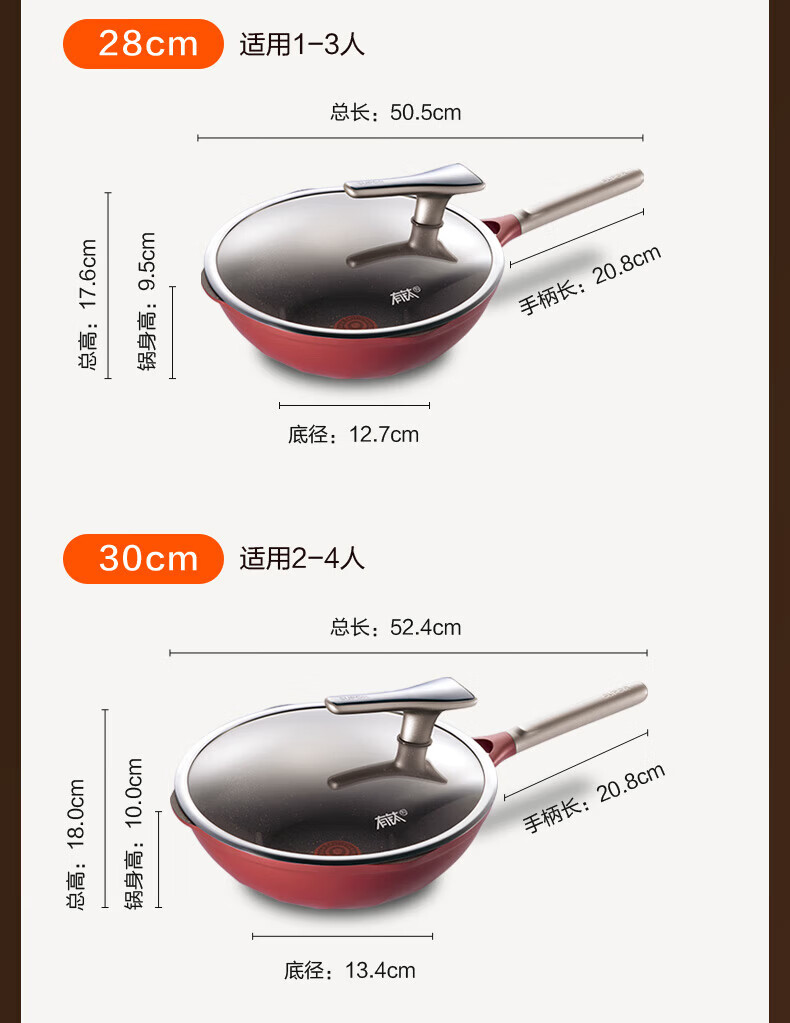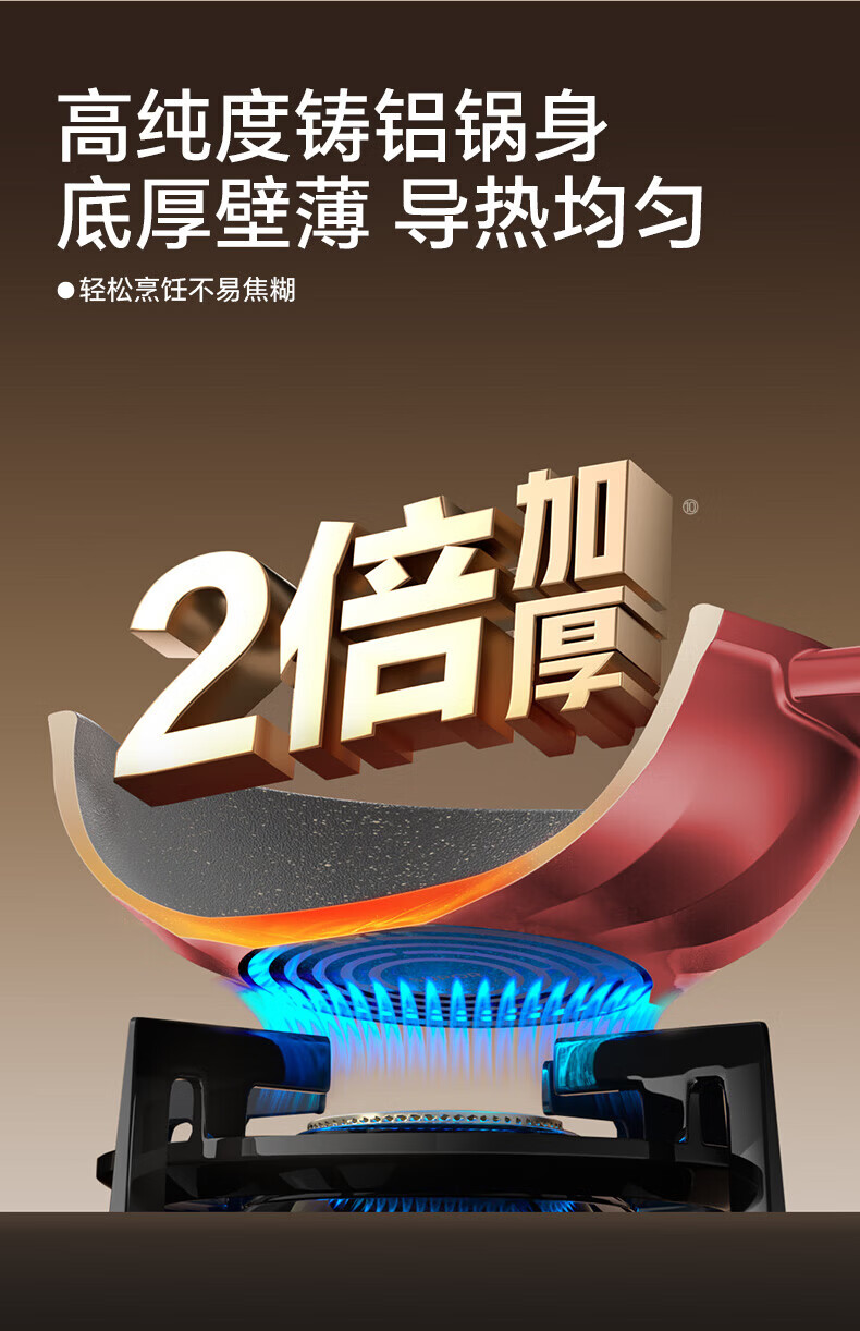 国标一级不粘;⑦ 火红点控温;耐磨耐用