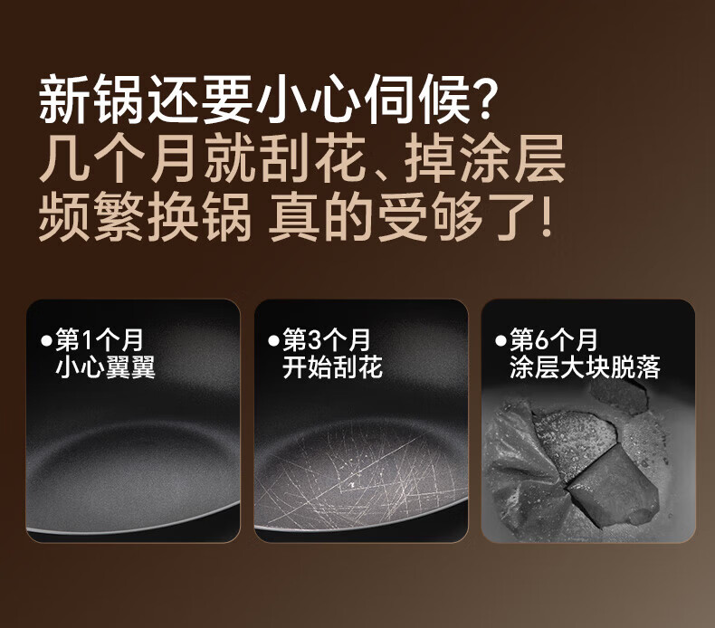 特点:不易生锈,少油烟、不易粘锅