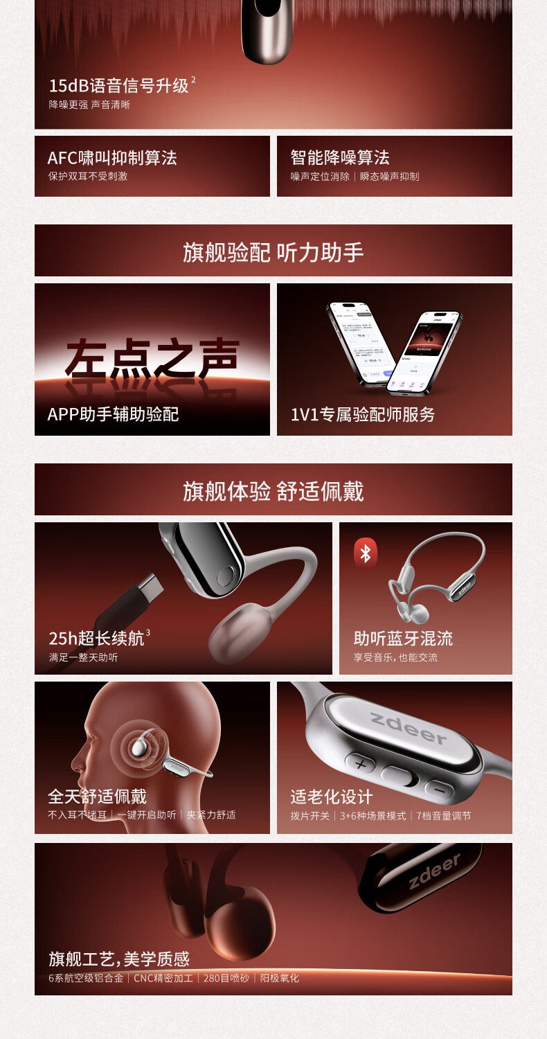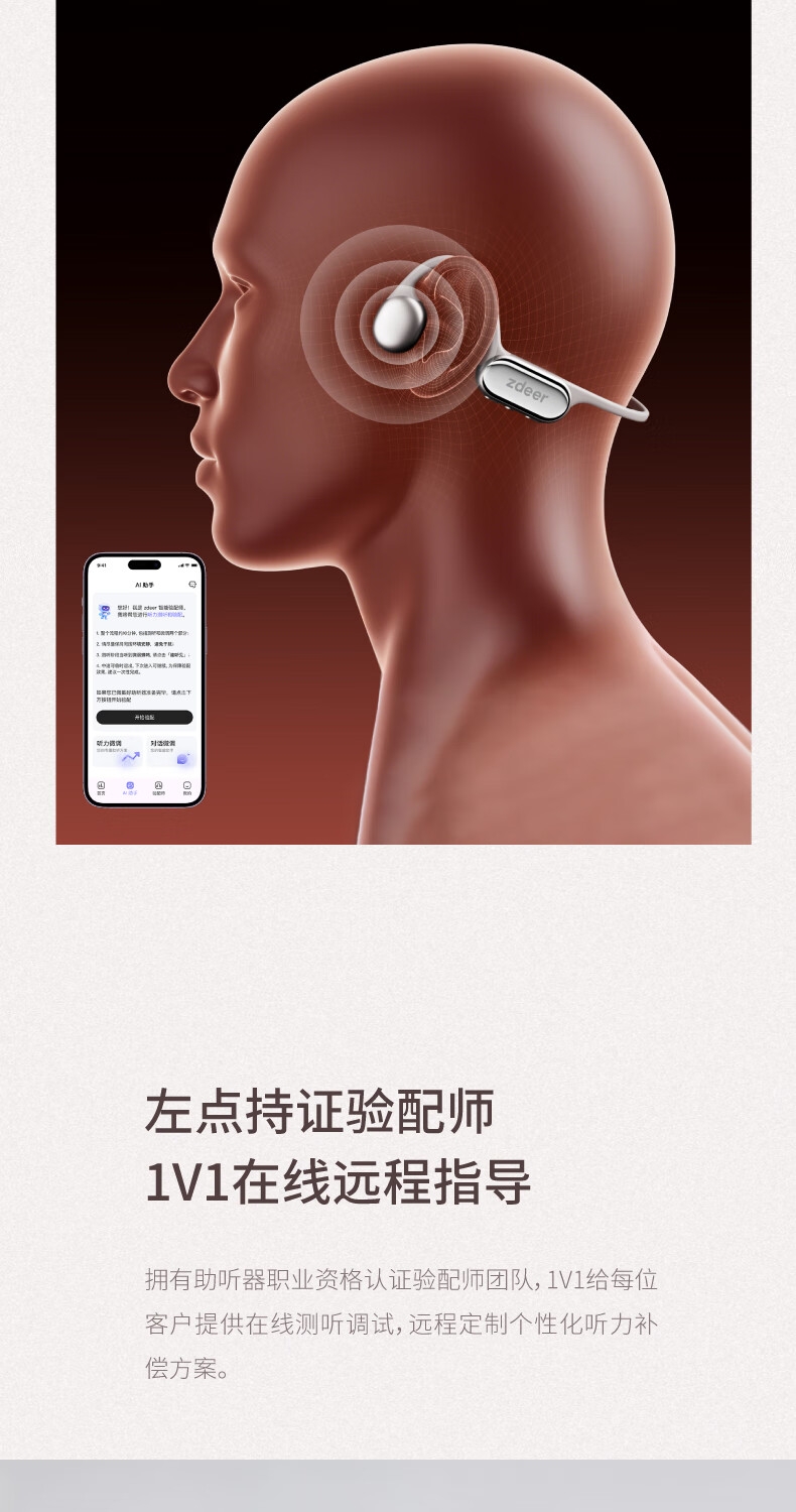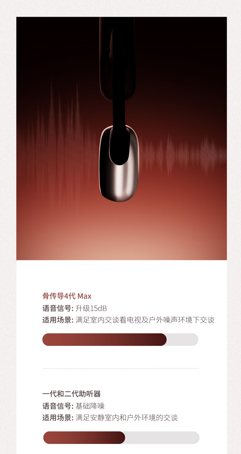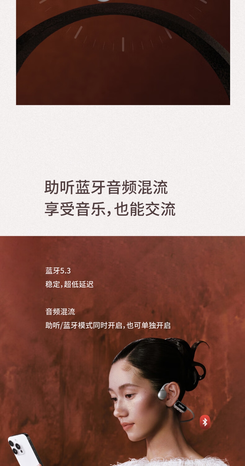 便捷:戴上耳挂,一键开启助听;;舒适:耳道通畅,开放不闷堵;;贴合:夹紧力优化,贴合紧密无压迫感;