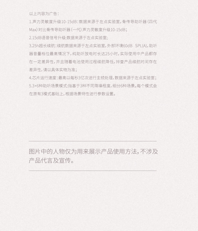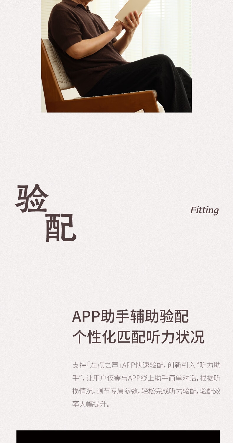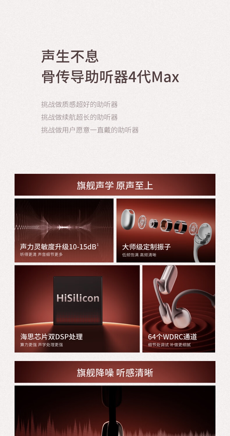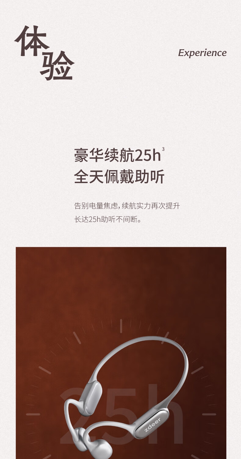 便捷:戴上耳挂,一键开启助听;舒适:耳道通畅,开放不闷堵;贴合:夹紧力优化,贴合紧密无压迫感