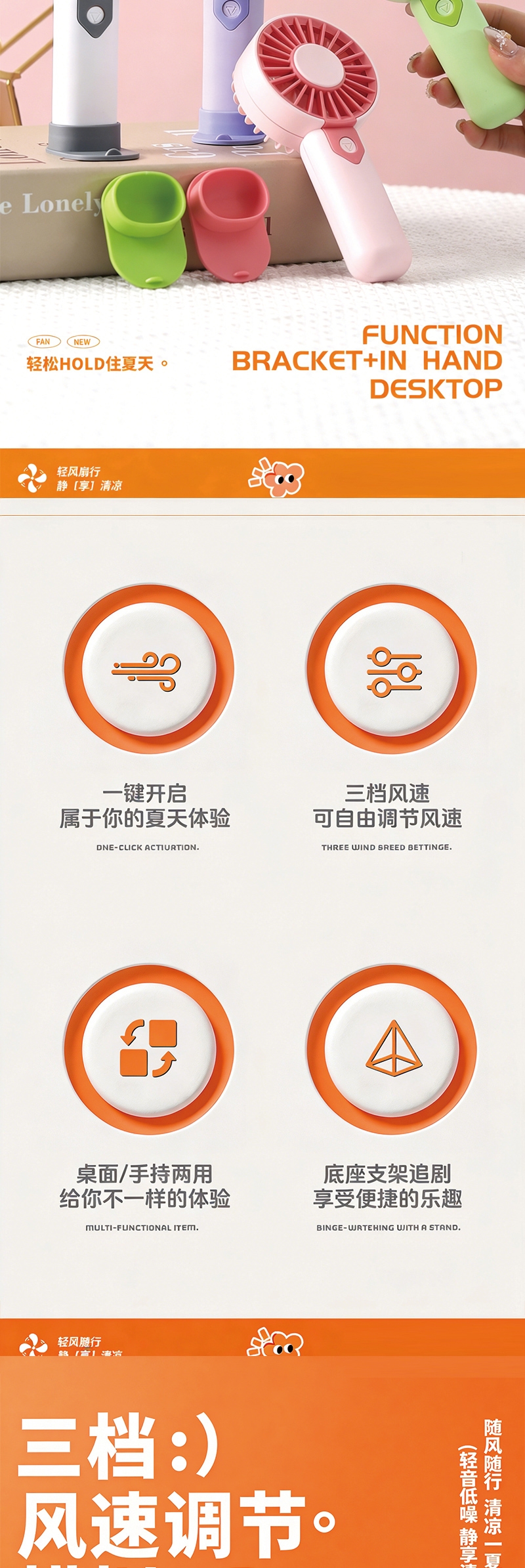 强劲风力多档可调内置高效电机能够提供强劲而稳定的风;专业防晒,全面防护 透气舒适,久戴不闷;冰丝面料,凉感防晒高弹性,贴合不紧绷 专业防晒