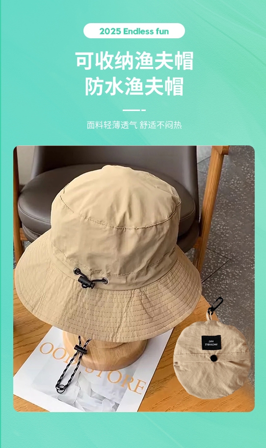 可收纳渔夫帽:防晒、速干 (随机颜色)