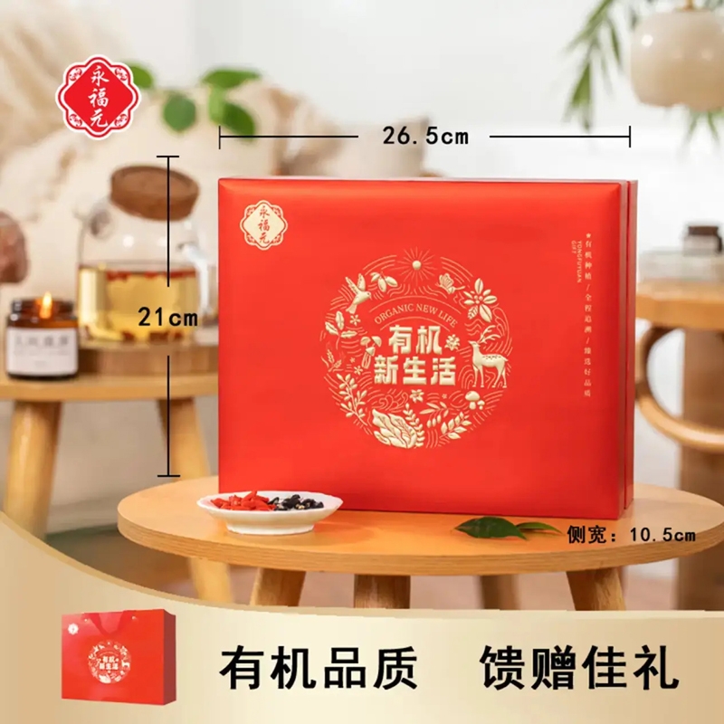 这款礼盒设计精致、高端,;适合佳节送领导、亲朋好友,;有机产品健康,放心食用。
