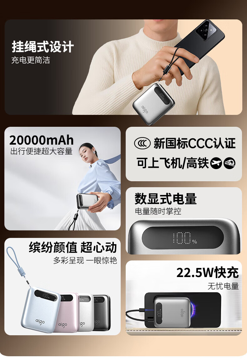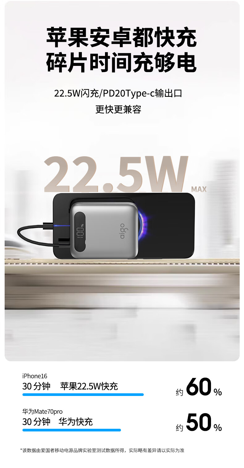 3C认证充电宝22.5W;20000毫安大容量;小巧移动电源可上飞机2025新款