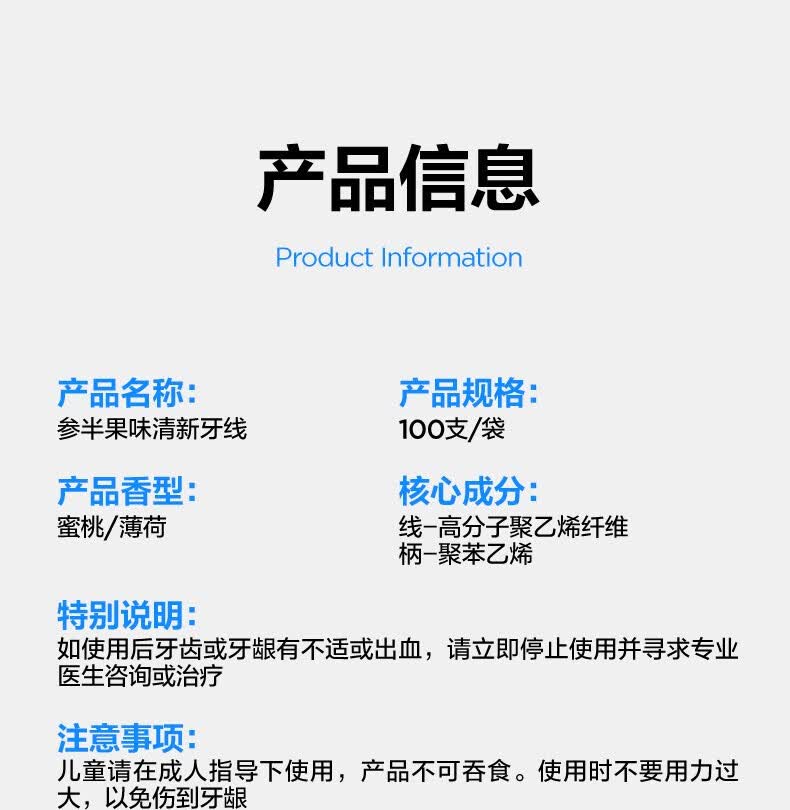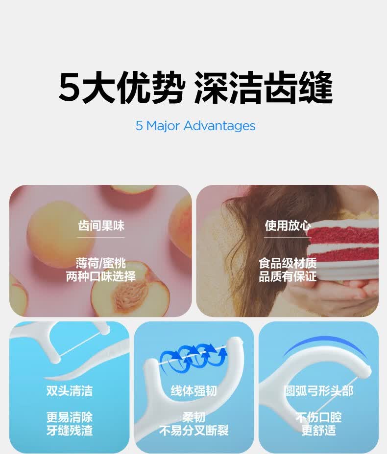 清新果味薄荷,双头深层洁齿不伤牙龈;洁净牙缝残渣,果味清香呵护口腔卫生;100 支大容量,便携耐用清洁更彻底