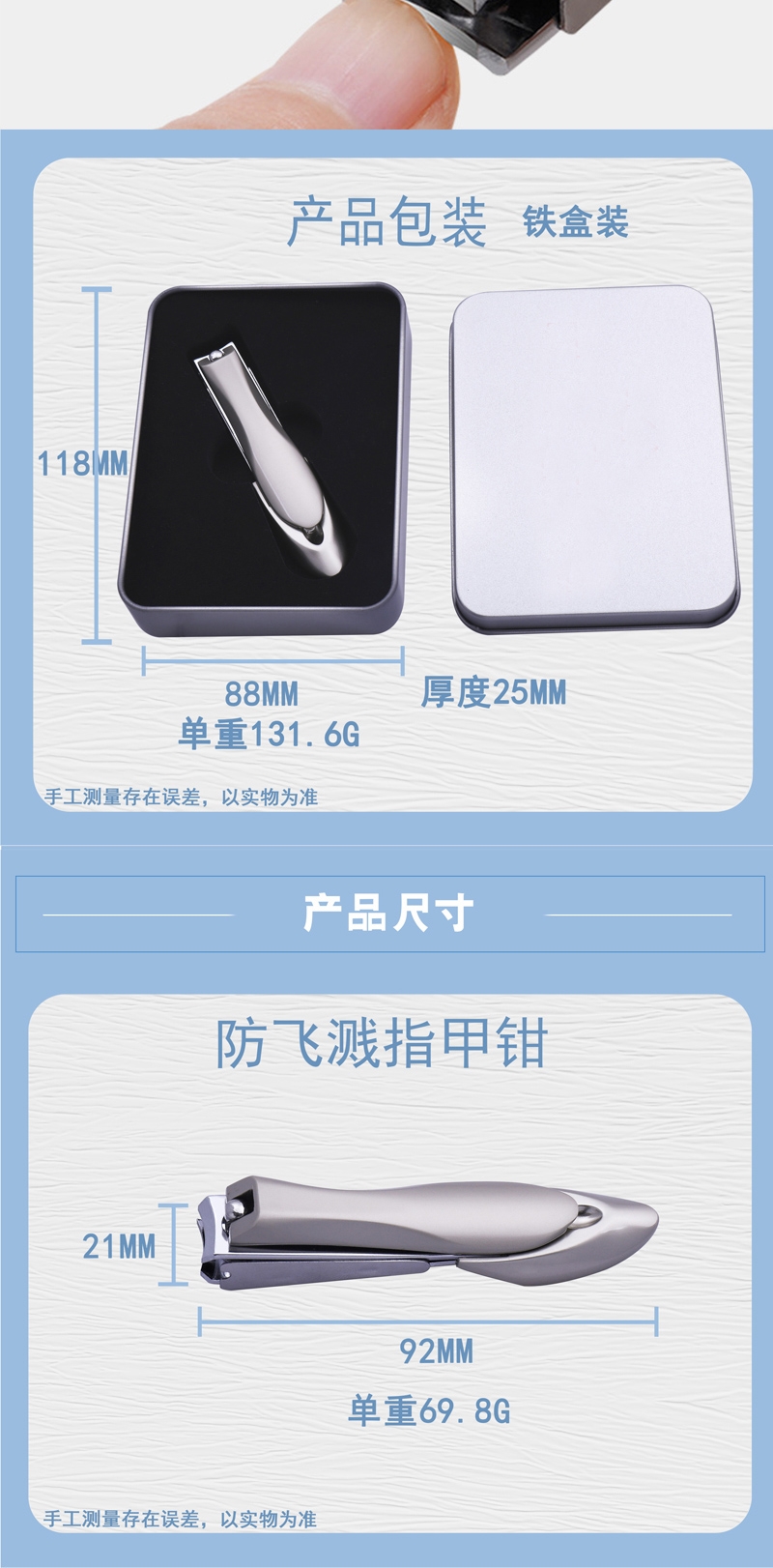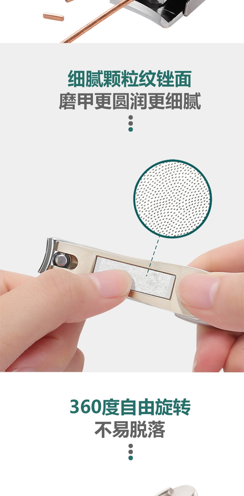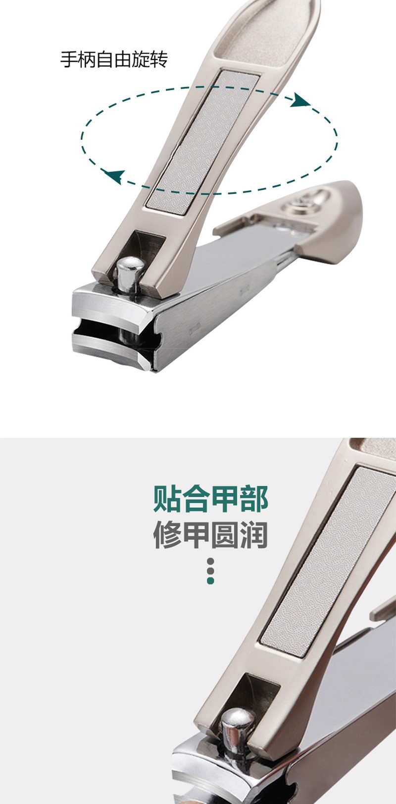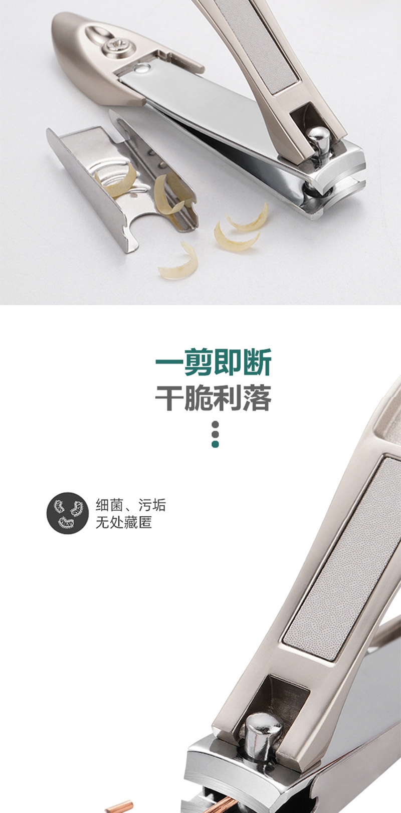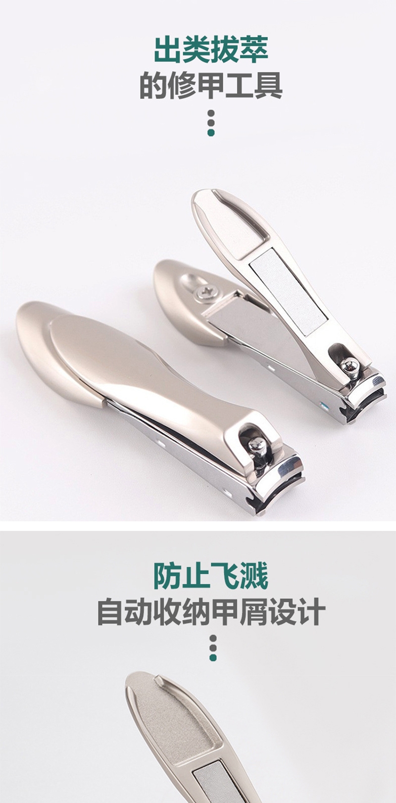 多功能收纳指甲剪精钢锻造刀头,硬度高韧性强;贴心收纳设计修剪过程中指甲不会飞溅,剪完一倒即净;自带指甲锉内置不锈钢指甲锉,修剪之后可以直接打磨甲