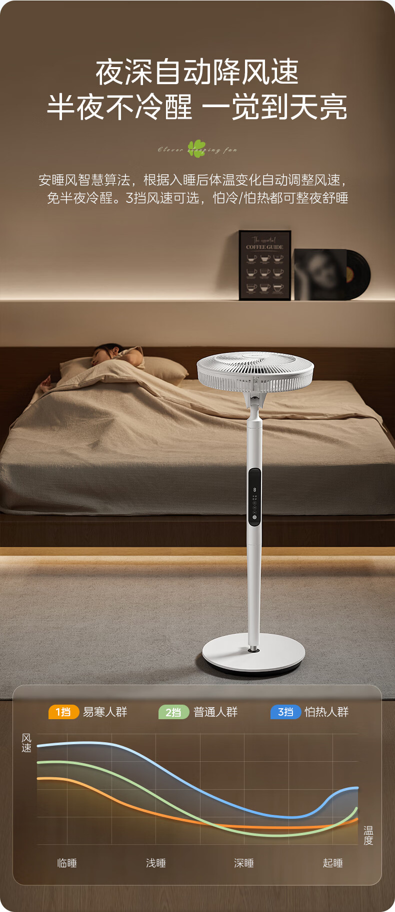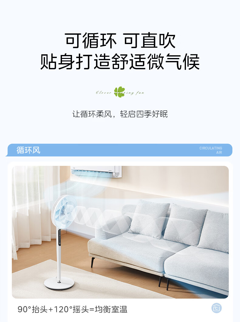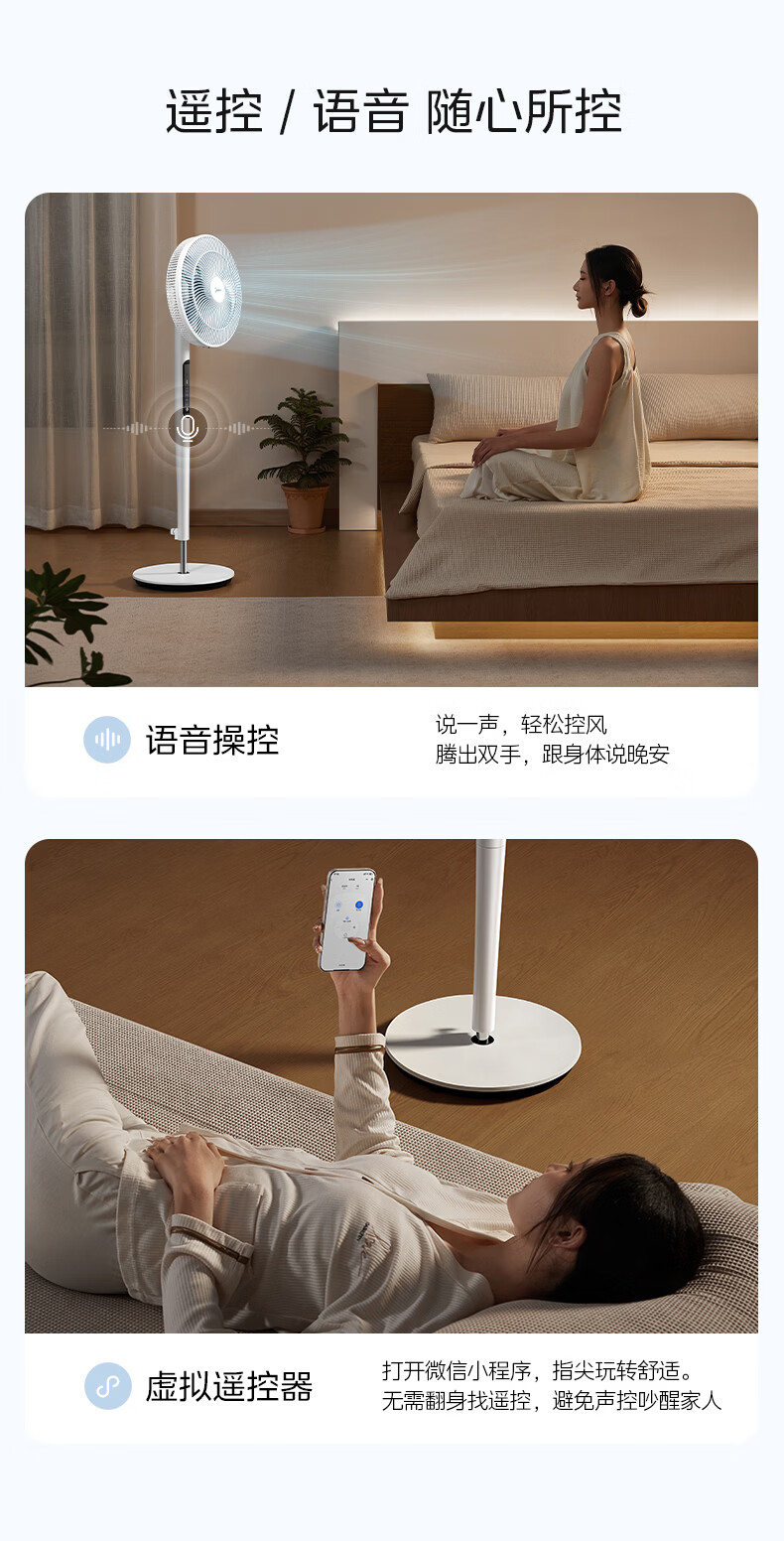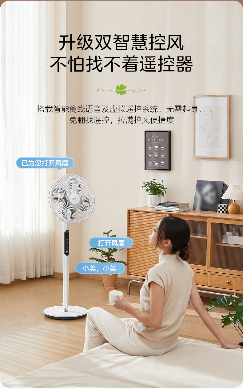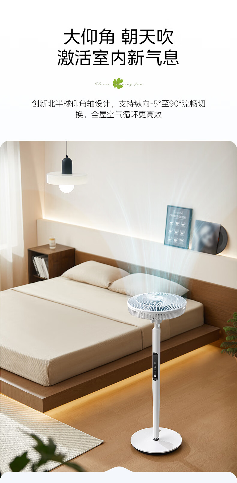 电子式——语音+遥控+触控+小程序;朝天吹-开启落地扇的循环时代;幸运草仿生扇叶