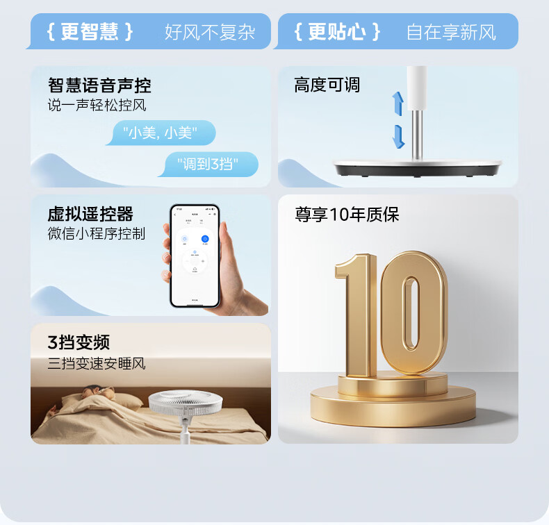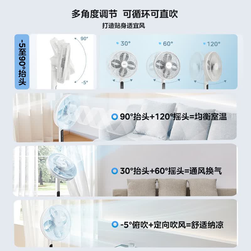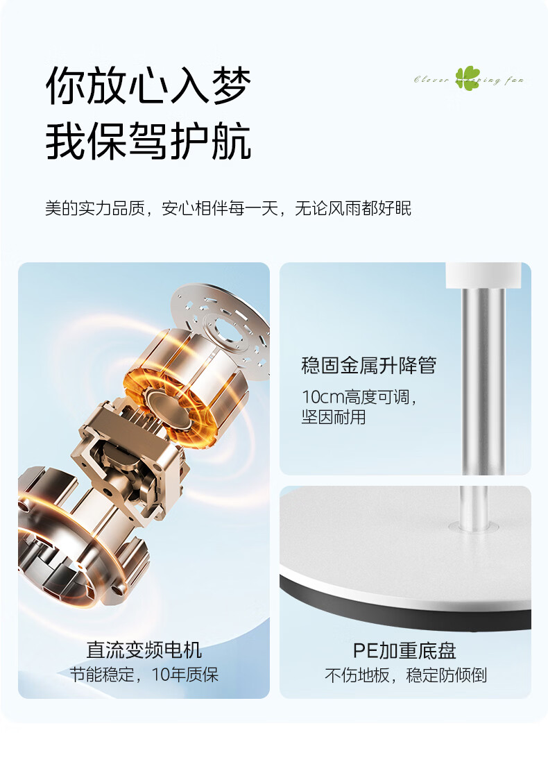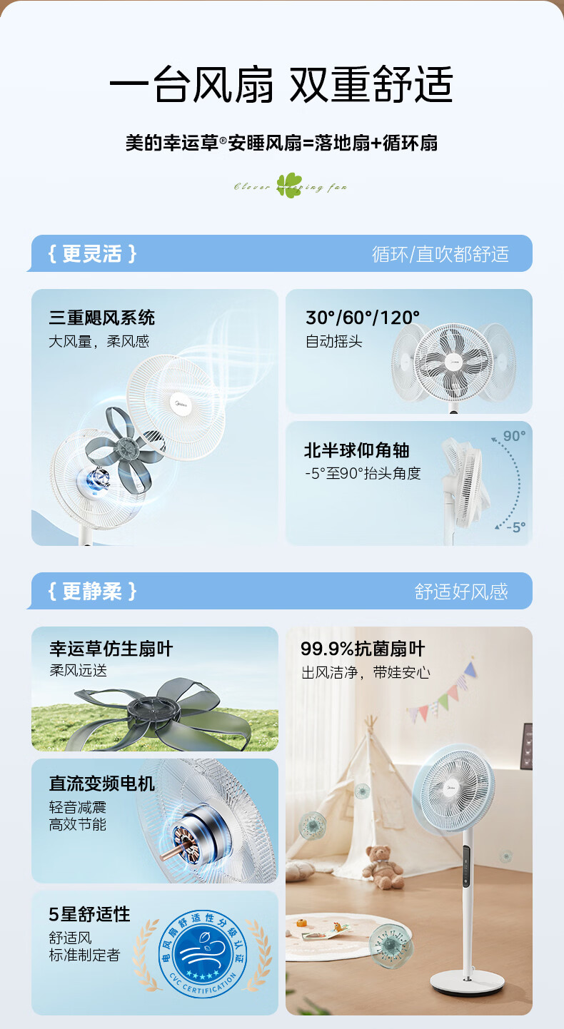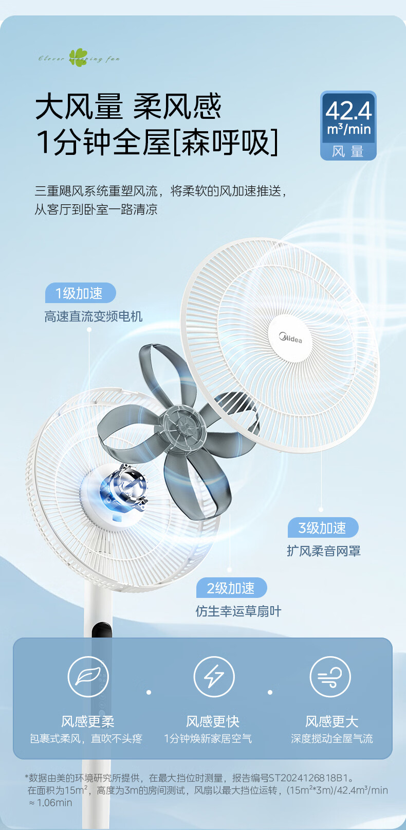 电子式——语音+遥控+触控+小程序;朝天吹-开启落地扇的循环时代;幸运草仿生扇叶