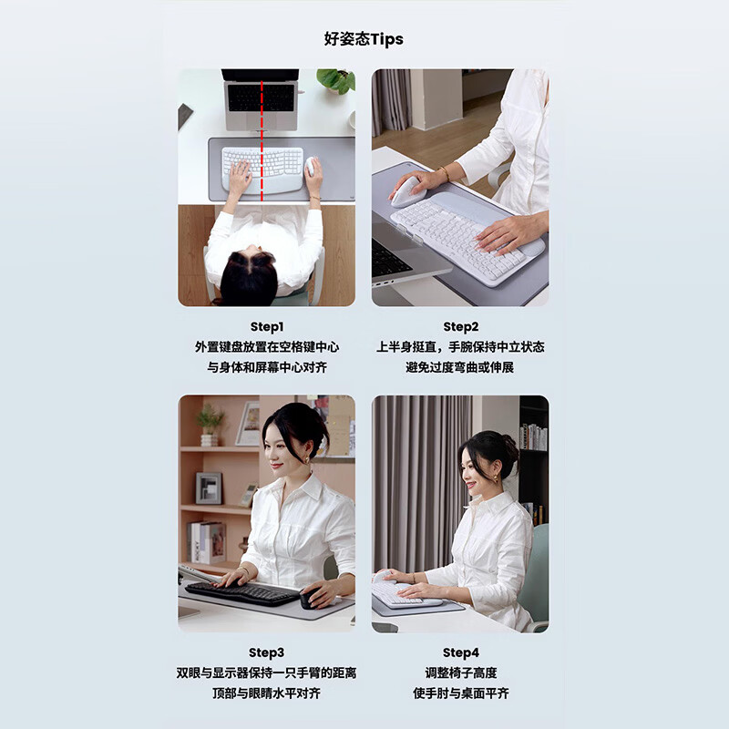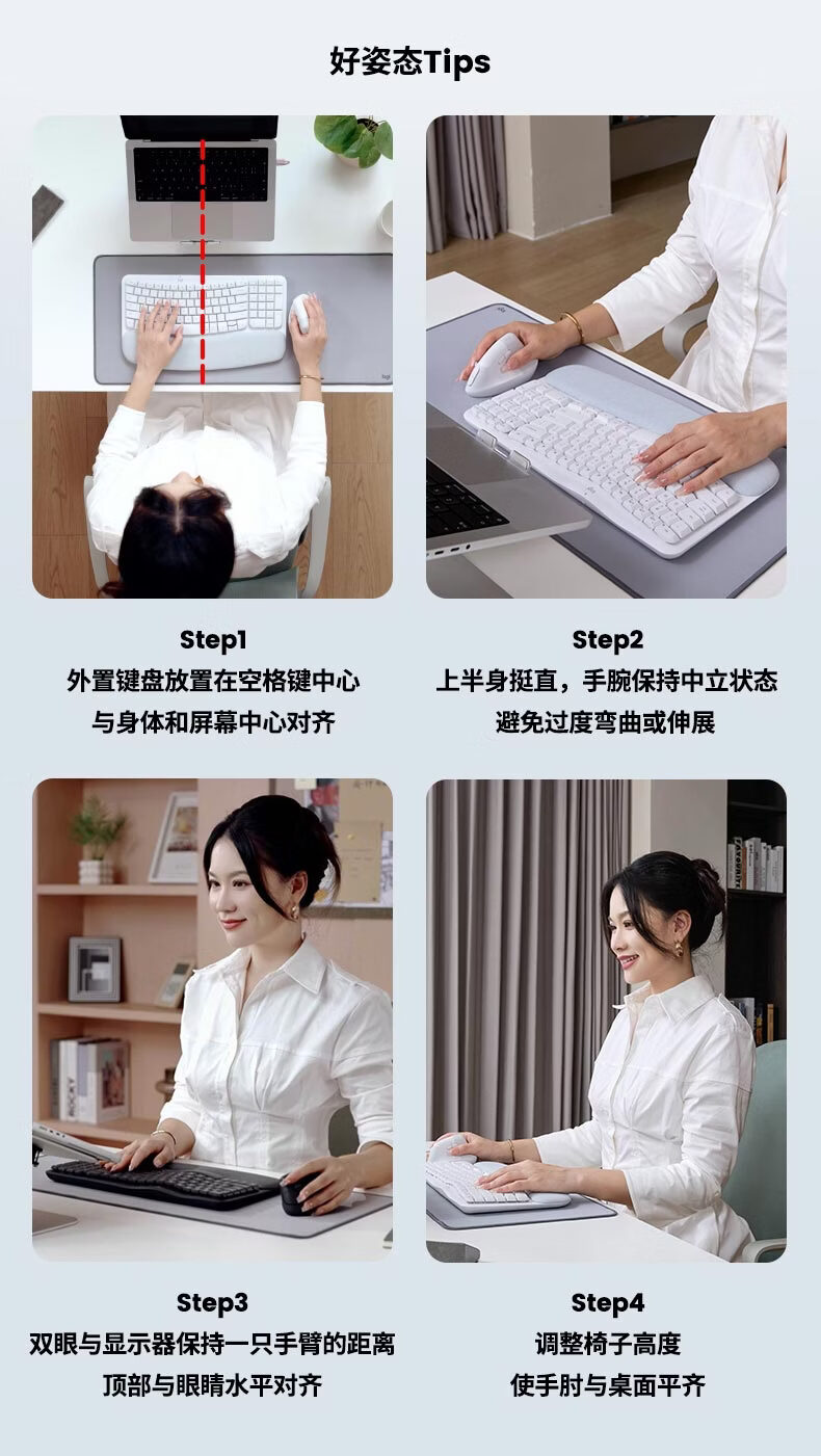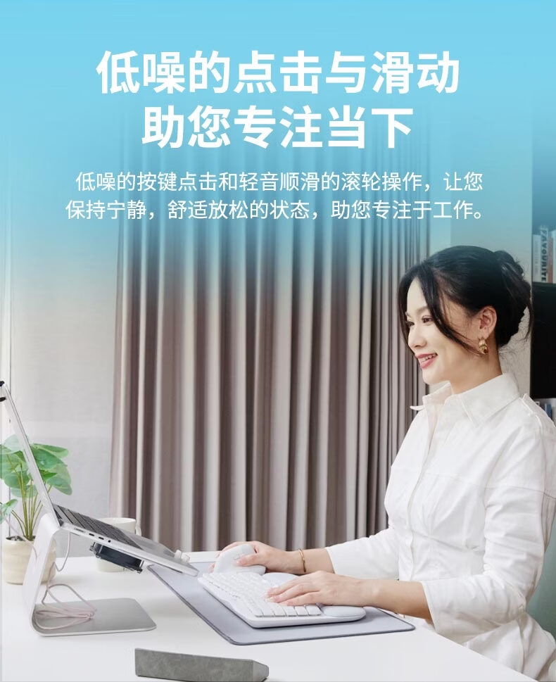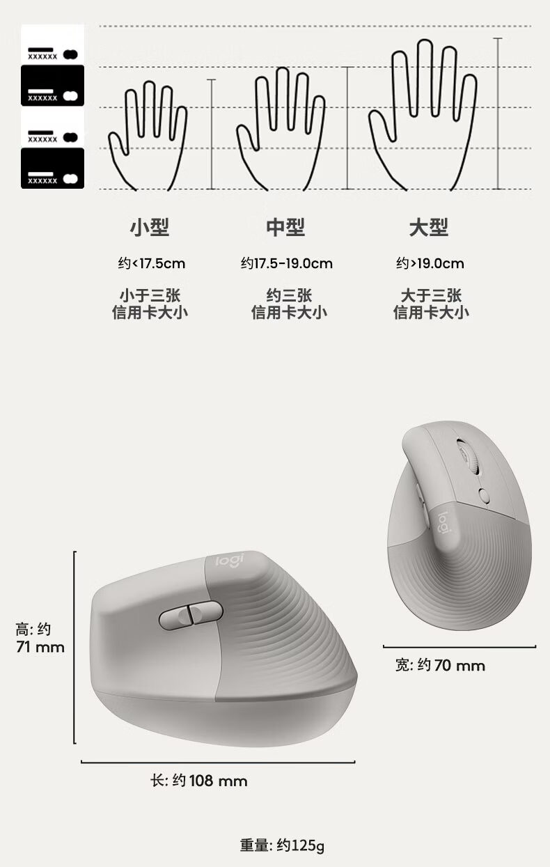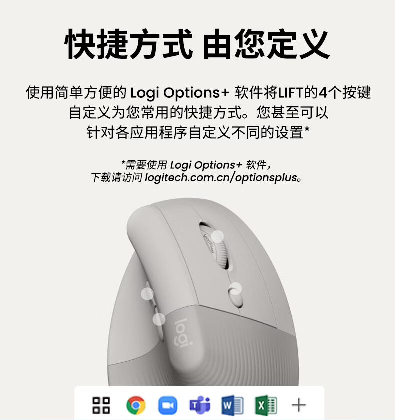 57° 倾角, 自然握持角度,适合亚洲中小手型;轻音点击按键点击;配有smartwheel自适应滚轮,逐行&疾速两种;三台设备连接,easy-switch 简易切换;双模连接,蓝牙低功耗& logi bolt