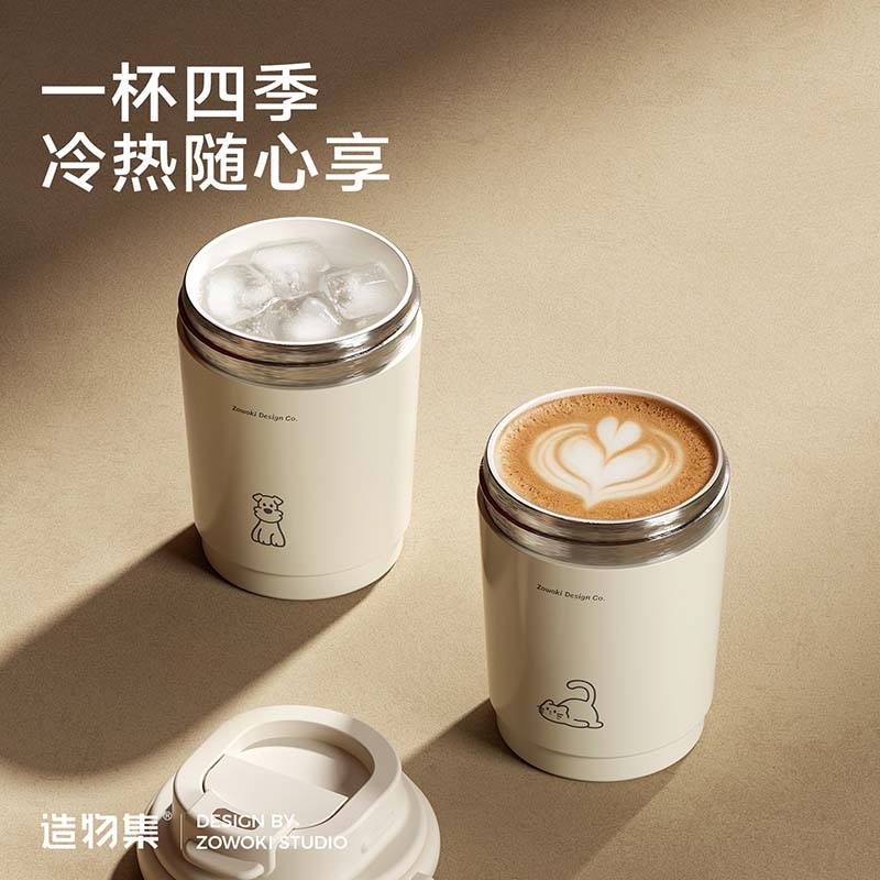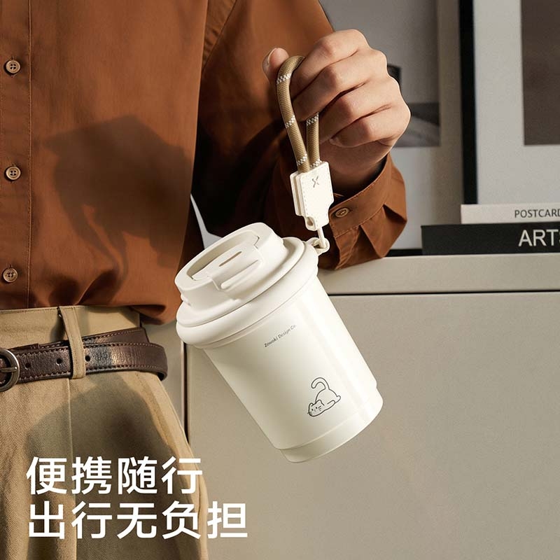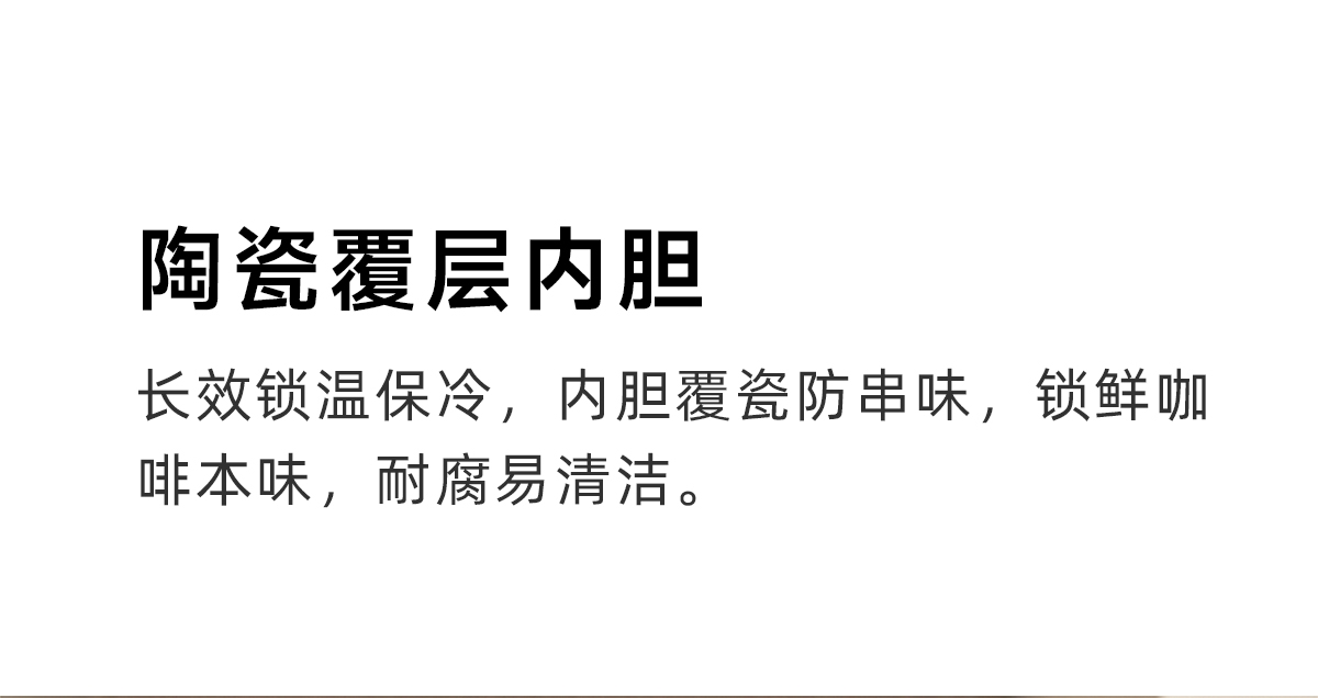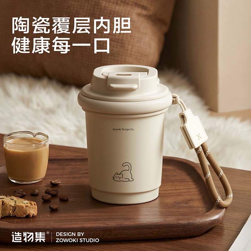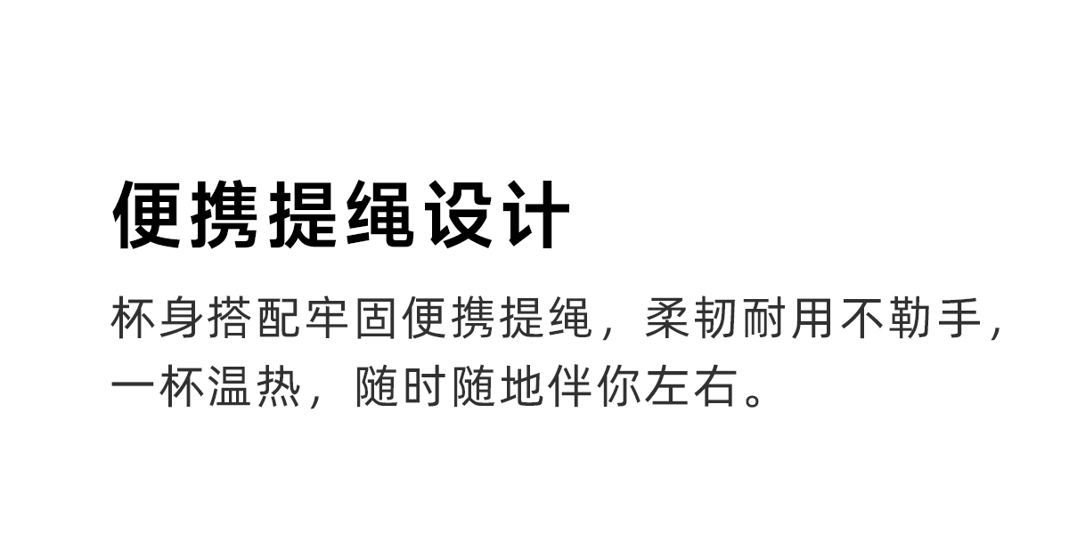 陶瓷覆层内胆,耐腐易清洁;双饮设计,敞口直饮,小口细品,随心切换;便携提绳设计,随时随地伴你出行