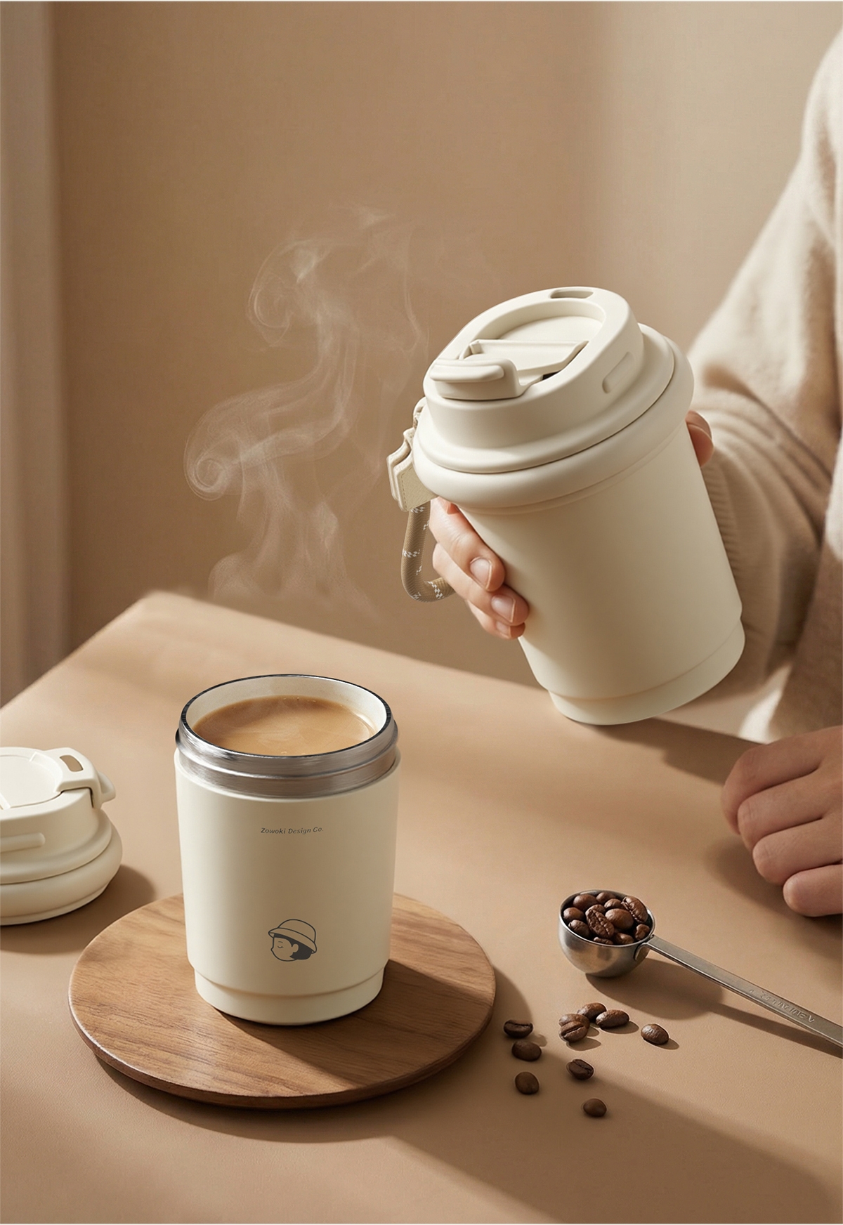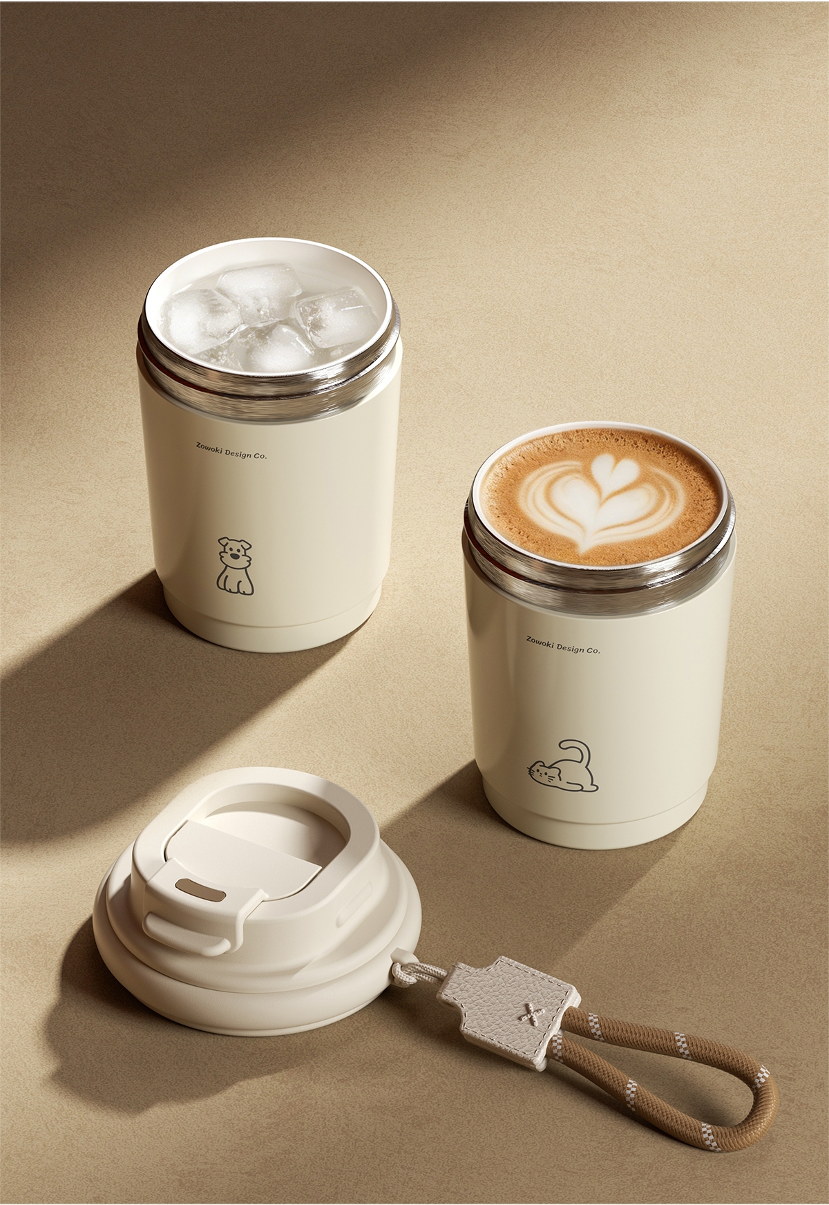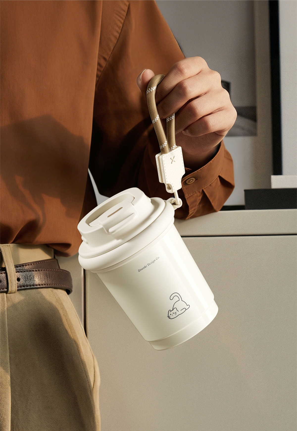 陶瓷覆层内胆,耐腐易清洁;双饮设计,敞口直饮,小口细品,随心切换;便携提绳设计,随时随地伴你出行