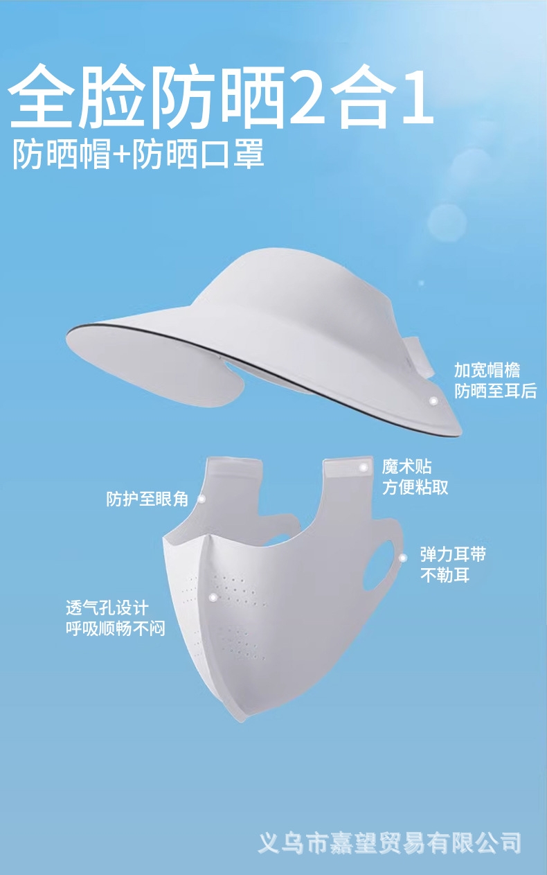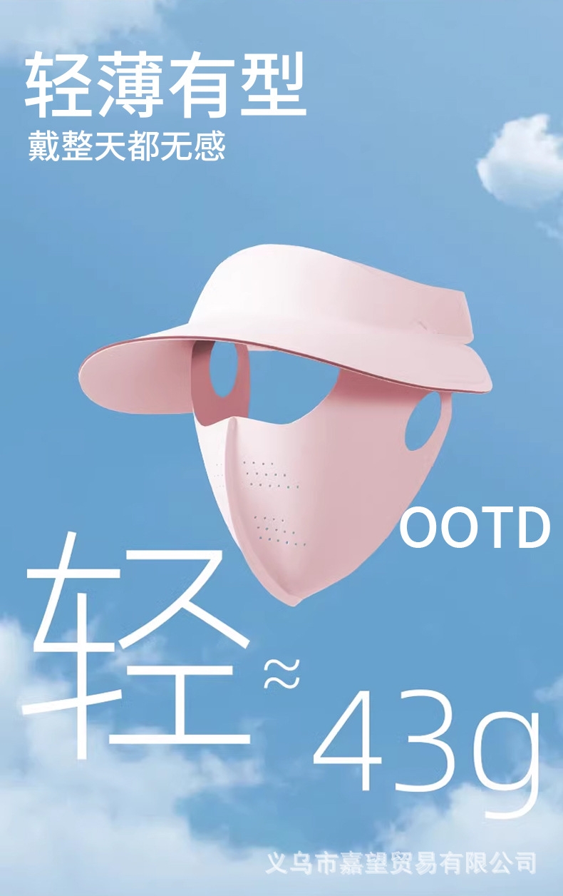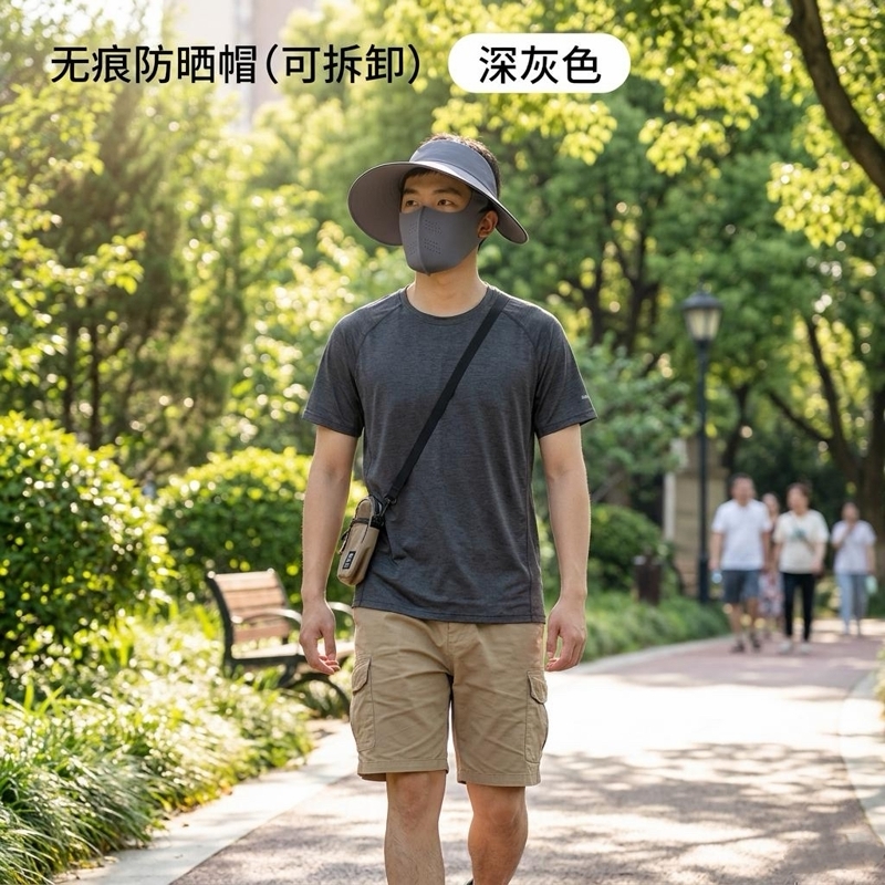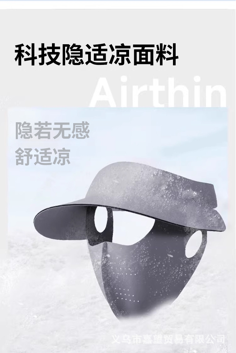可拆卸防晒口罩套装,防晒更全面 采用锦纶科技凉感面;无痕裁剪,佩戴服帖,柔软亲肤;遮阳帽可调节魔术贴设计,适合多种头围