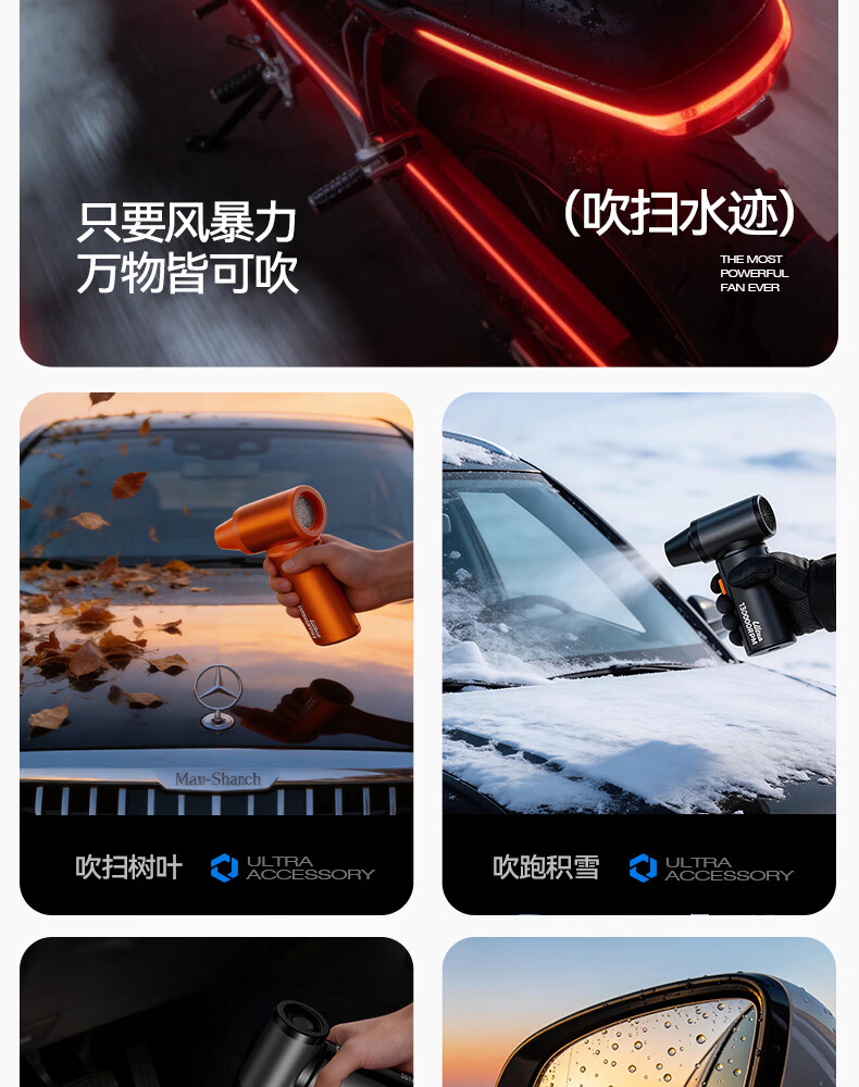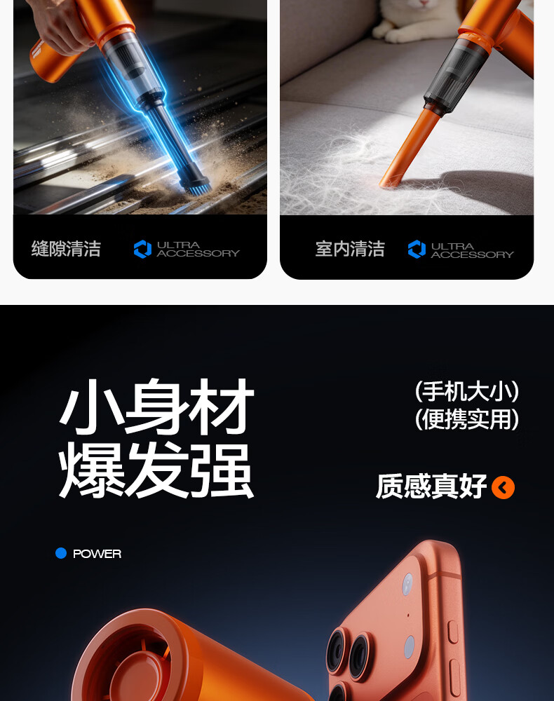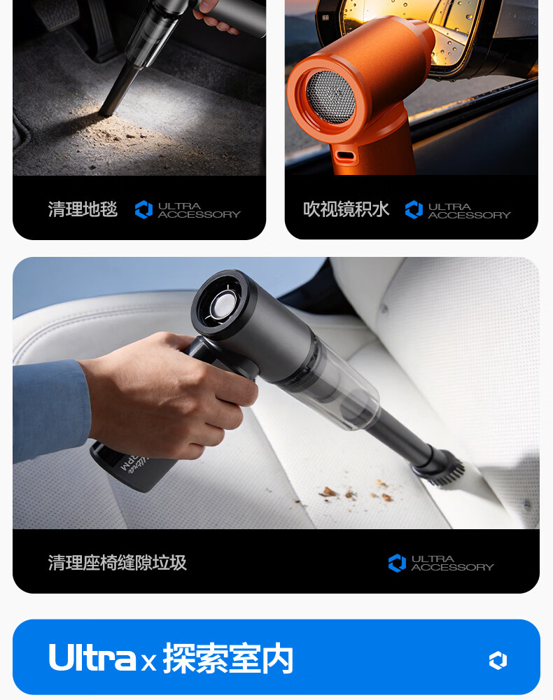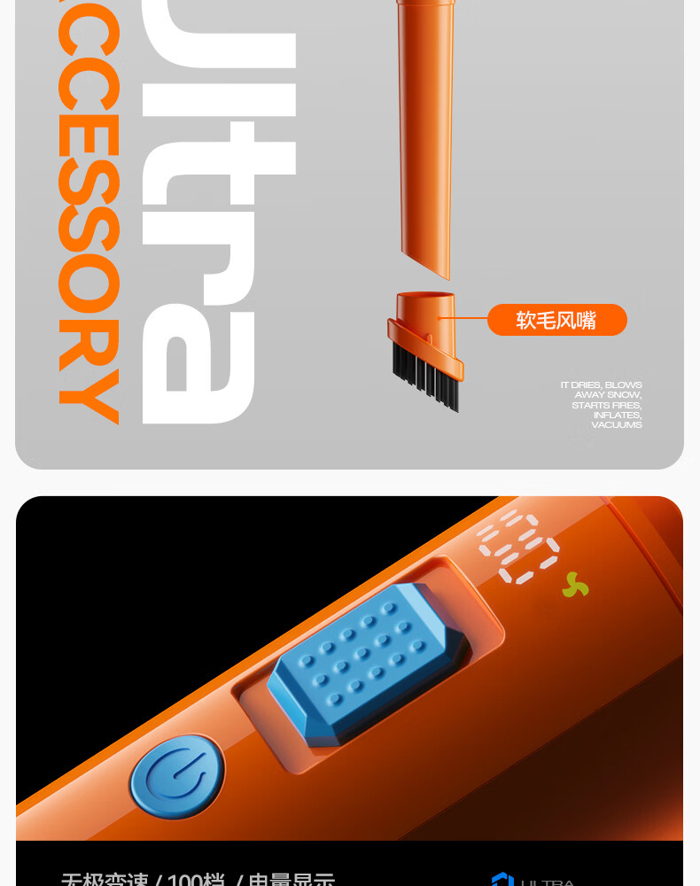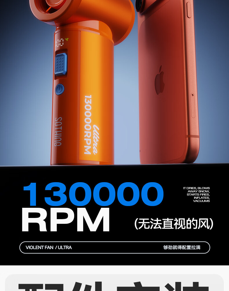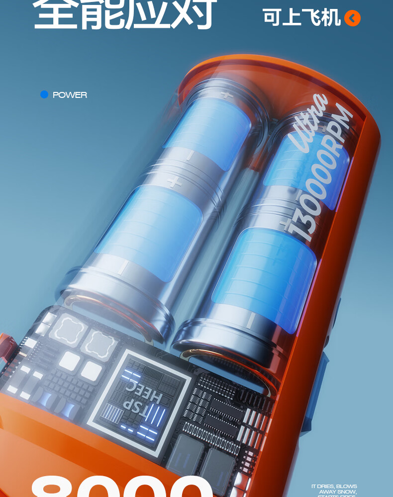 可拆洗 充电续航;吸吹一体套装;转速高达1.3万转
