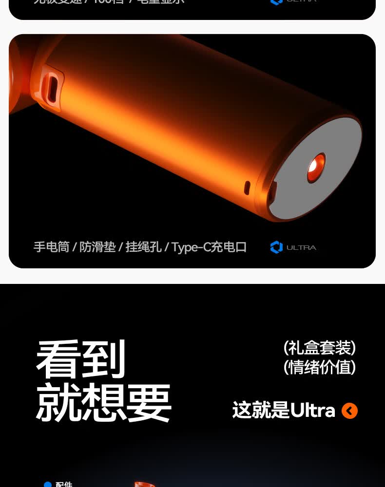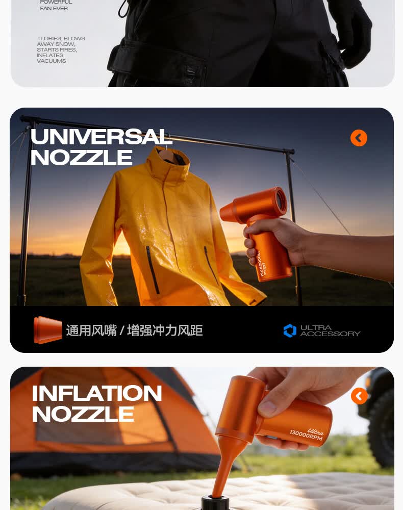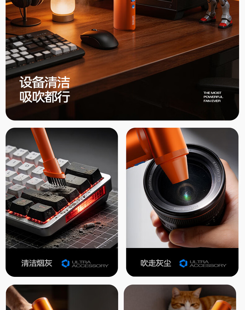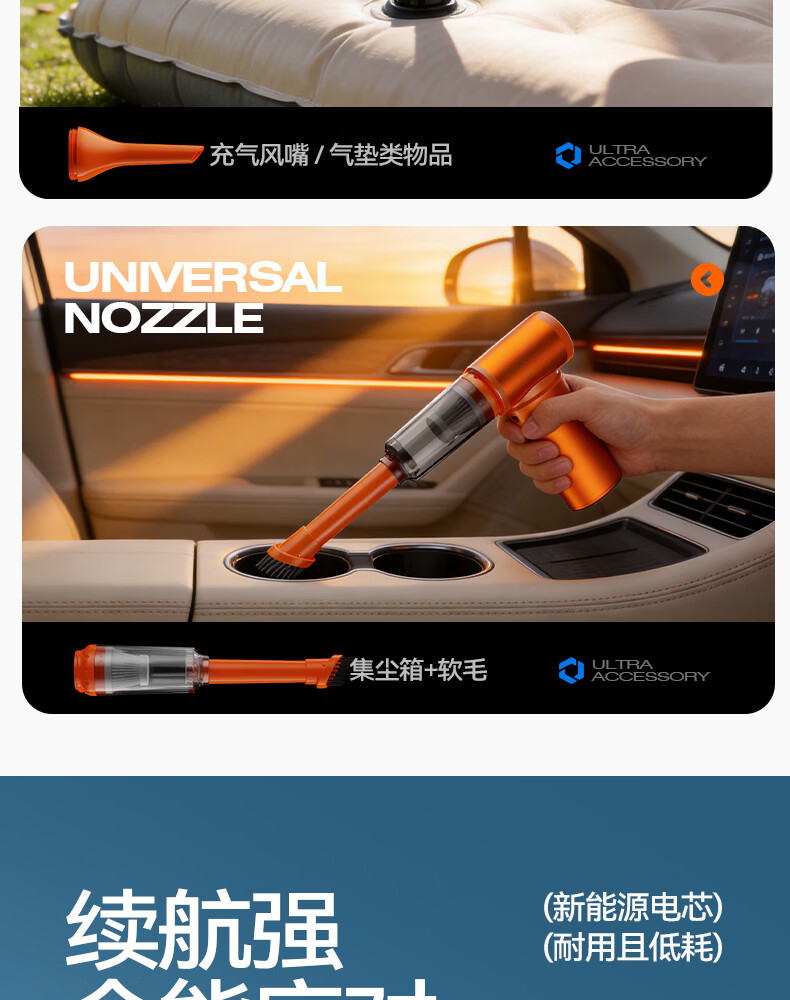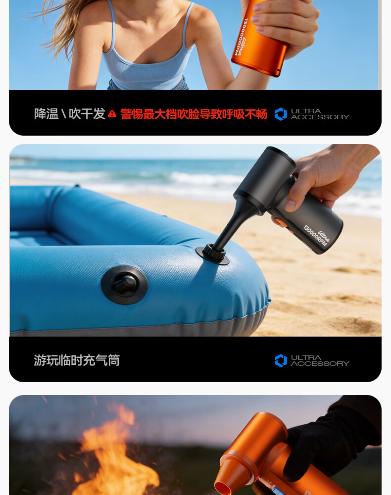 可拆洗 充电续航;吸吹一体套装;转速高达1.3万转