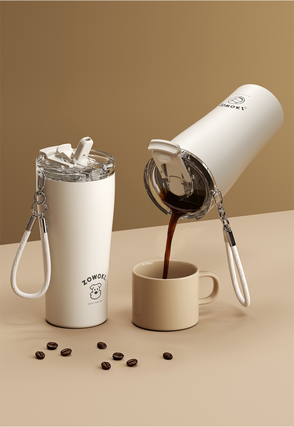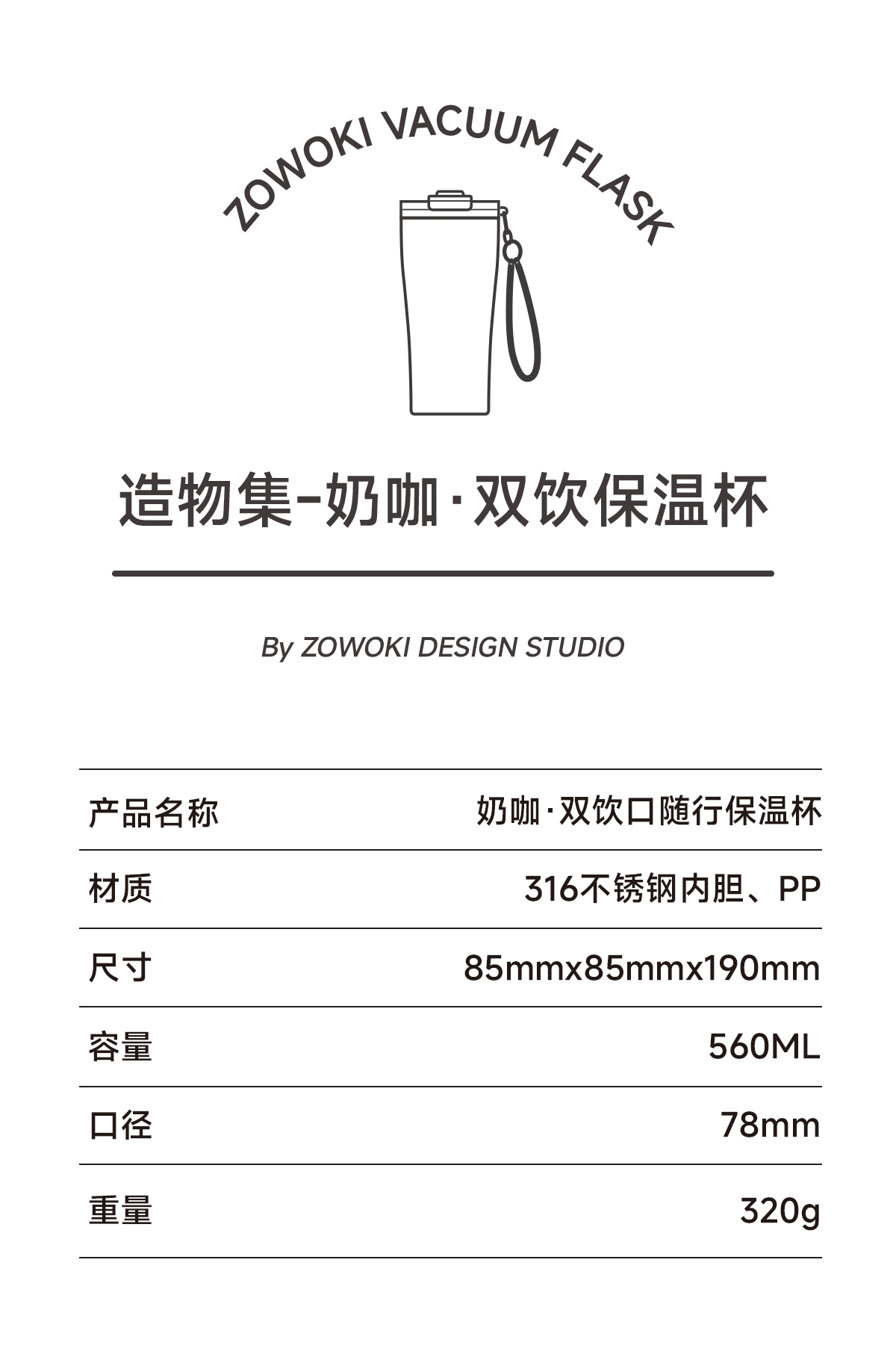 316不锈钢内胆,保温保冷,四季可用;杯盖双饮设计,小口吸管多场景适用;便携提绳设计,一拎即走
