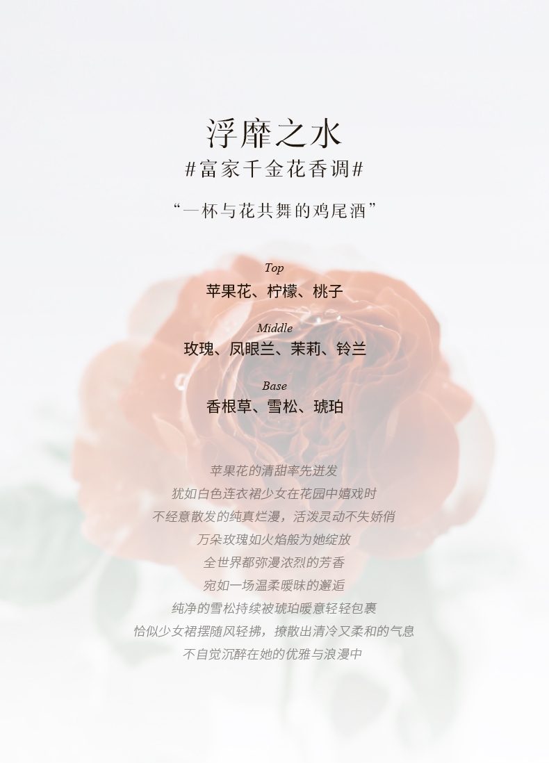 三段式调香,越夜越香;从头香到指尖;百元价位的高定香氛