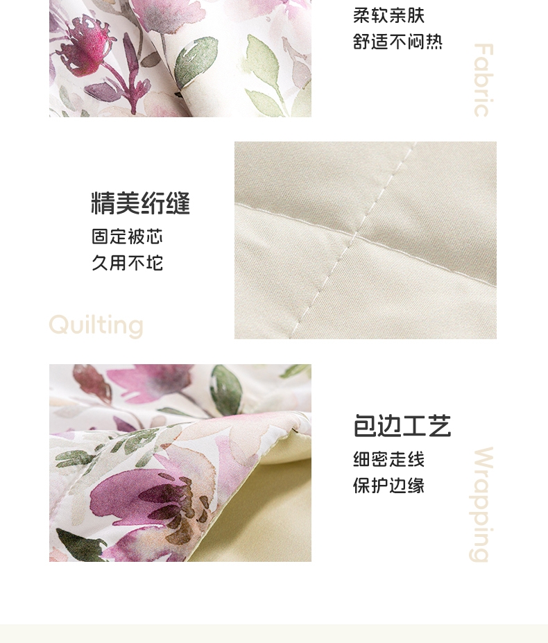 优选面料,柔软顺滑;硅藻土纤维填充,抑制细菌,健康舒适;精细工艺,耐磨耐用,可机洗水洗