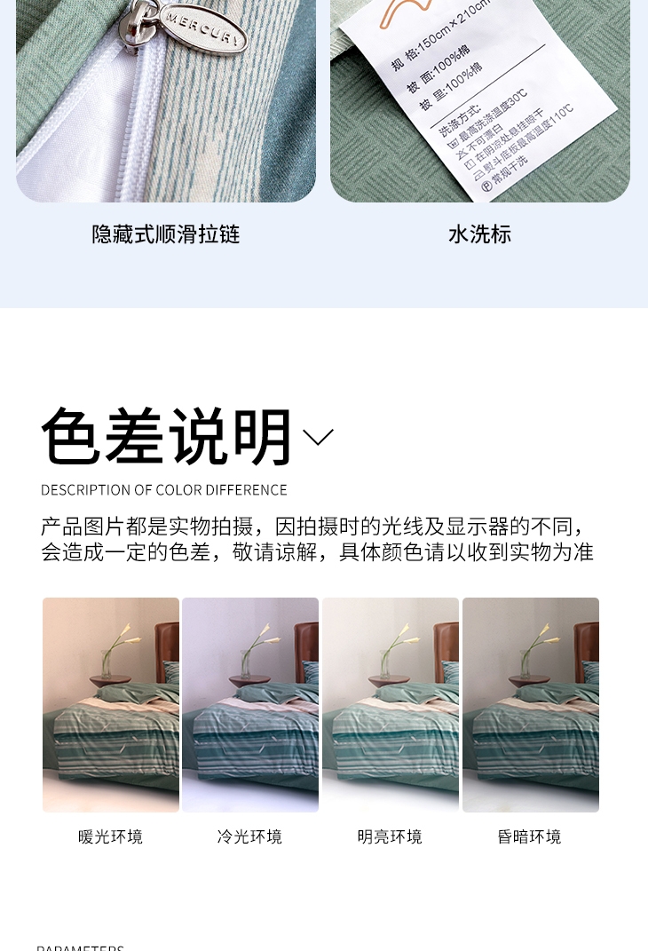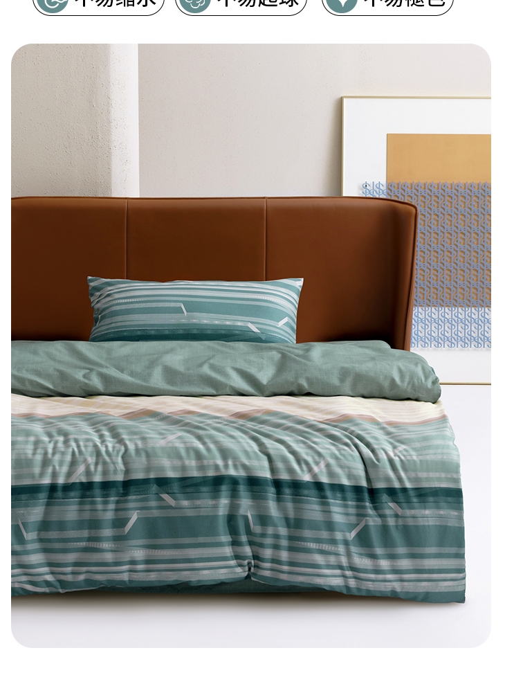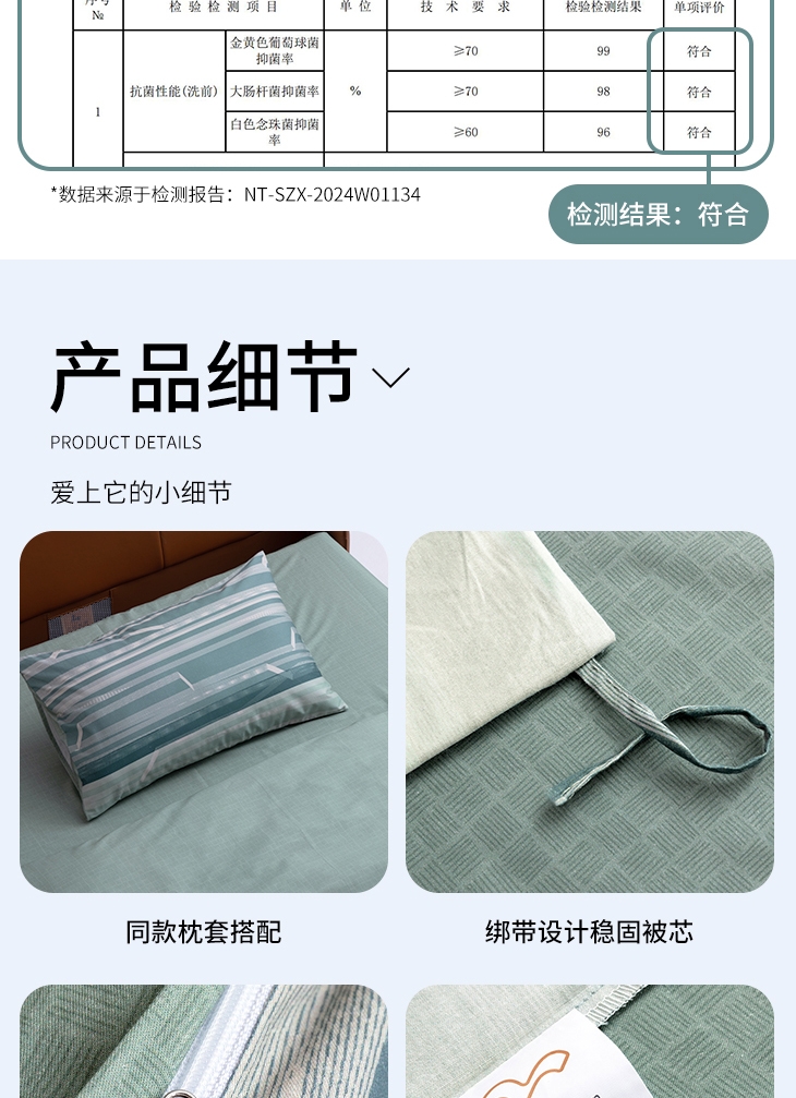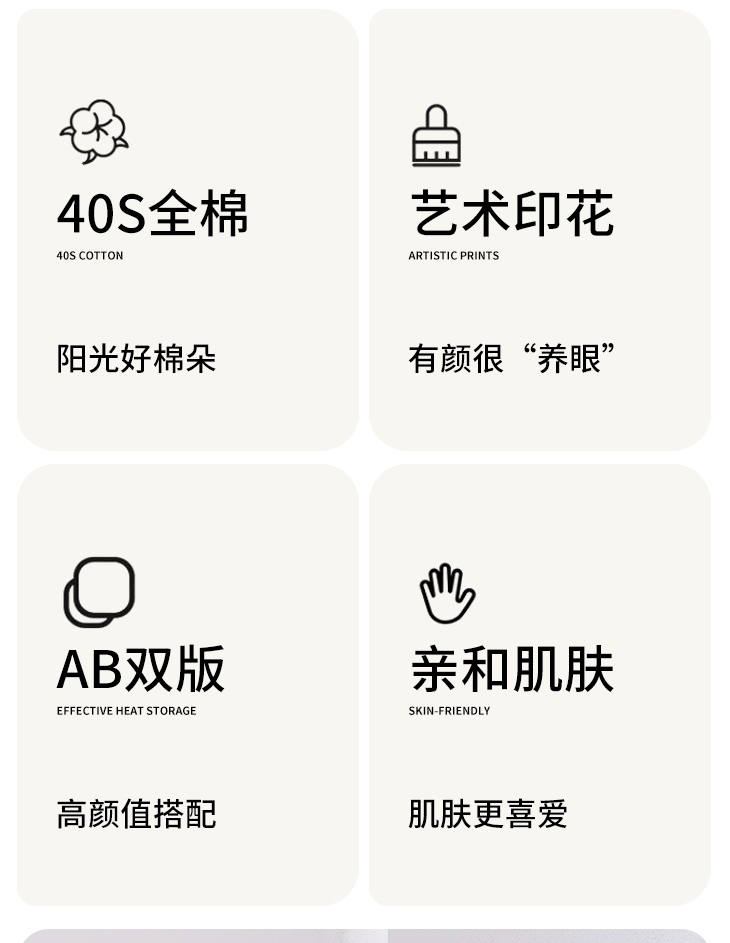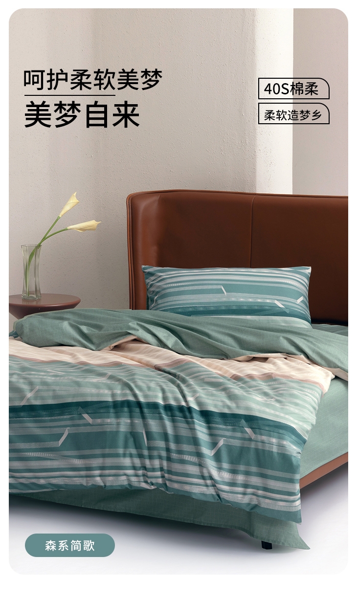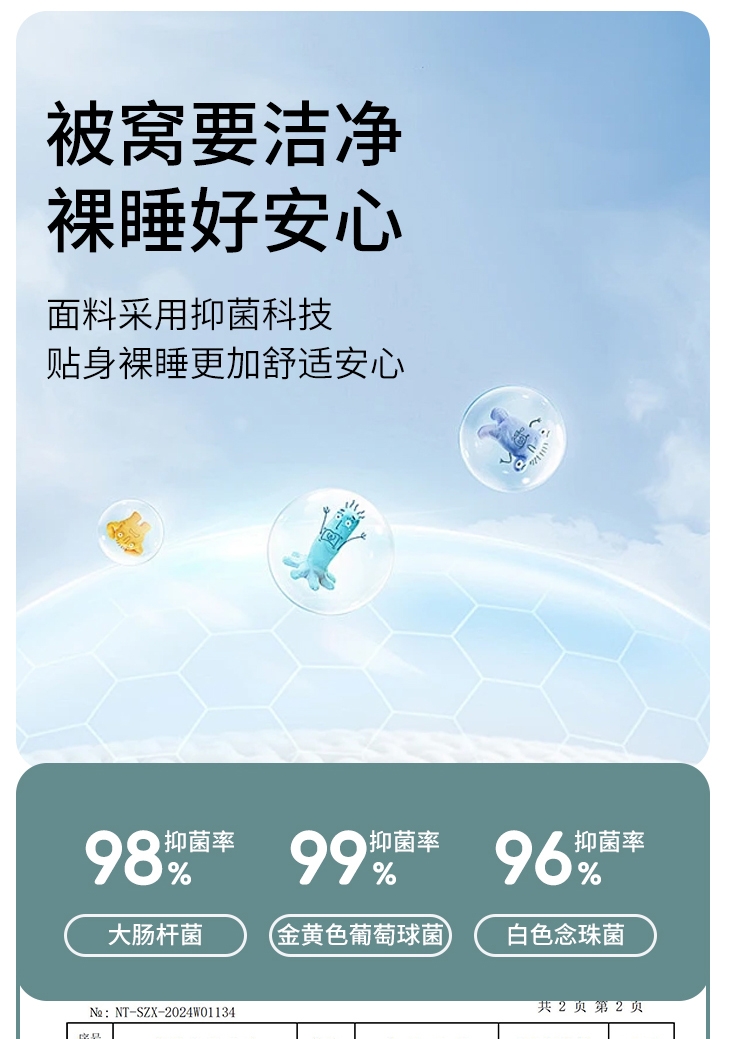 温暖升级,柔软亲肤;40支全棉面料,手感更柔软细腻,舒服透气;水星抗菌科技,健康安睡