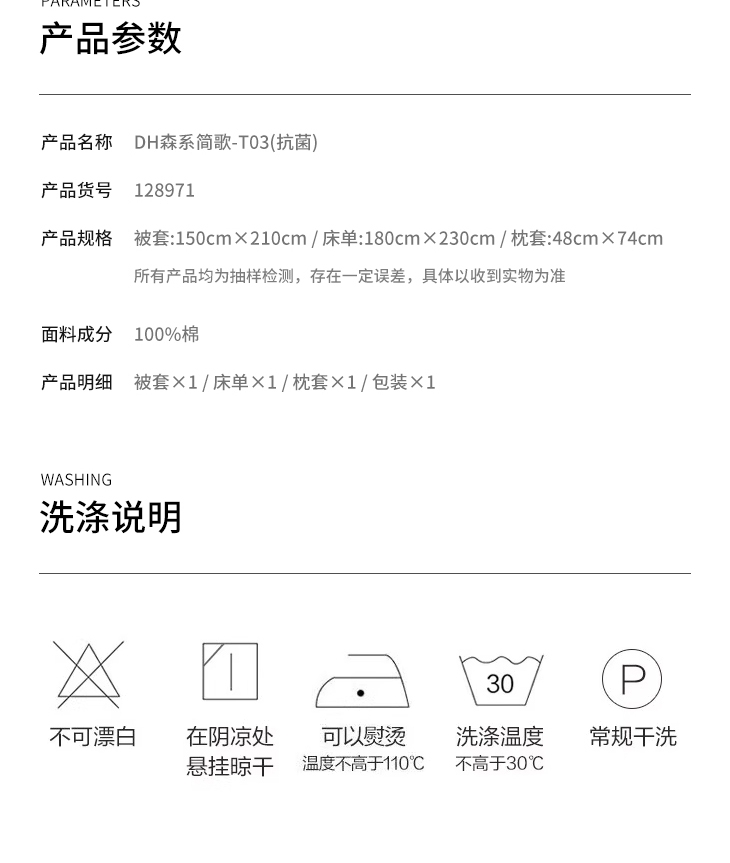 水星家纺 森系简歌全棉抗菌三件套128971