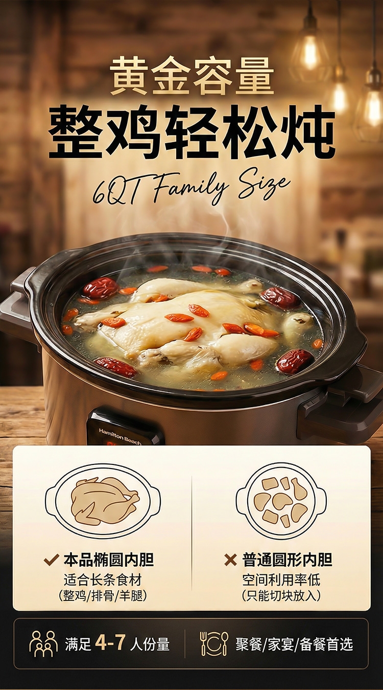汉美驰 美式慢炖锅5.5LSC55101-1