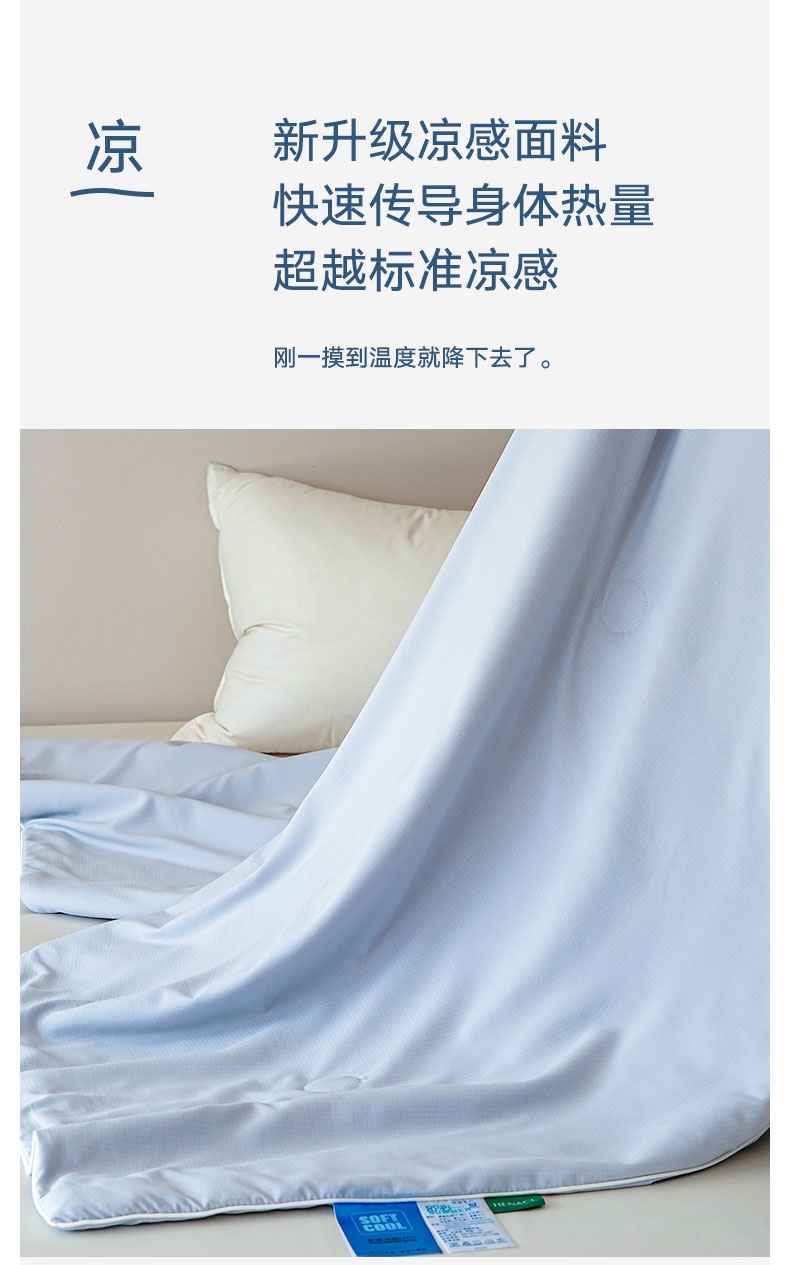 采用柔软舒适的针织布制作成的面料;添加凉感助剂 触感凉而不冰 亲肤舒适透气性强; ;优质抗菌纤维,柔软亲肤 导湿透气