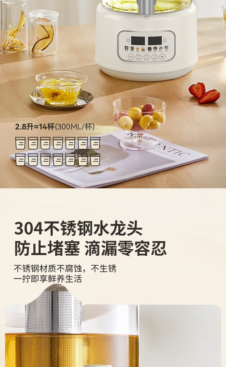 2.8升实用容量小家庭刚好一天饮;便携式分体设计清洗/装水更便捷;000W快煮速沸待客时刻 好水不久等