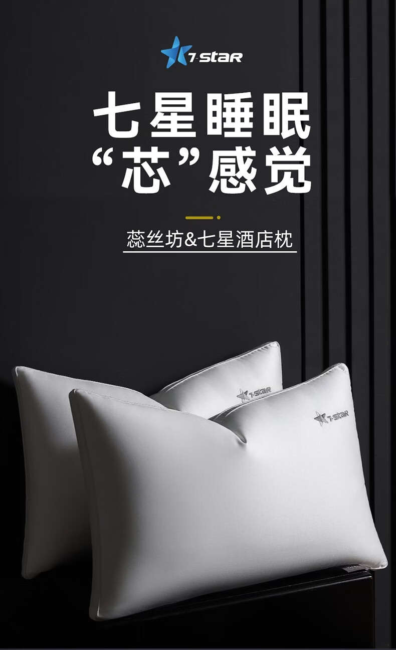 蕊丝坊 七星酒店枕超细羽丝棉中枕枕芯单只