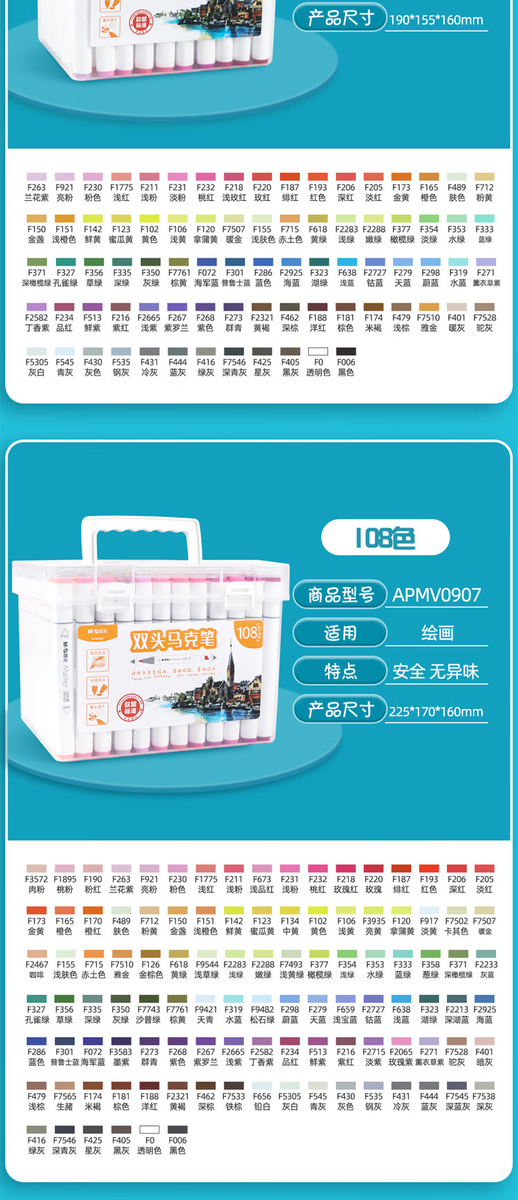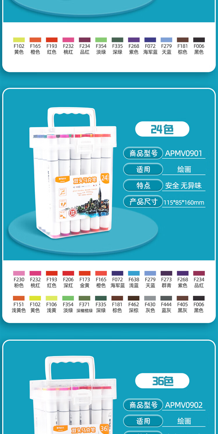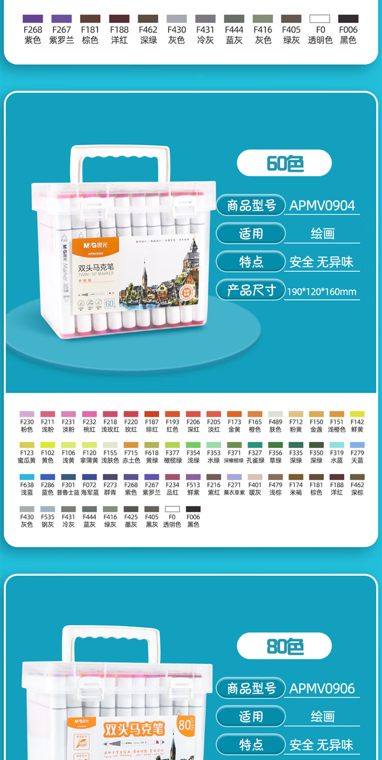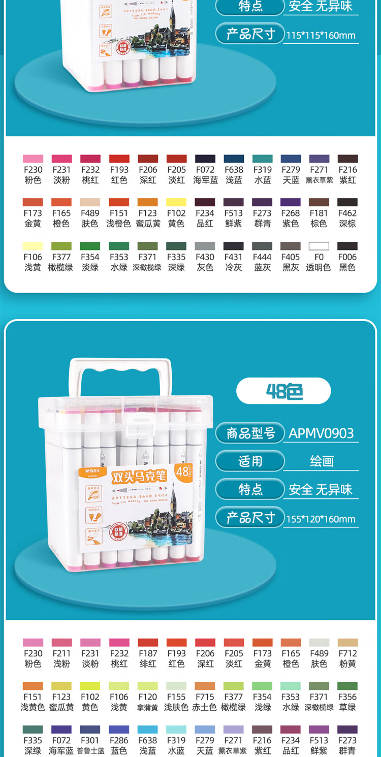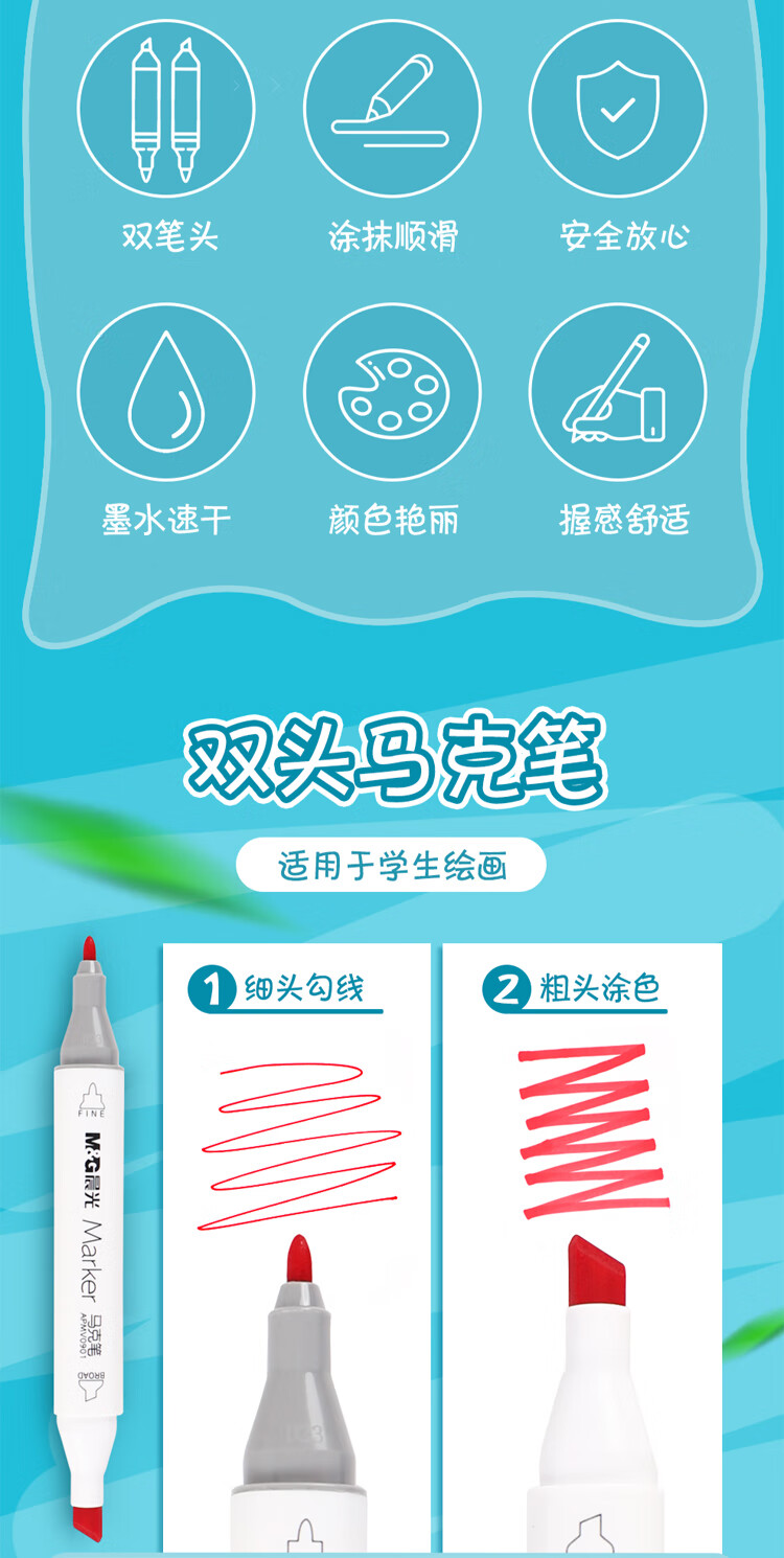 晨光 60色双头快干马克笔画画笔APMV0904