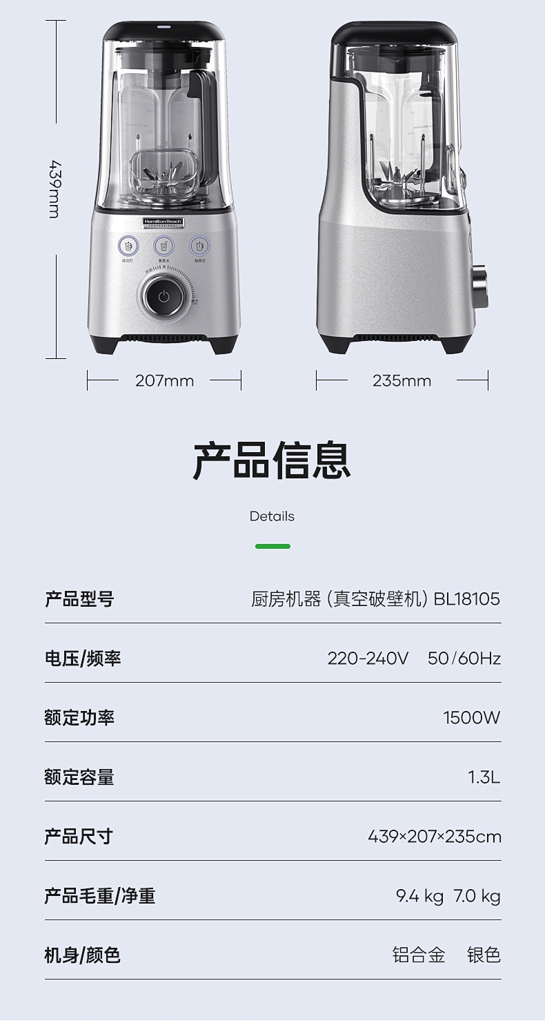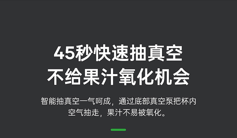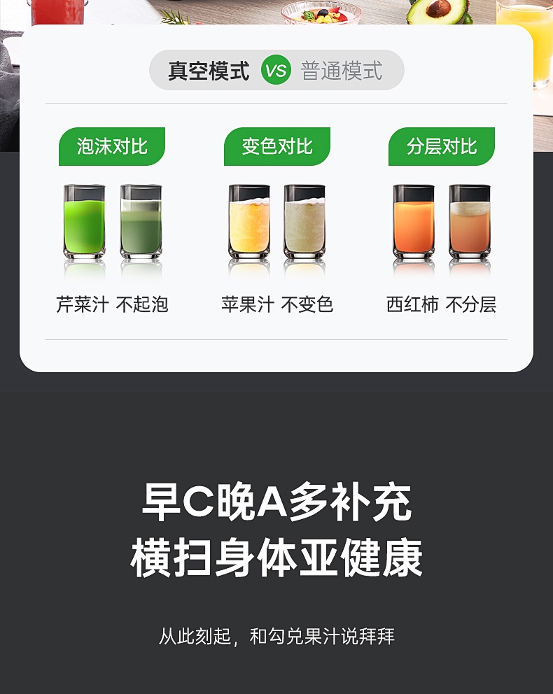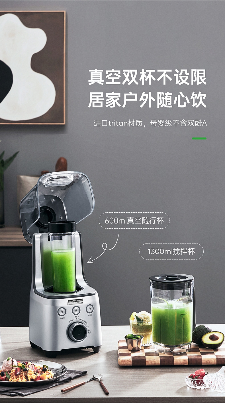 倍静消音仓,双重密闭隔音,低音不扰耳;真空锁鲜,25Kpa,负压大吸力,口感更顺滑;一机双杯,600ml便携式真空杯、存储时间更长更新;Tritan材质,母婴级品质;6叶10片精钢刀、三合一功能刀头,高效粉碎更细腻