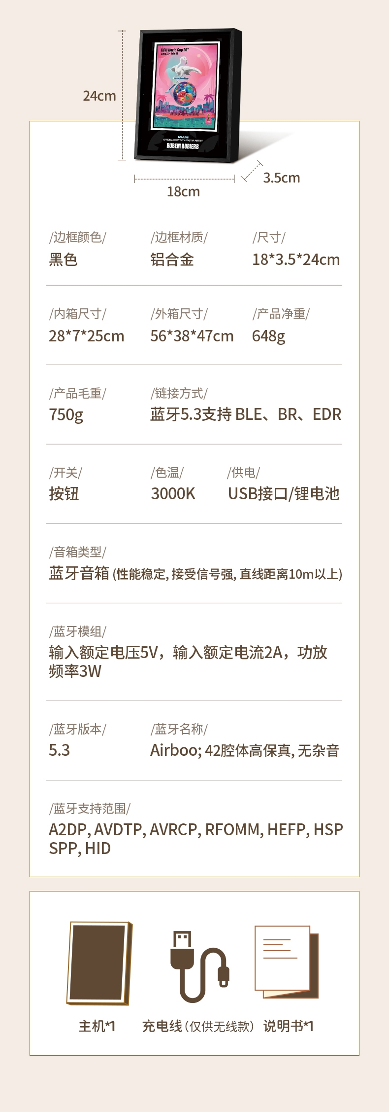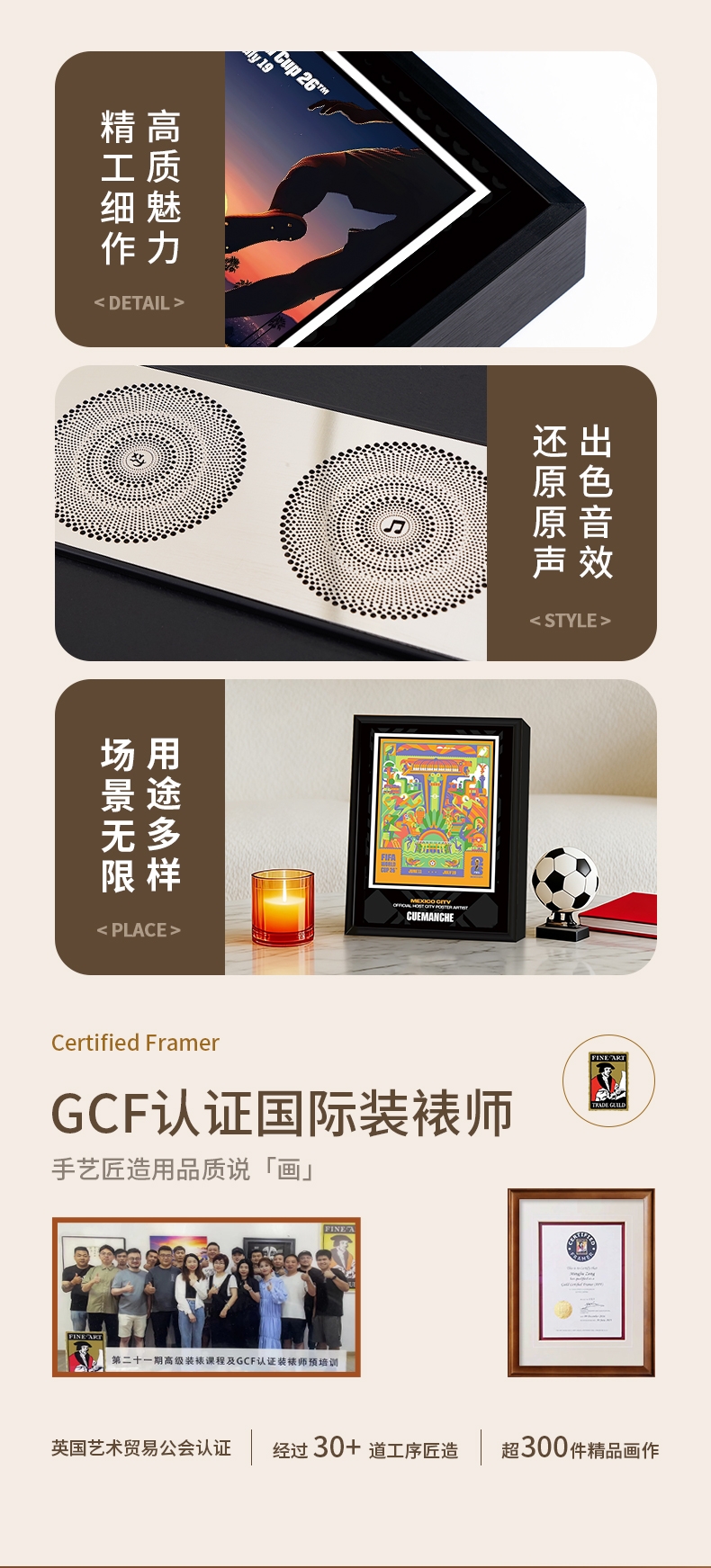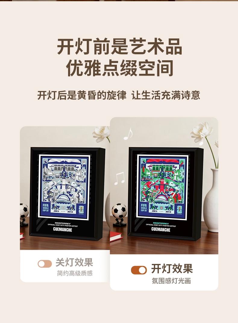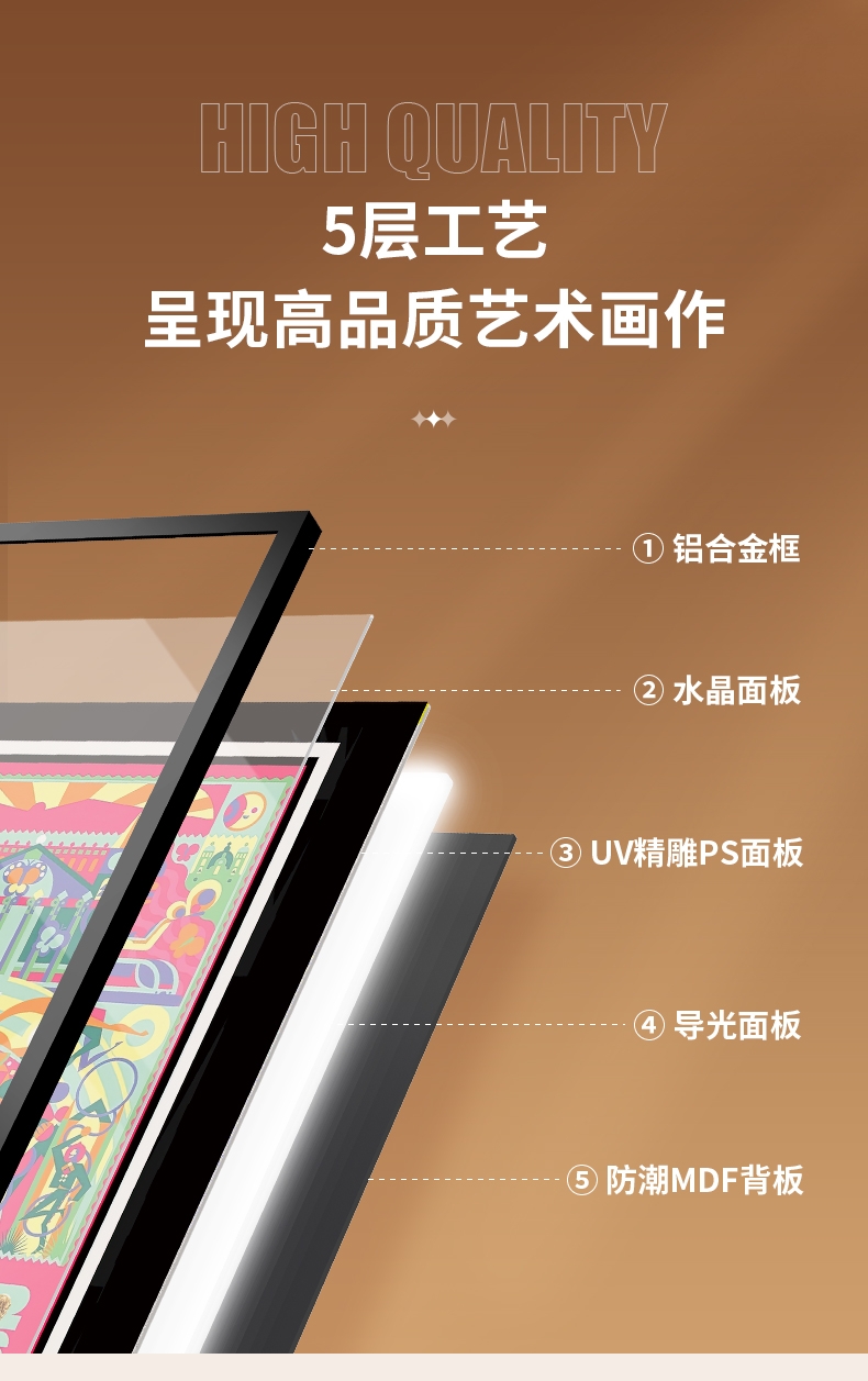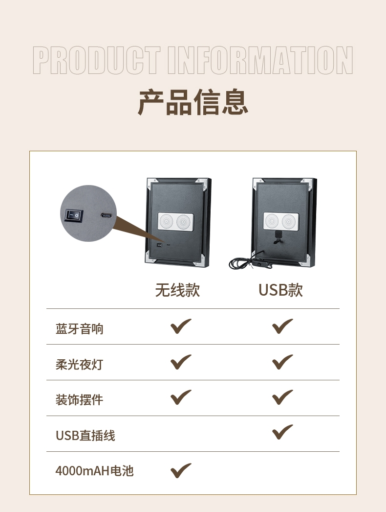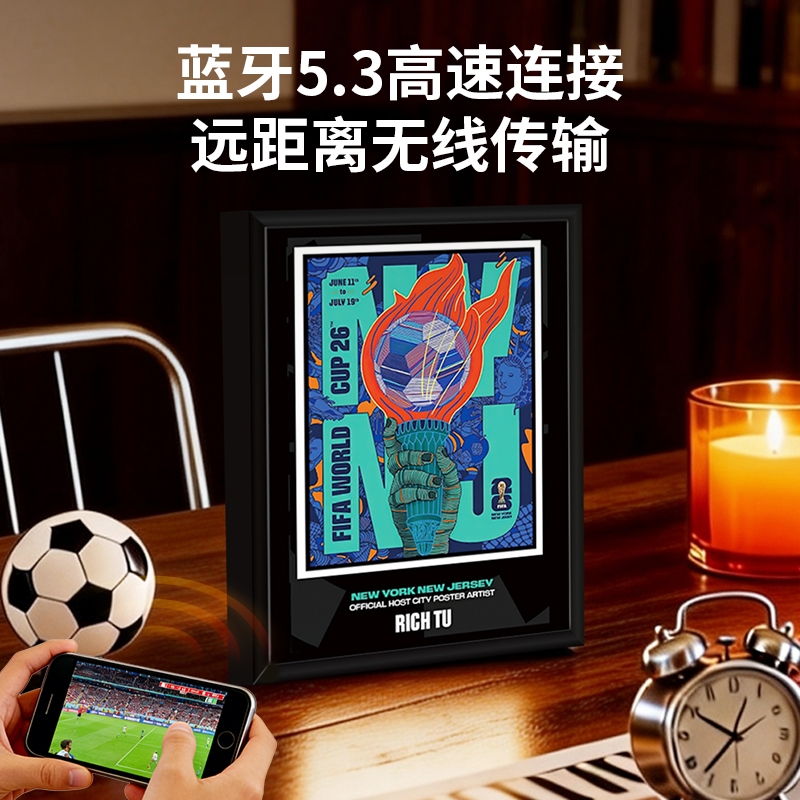 装饰摆件+氛围夜灯+蓝牙音响;高清艺术画框+防眩光玻璃,画面清晰通透,质感高级;蓝牙连接稳定,续航持久,使用便捷不繁琐