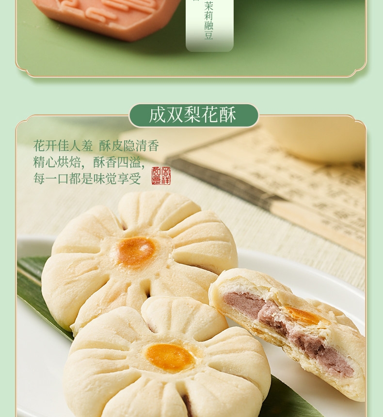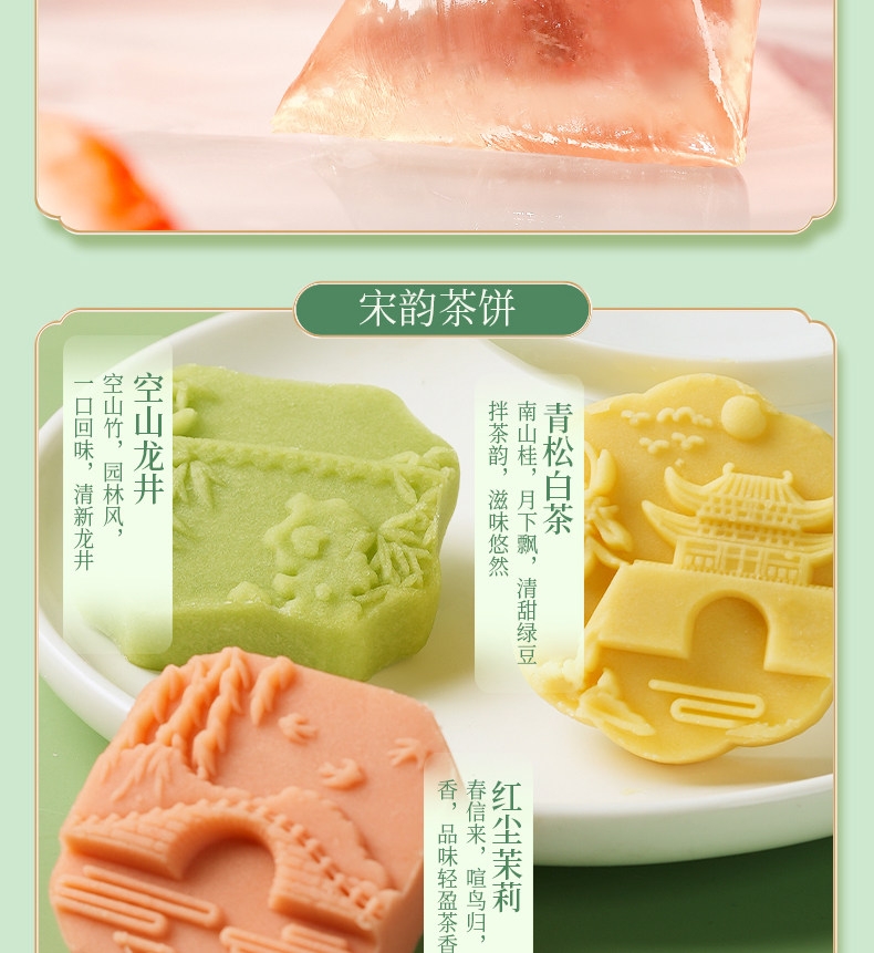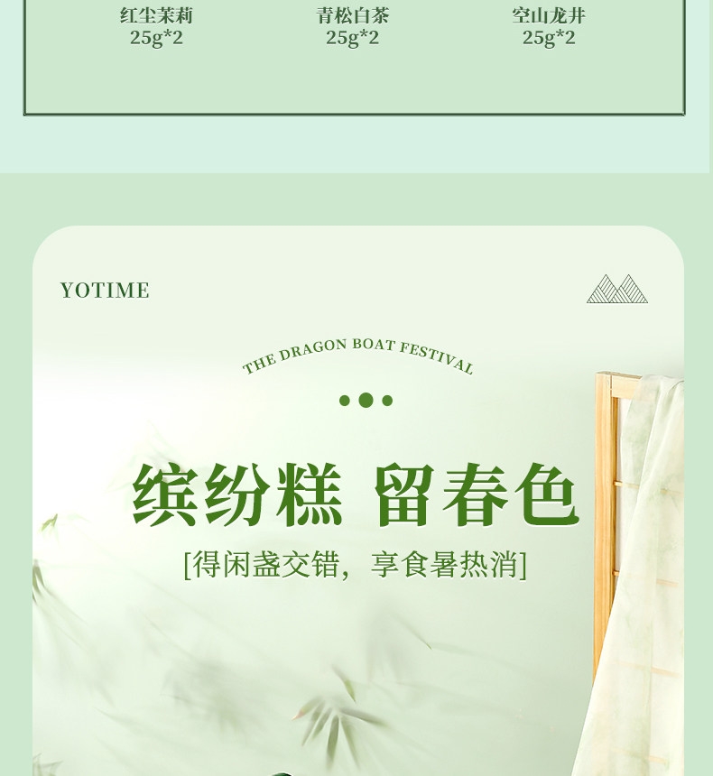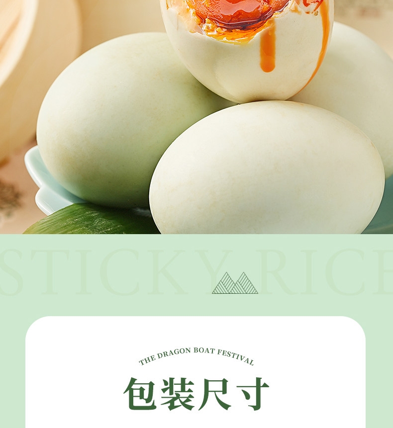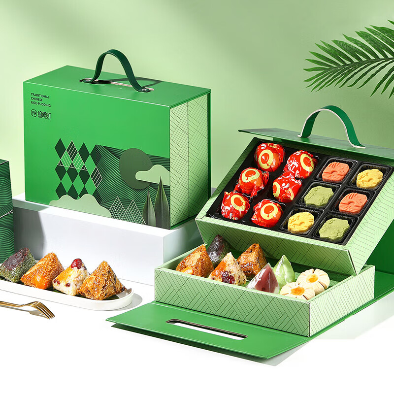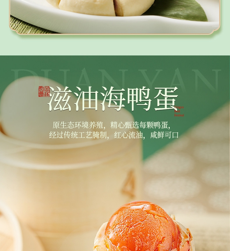 配置:蛋黄鲜肉粽子100g*1 梅干菜鲜肉粽子100g*1 艾草豆沙粽子100g*1 燕麦八宝粽子100g*1 朗姆青柠粽型糕点55g*1 元气草莓粽型糕点55g*1 唐风宋点-空山龙井味糕点25g*2 唐风宋点-红尘茉莉味糕点25g*2 唐风宋点-青松白茶味糕点25g*2 奶香芋泥花型酥糕点36g*2 海鸭蛋(熟制)70g*6