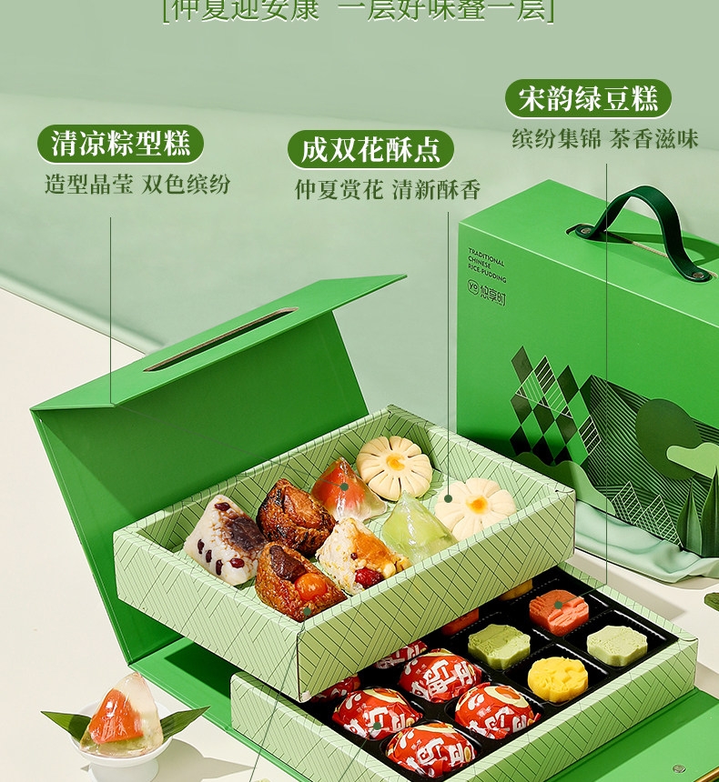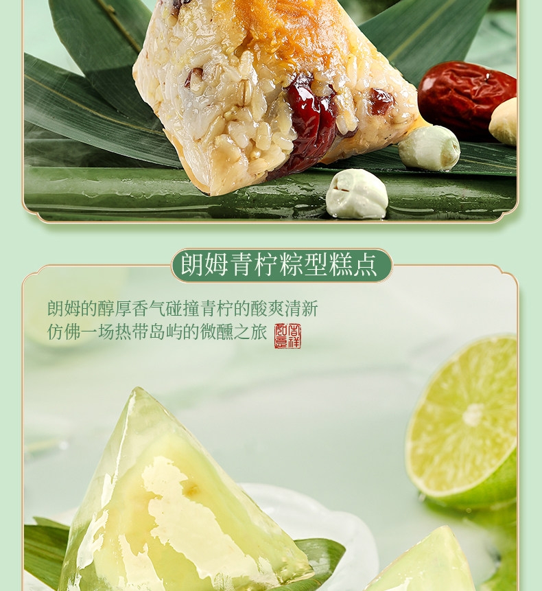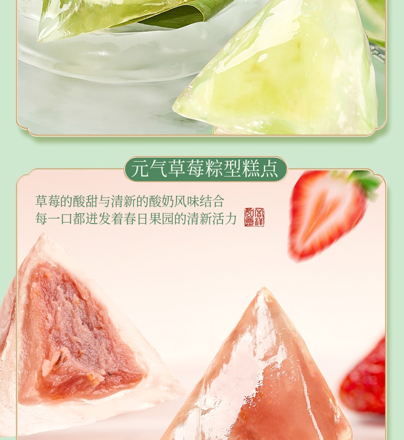 双色粽型糕,晶莹缤纷味;咸甜皆宜糯米粽 ;Q弹软糯水晶糕
