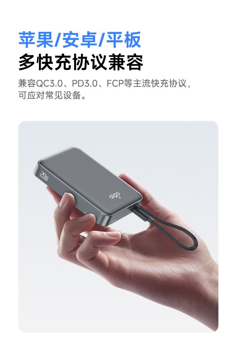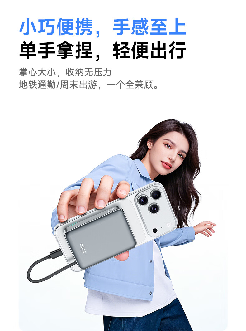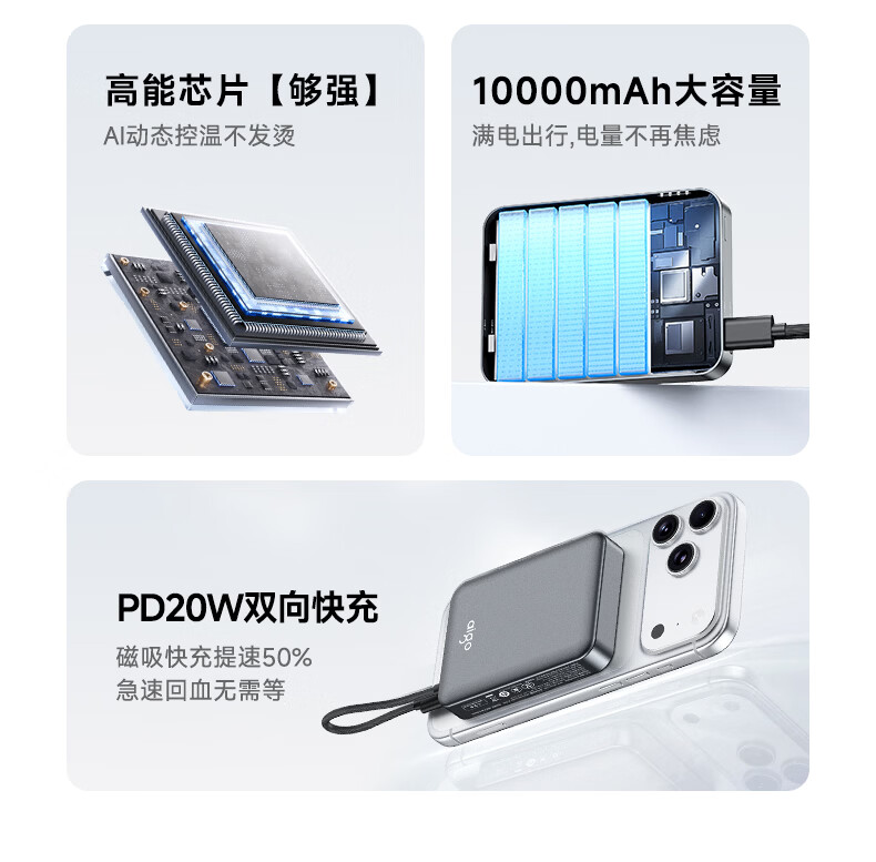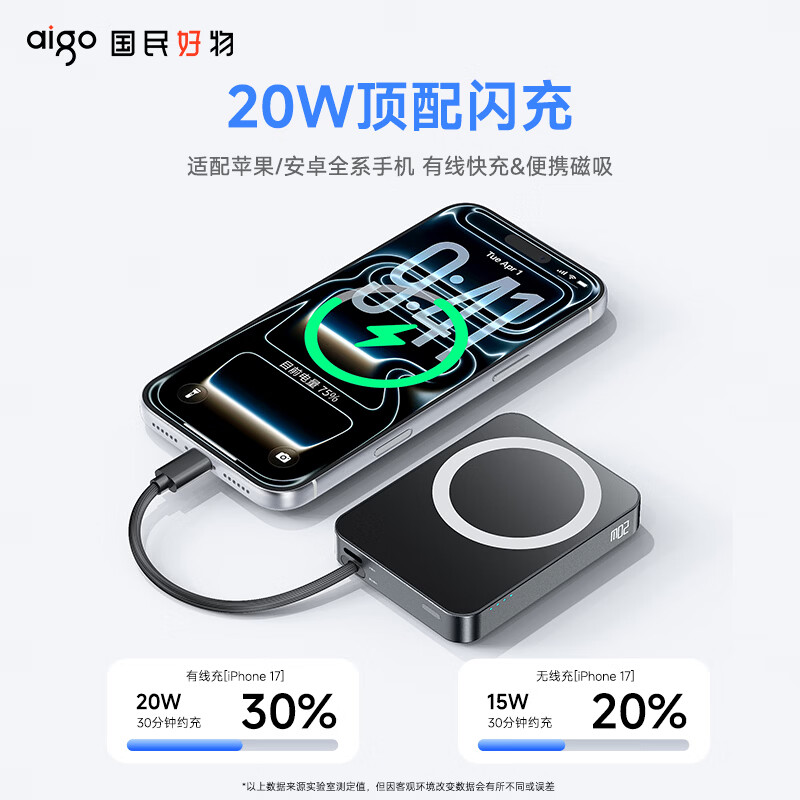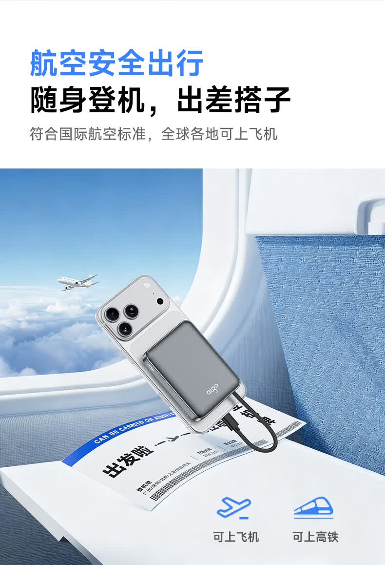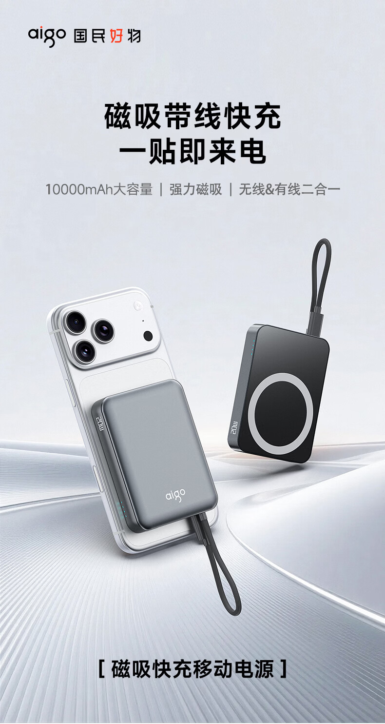 3C认证可上飞机;磁吸自带线;20W快充超薄便携