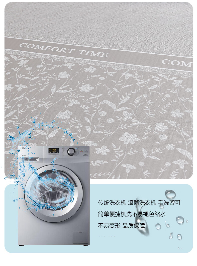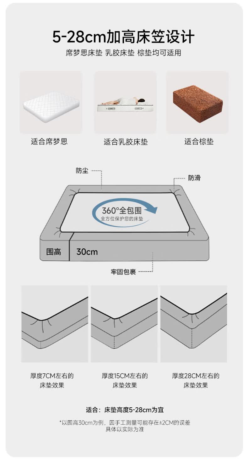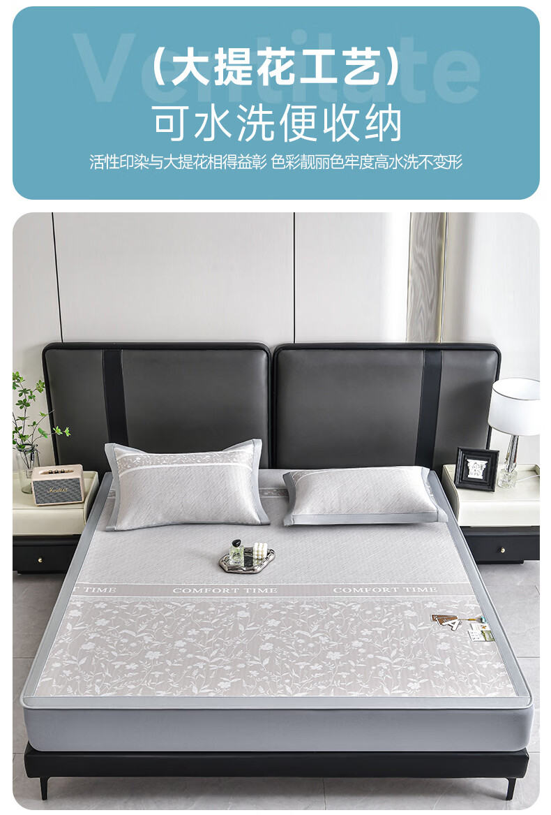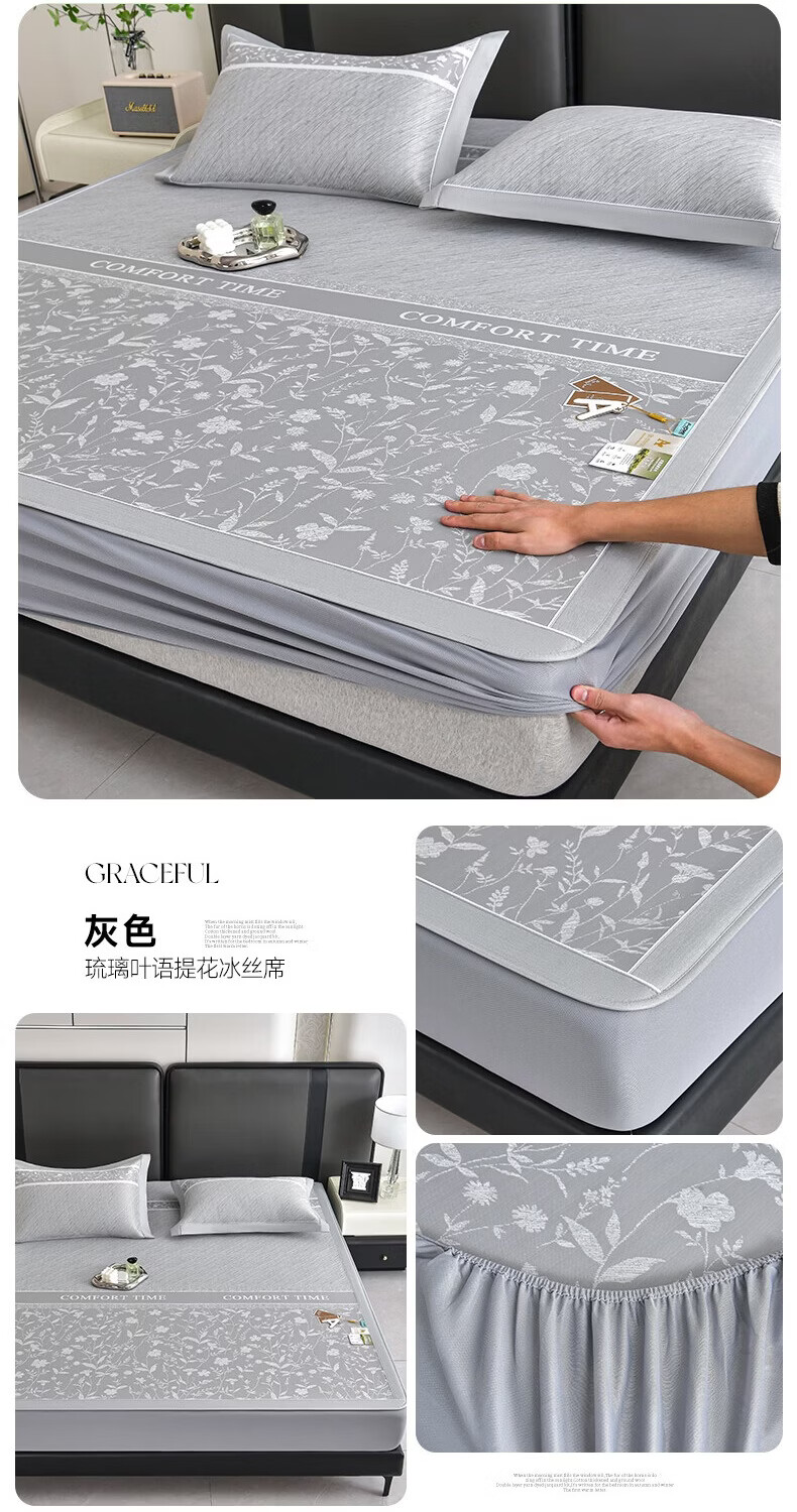 表层采用PE 凉感纤维,凉感系数拉满,肌肤接触瞬;底层升级蜂窝透气网布,360° 循环透气,快速排湿;底层防滑设计,铺床不打滑、不位移