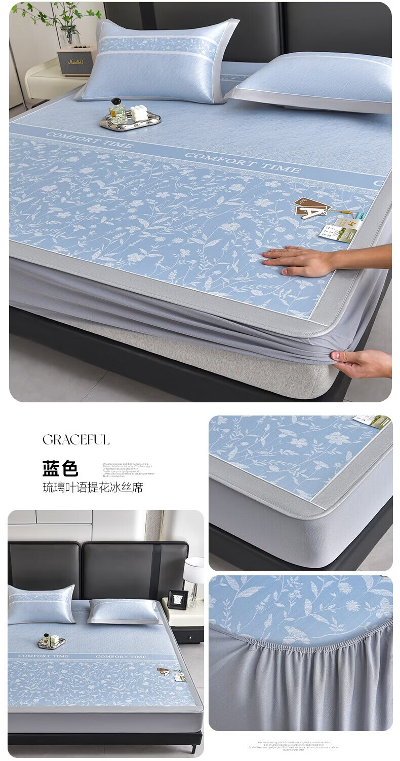 蕊丝坊 PE琉璃叶语凉感冰丝席系列床席