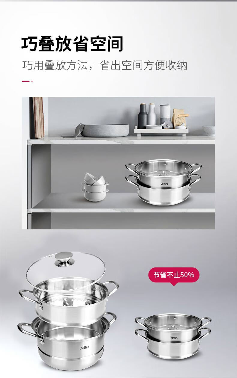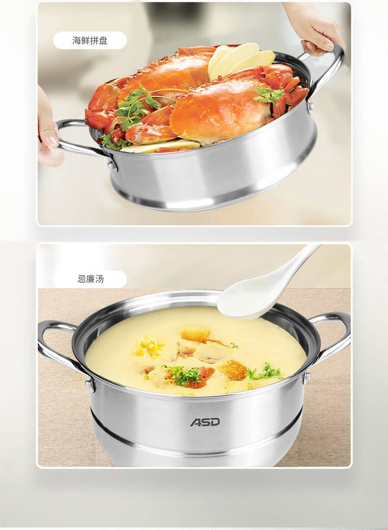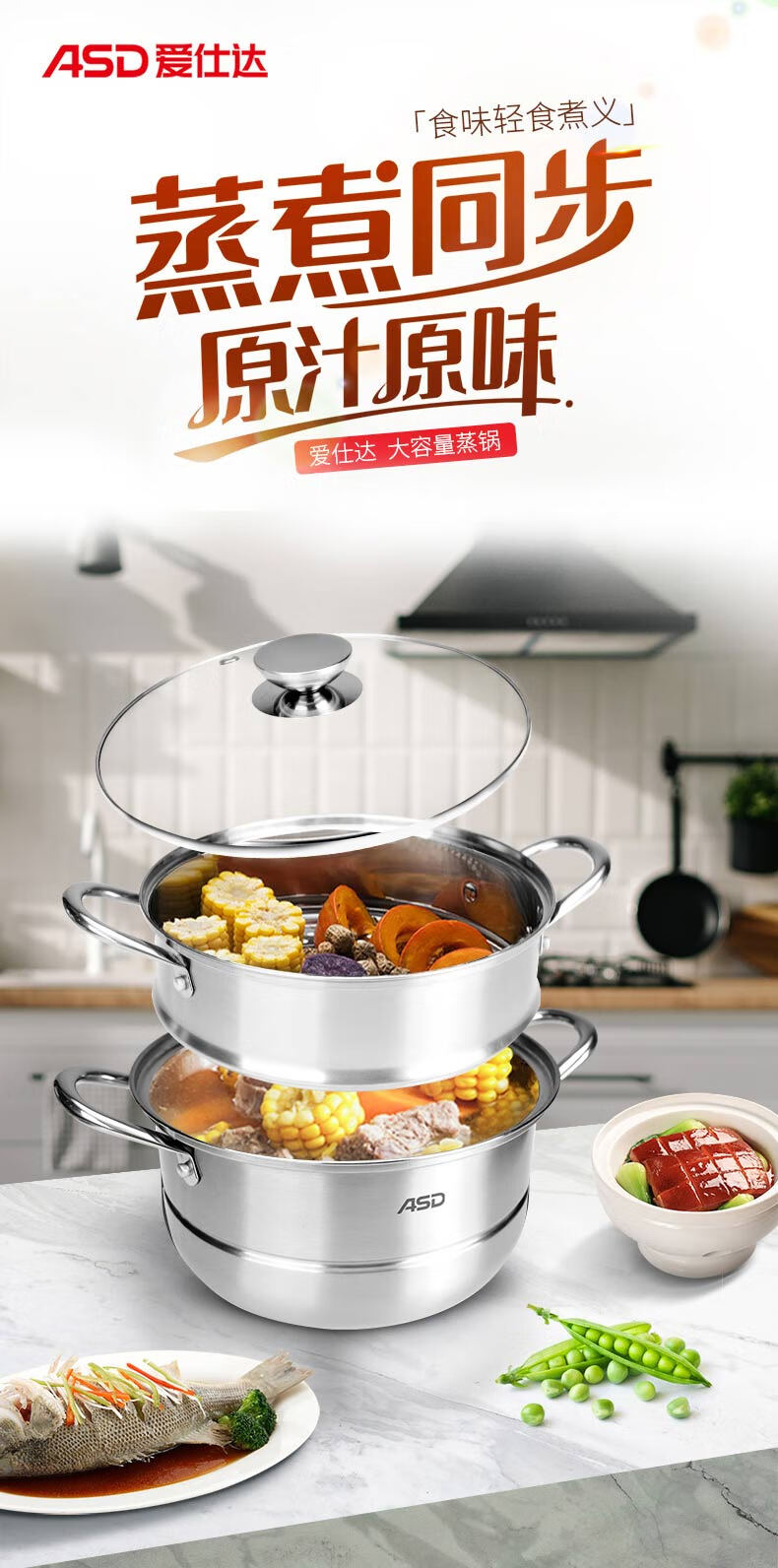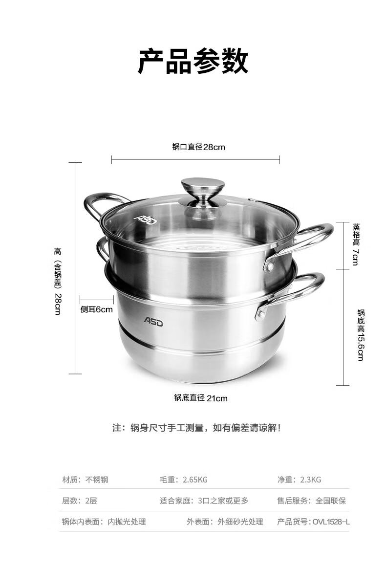 爱仕达 28cm不锈钢双层蒸锅QVL1528-L