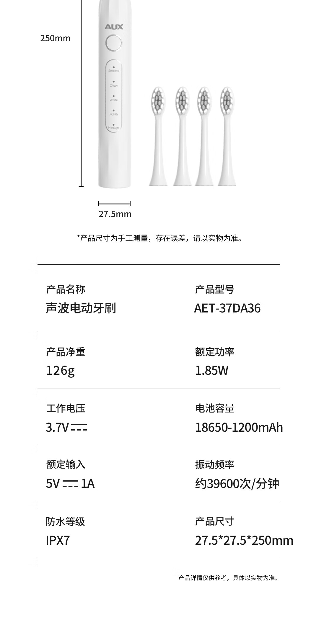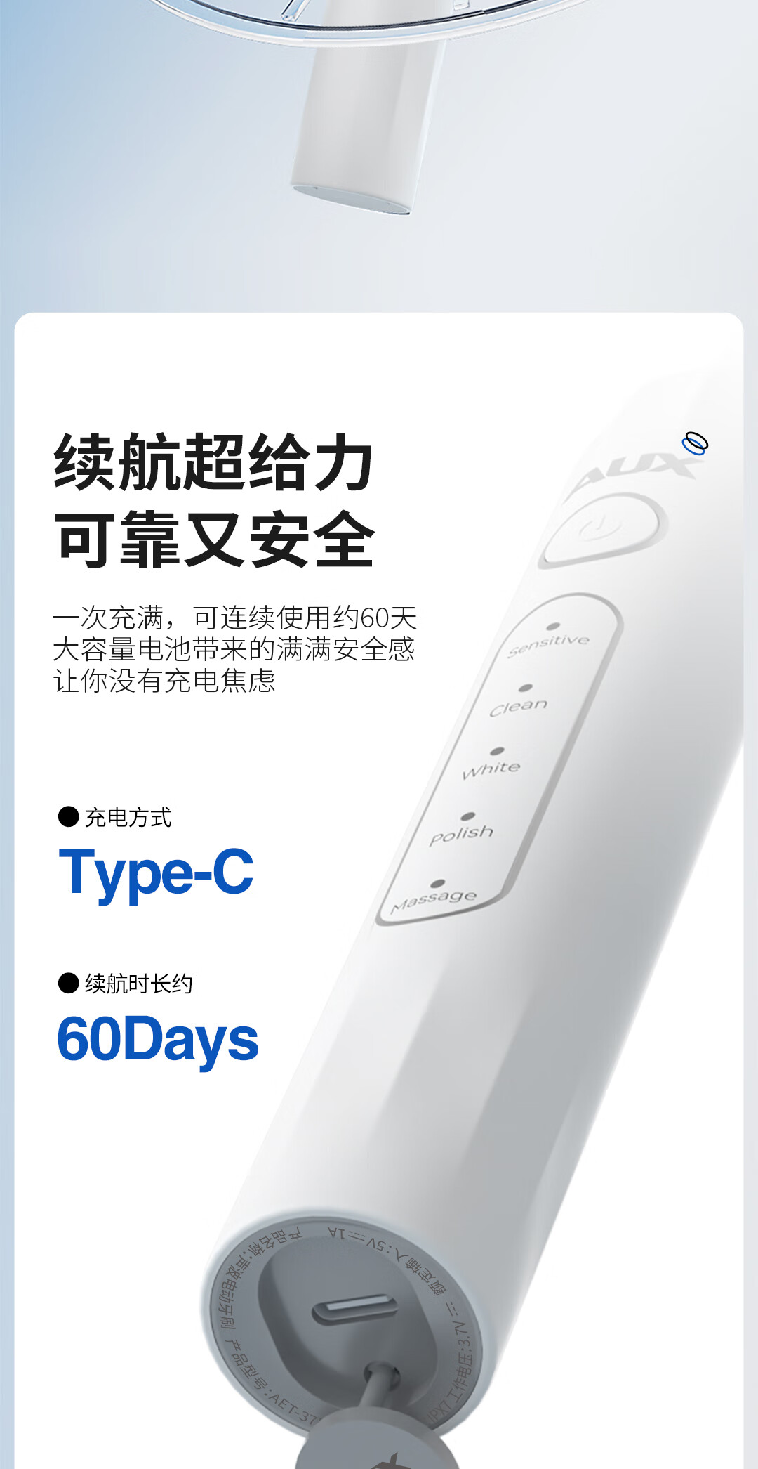 奥克斯 声波电动牙刷AET-37DA36