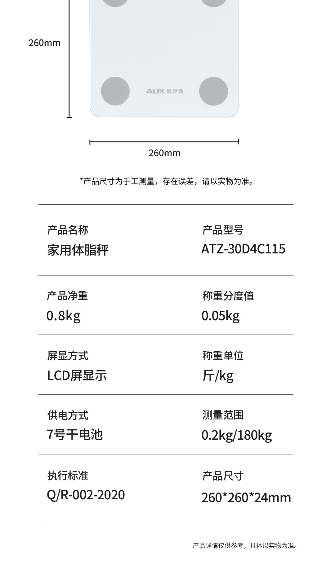 奥克斯 智能体脂秤家用健康秤ATZ-30D4C115
