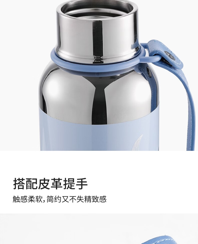 杯身流线设计搭配皮革提手,触感柔软;不锈钢真空工艺,锁温更持久;316不锈钢材质内胆,体验升级