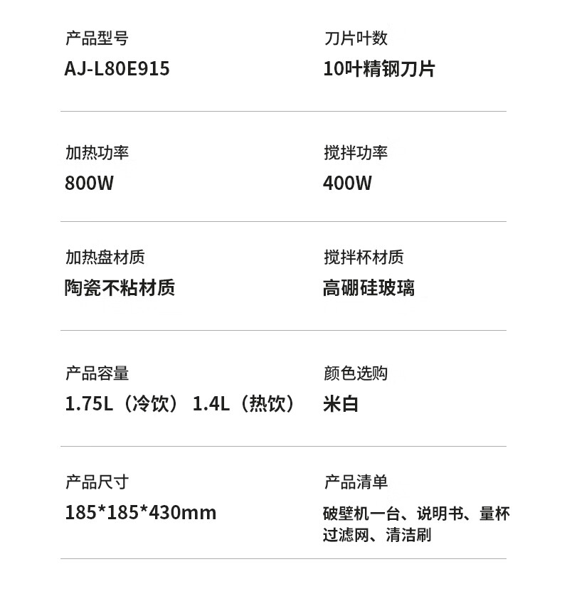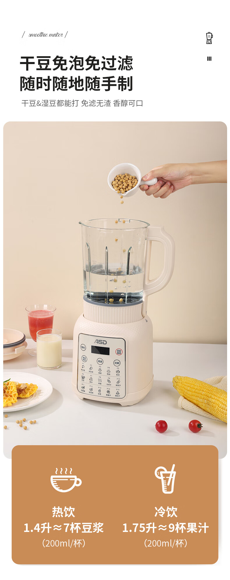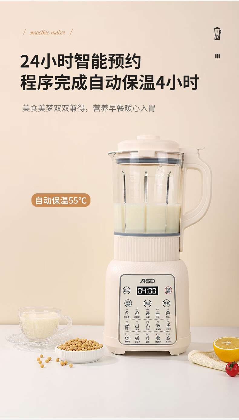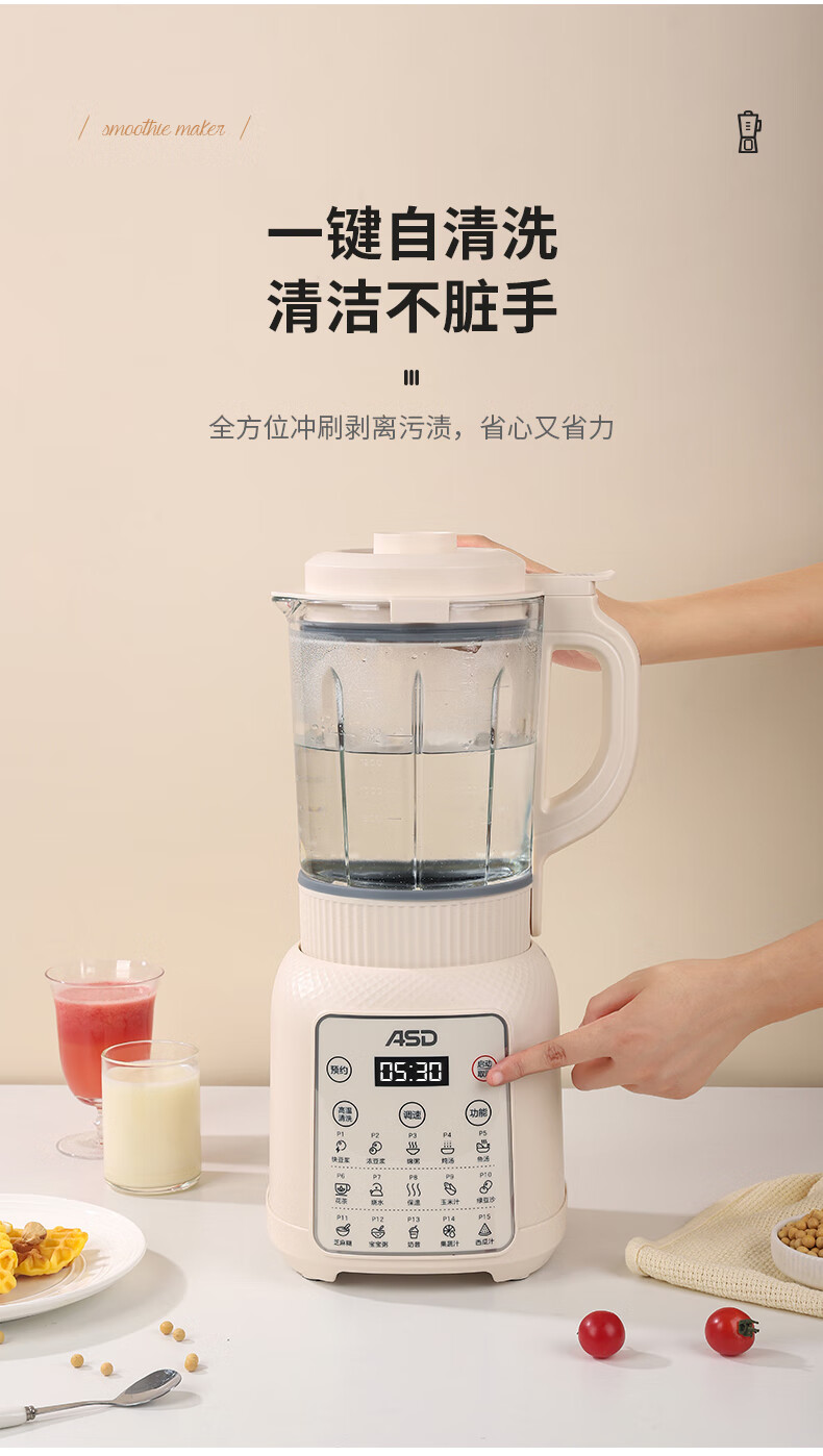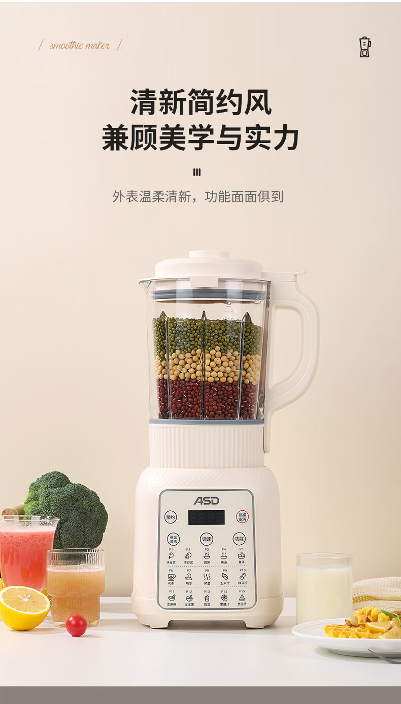触控式操作面板,简单方便一键即可;;10叶钢刀,无渣免滤;;预约定时,长效保温;;15大功能菜单,1.75L大容量,全家满足;;安全保护,放心使用;