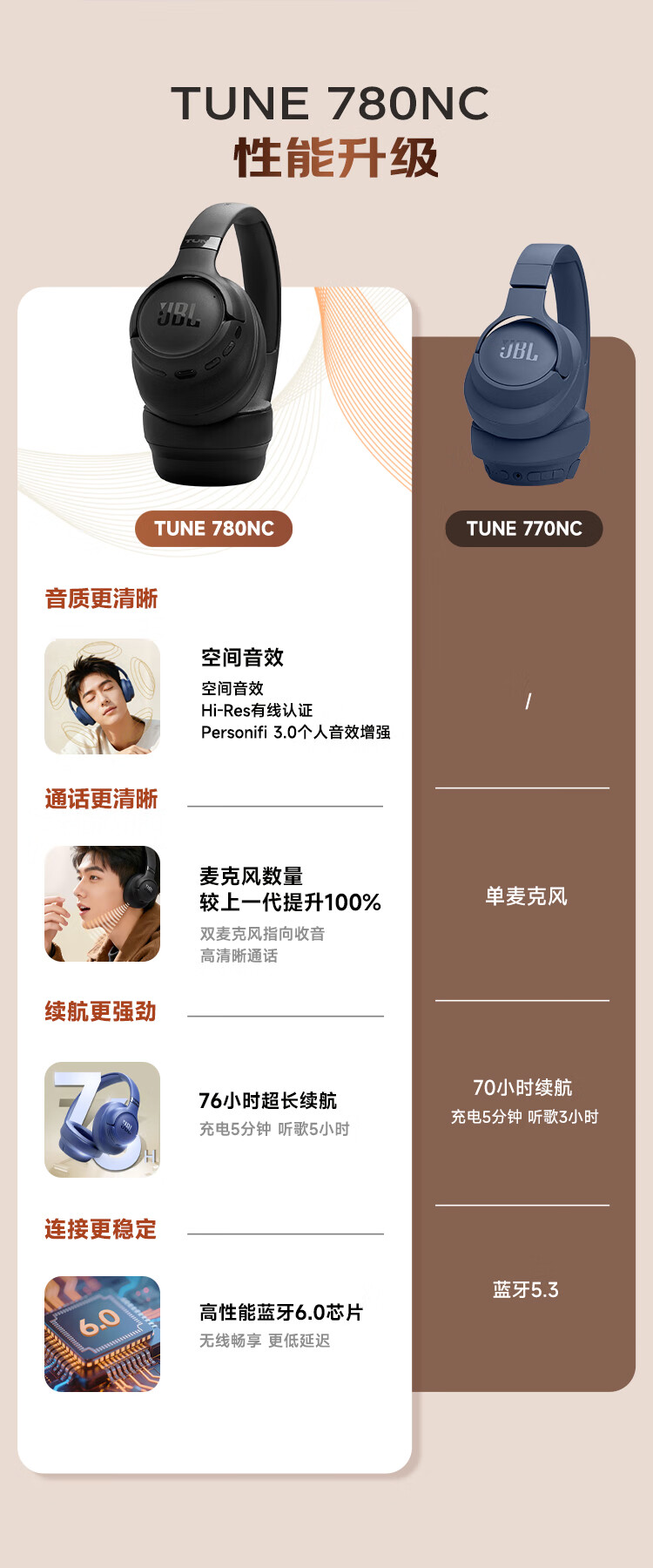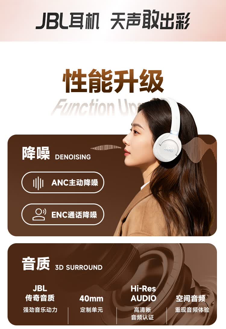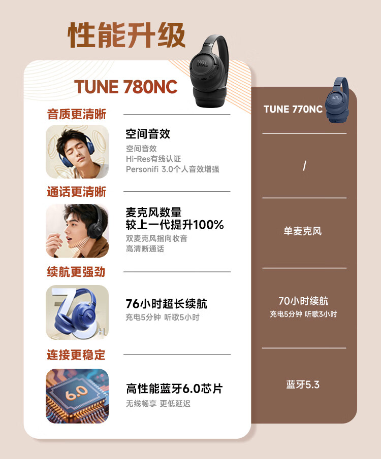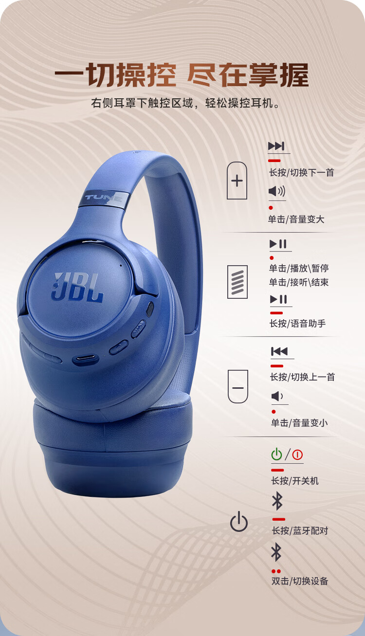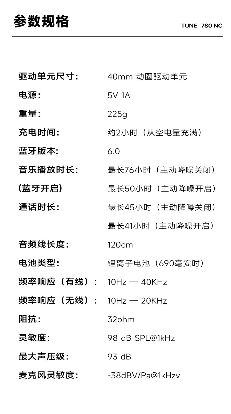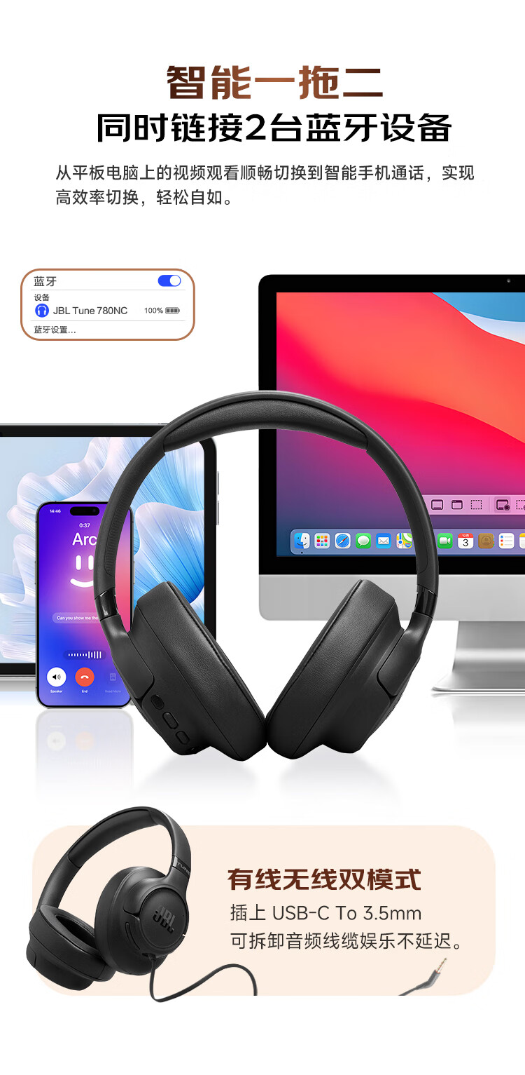 JBL 头戴式主动降噪蓝牙耳机T780NC