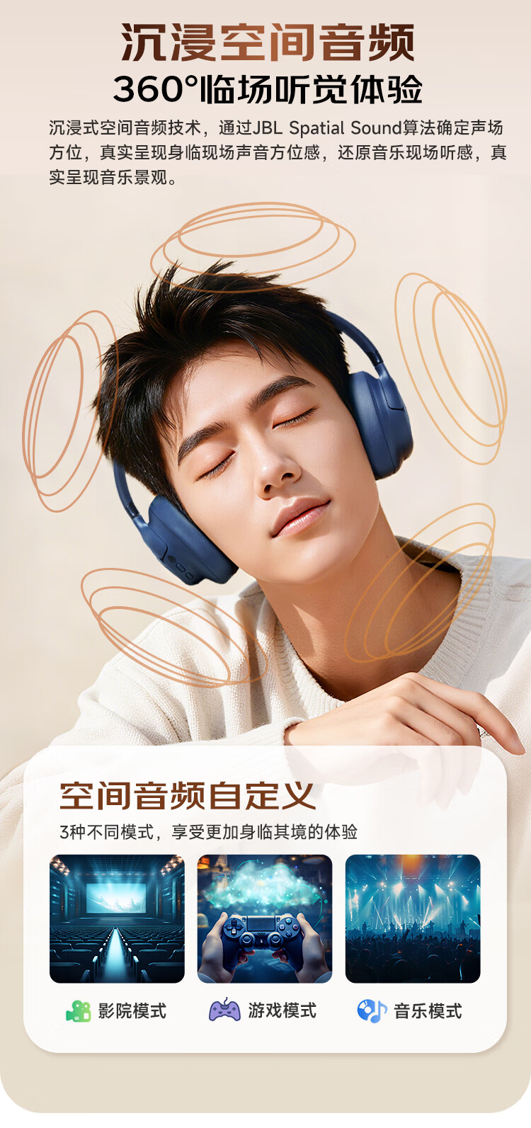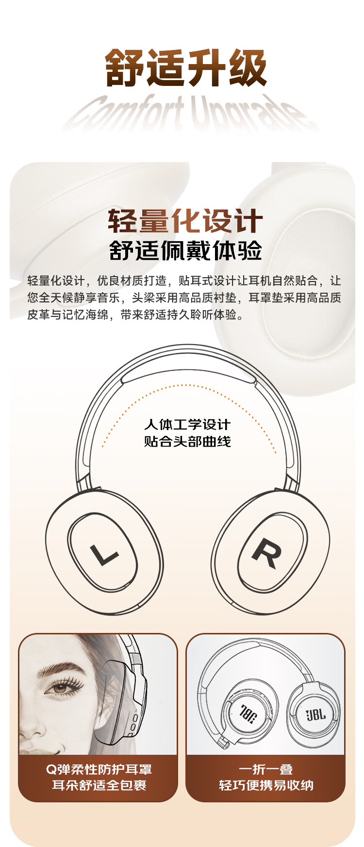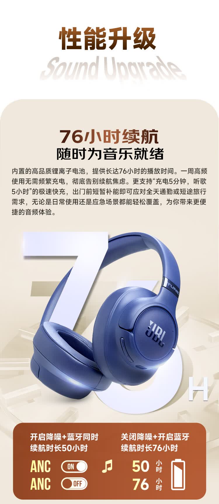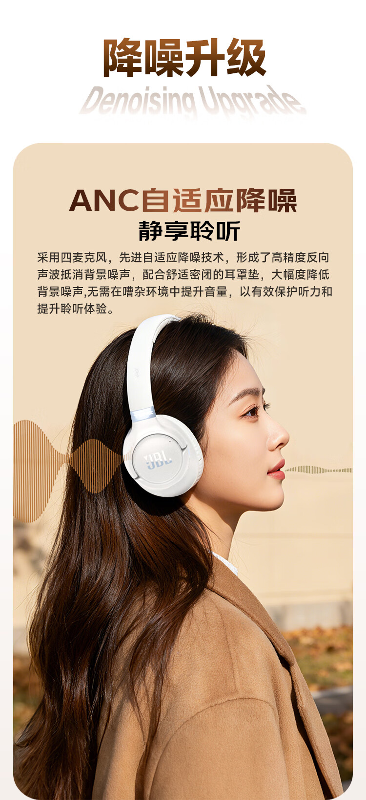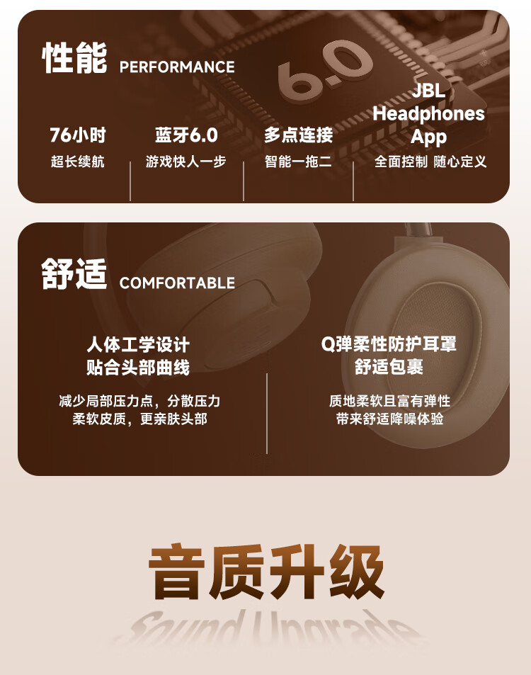 头戴式蓝牙降噪耳机 传奇音质;76小时超长续航,蓝牙6.0 多点连接;人体工学设计 贴合头部曲线 防护耳罩 舒适包裹